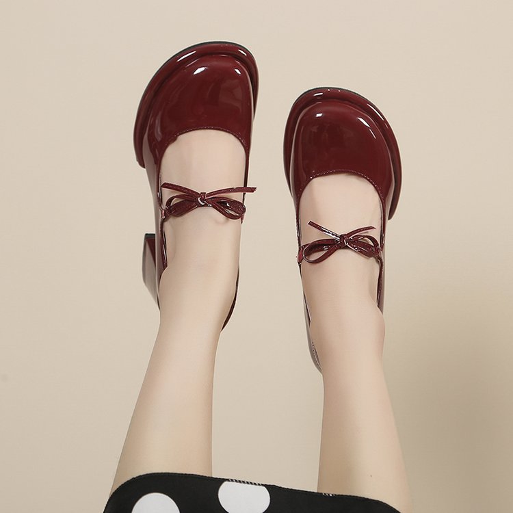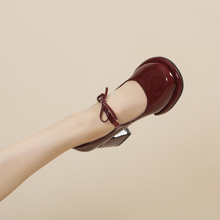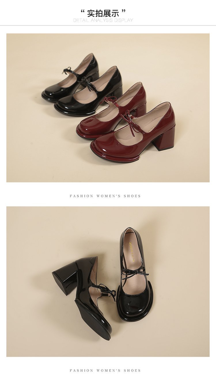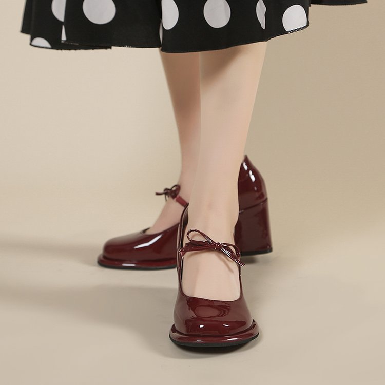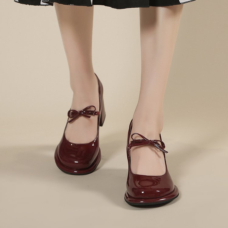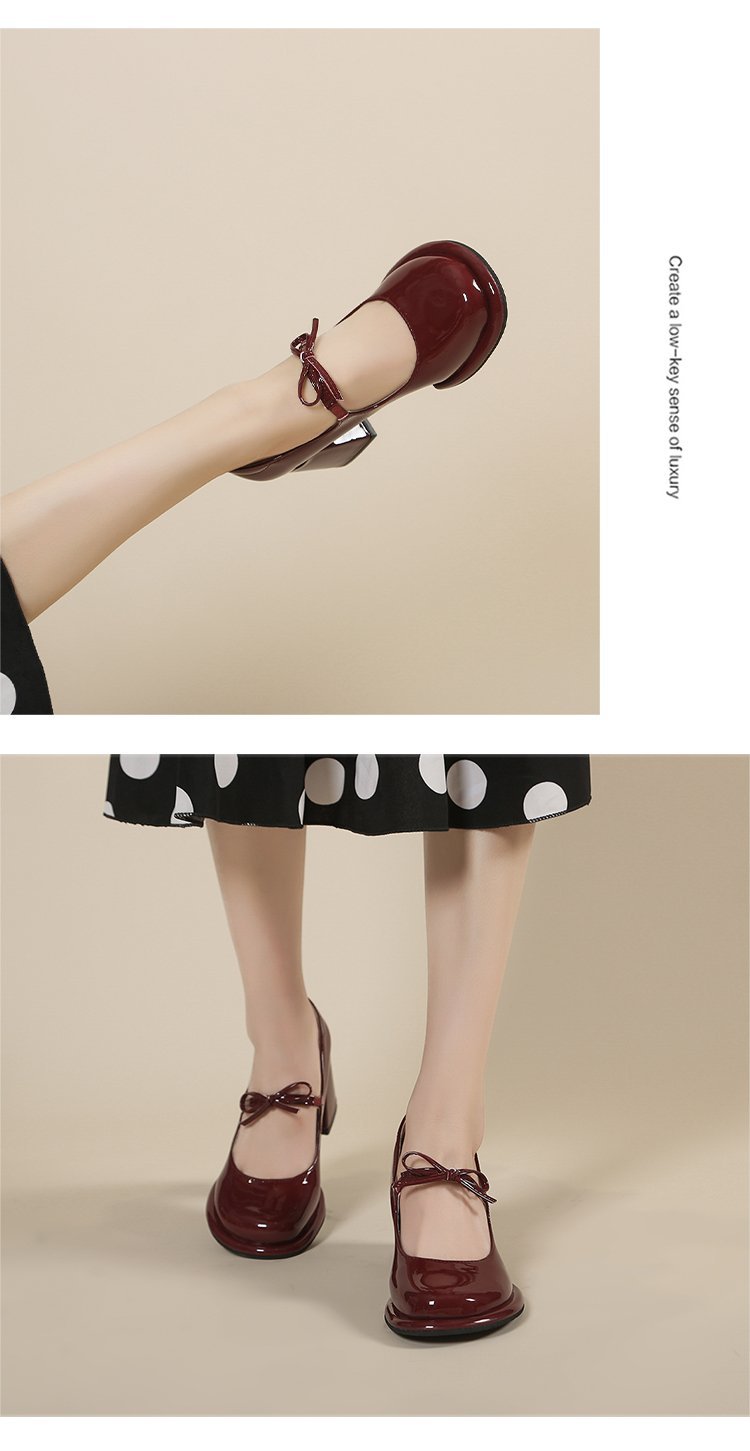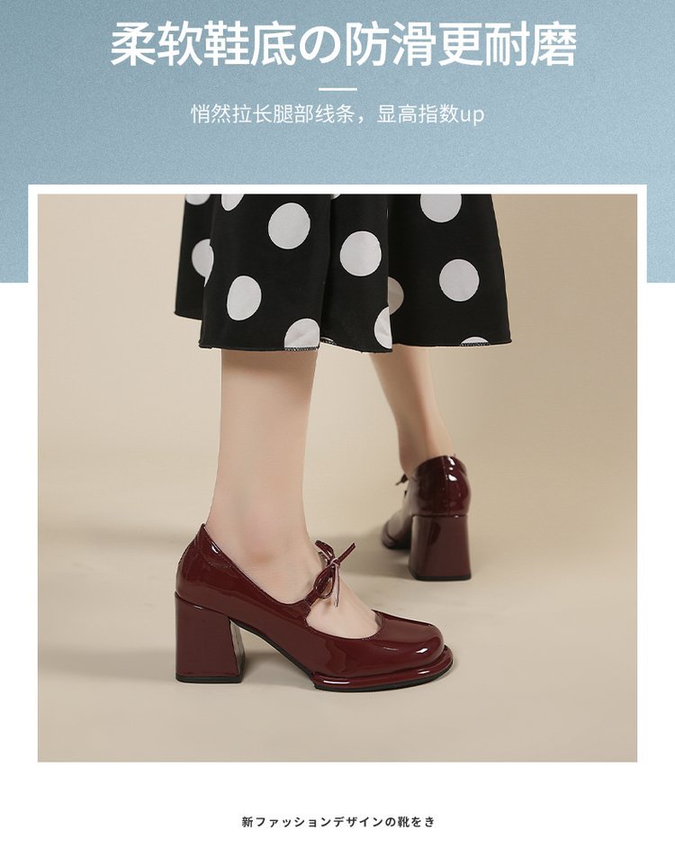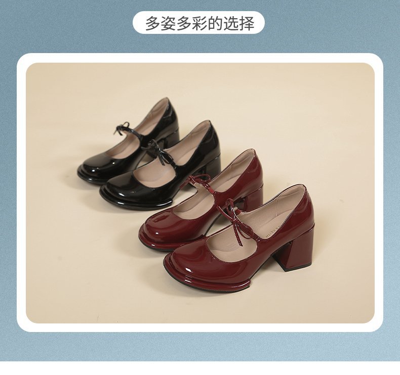 레드 레트로 하이힐 하이힐 슈즈 여성의 2024 년 새로운 가을과 겨울 프랑스 얕은 입 메리 제인 신발스토어 가기