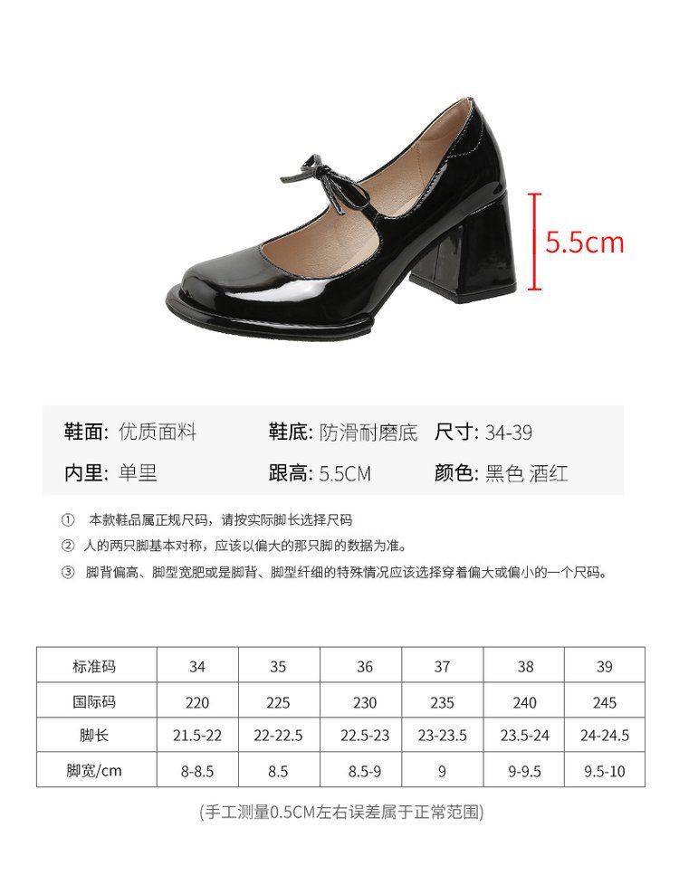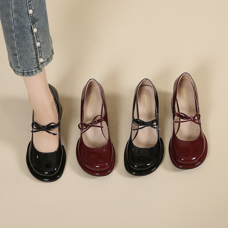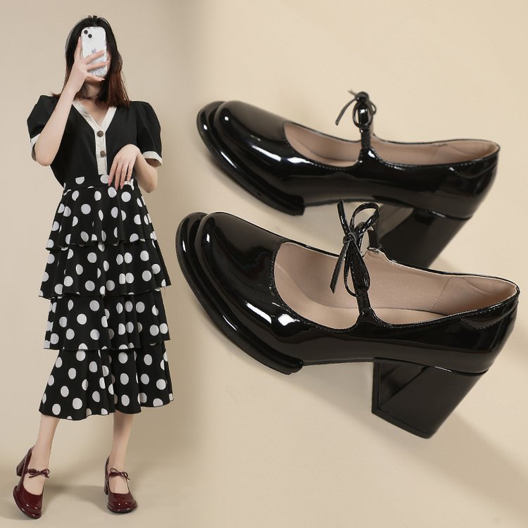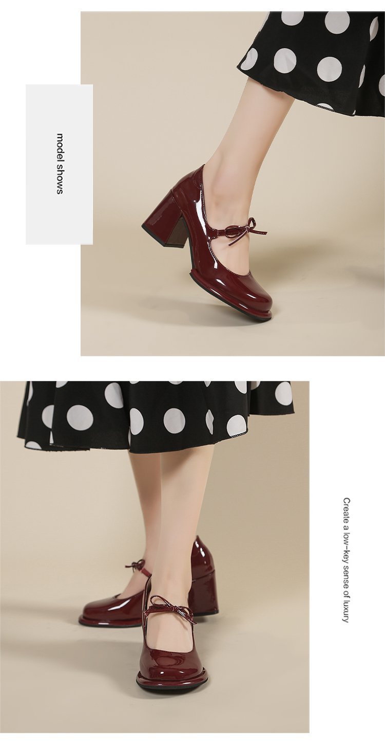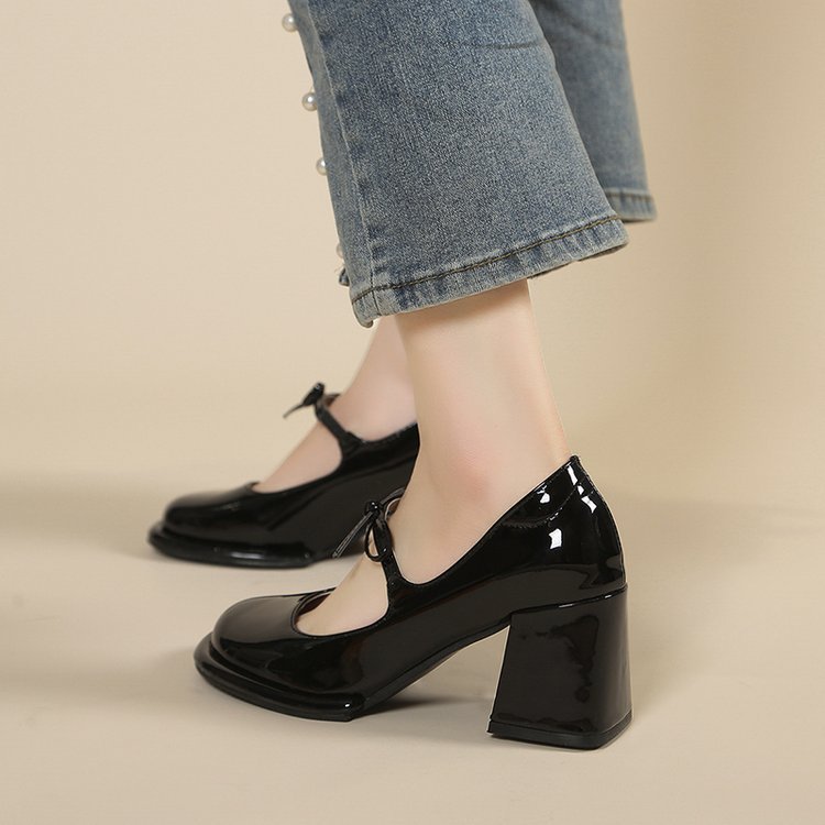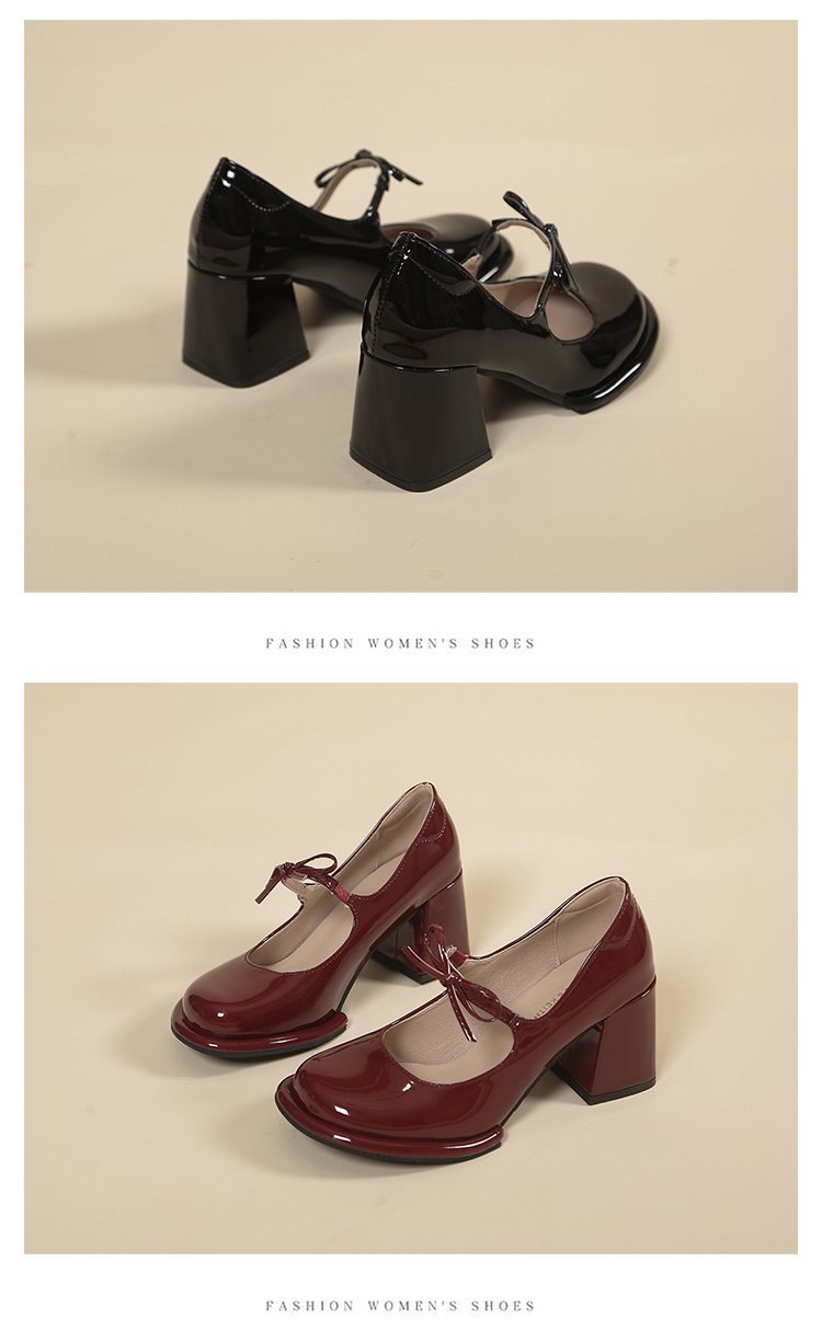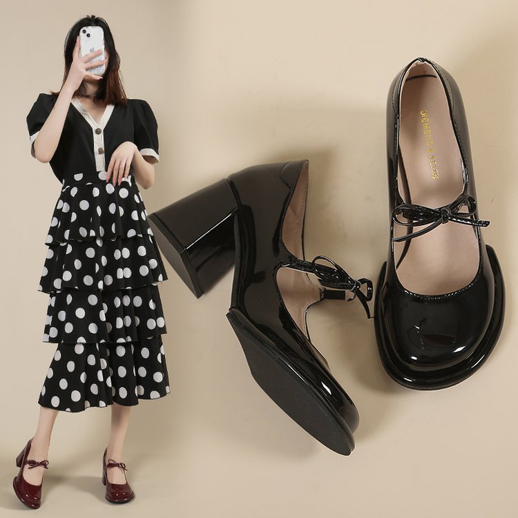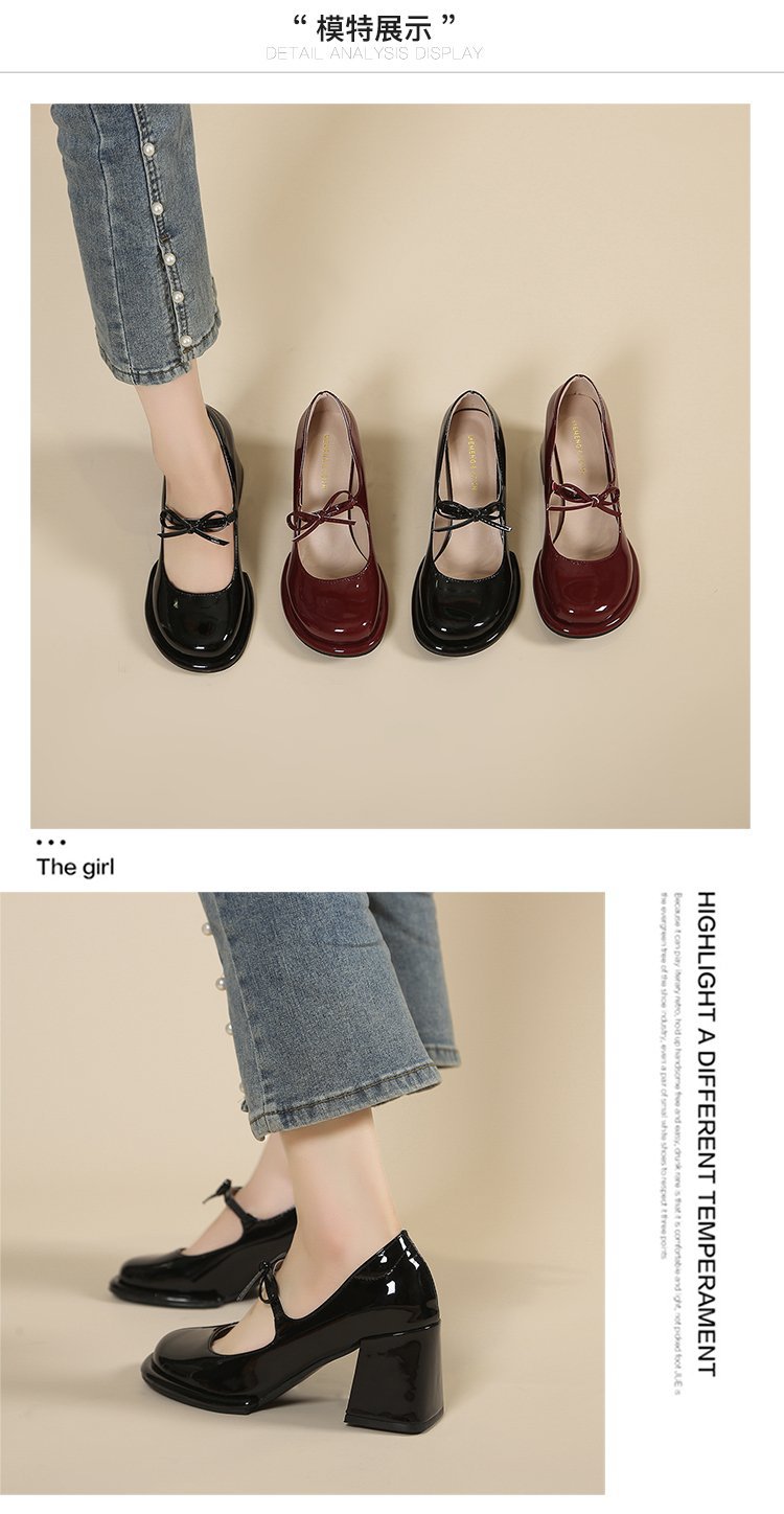 레드 레트로 하이힐 하이힐 슈즈 여성의 2024 년 새로운 가을과 겨울 프랑스 얕은 입 메리 제인 신발스토어 가기