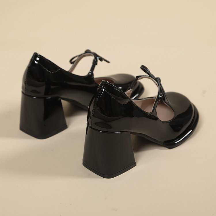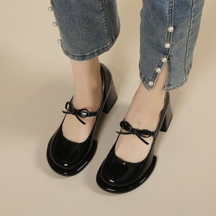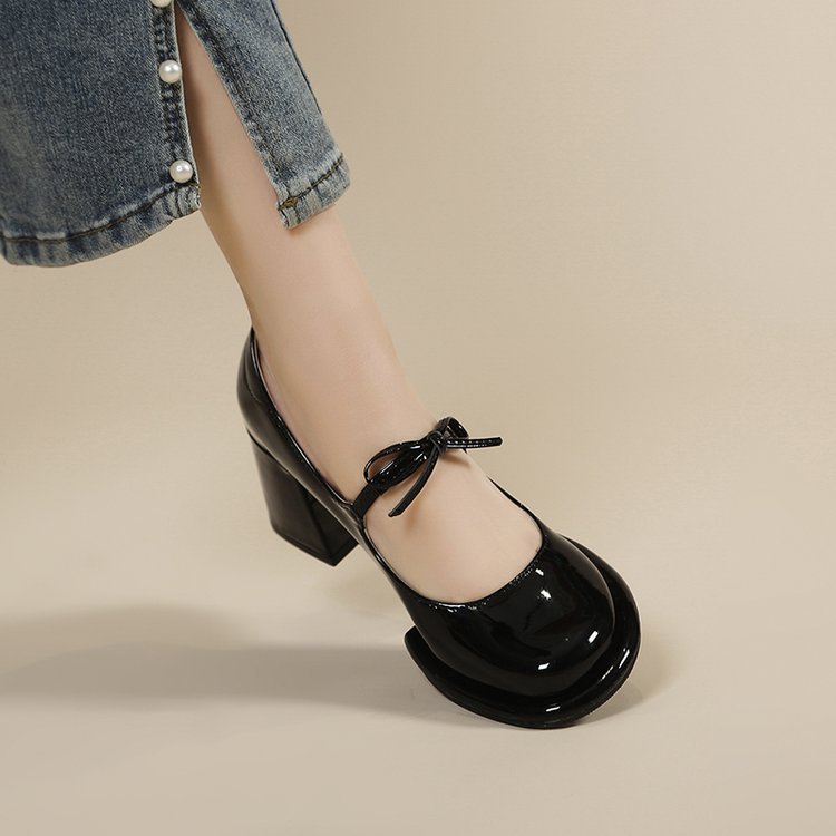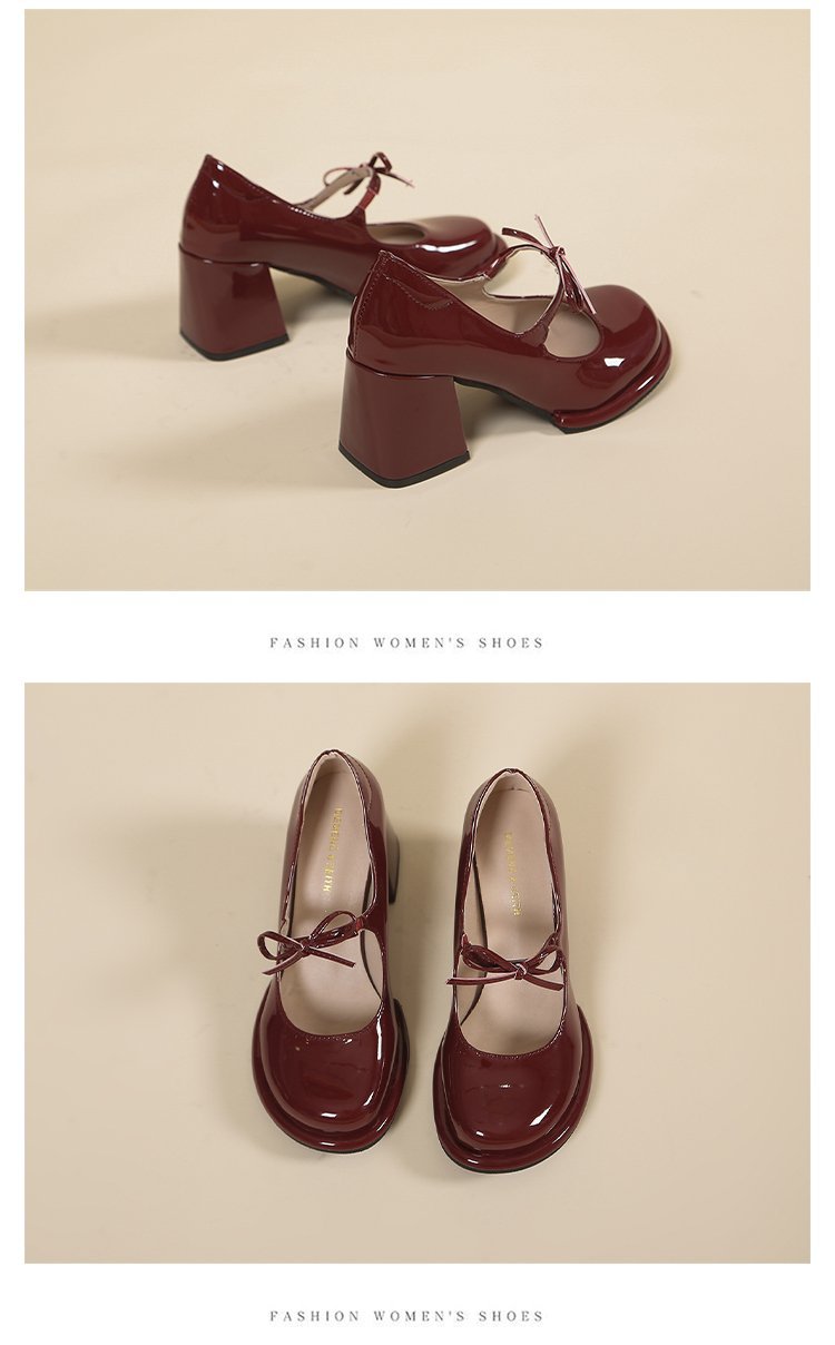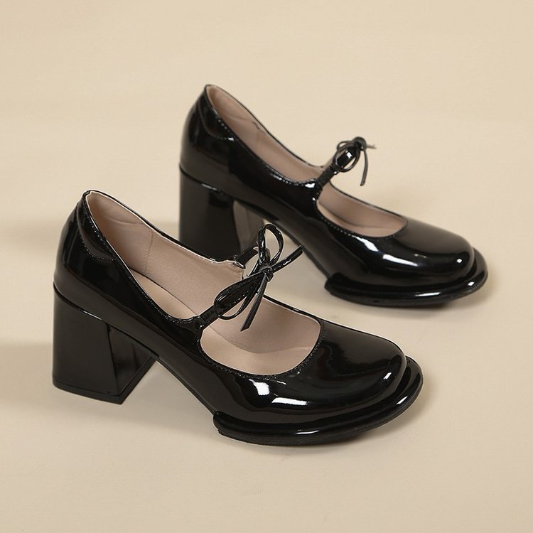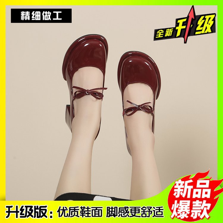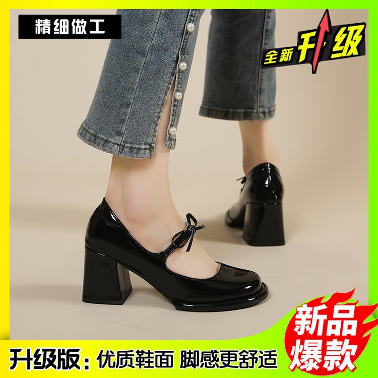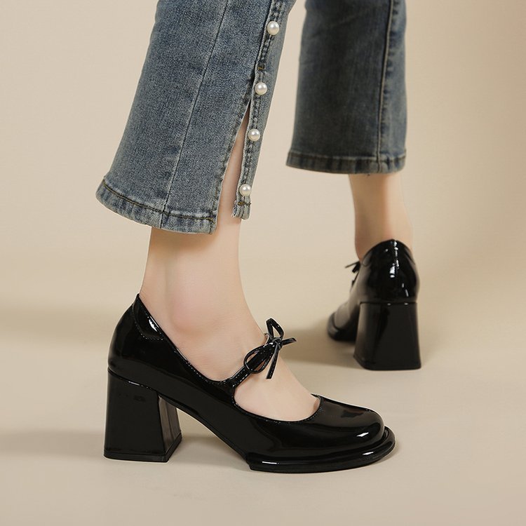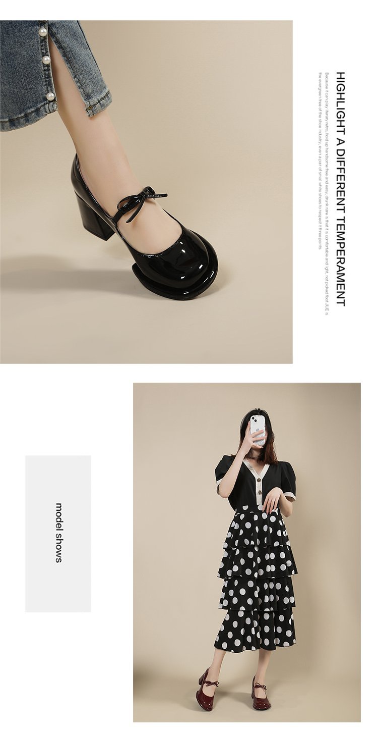 레드 레트로 하이힐 하이힐 슈즈 여성의 2024 년 새로운 가을과 겨울 프랑스 얕은 입 메리 제인 신발스토어 가기