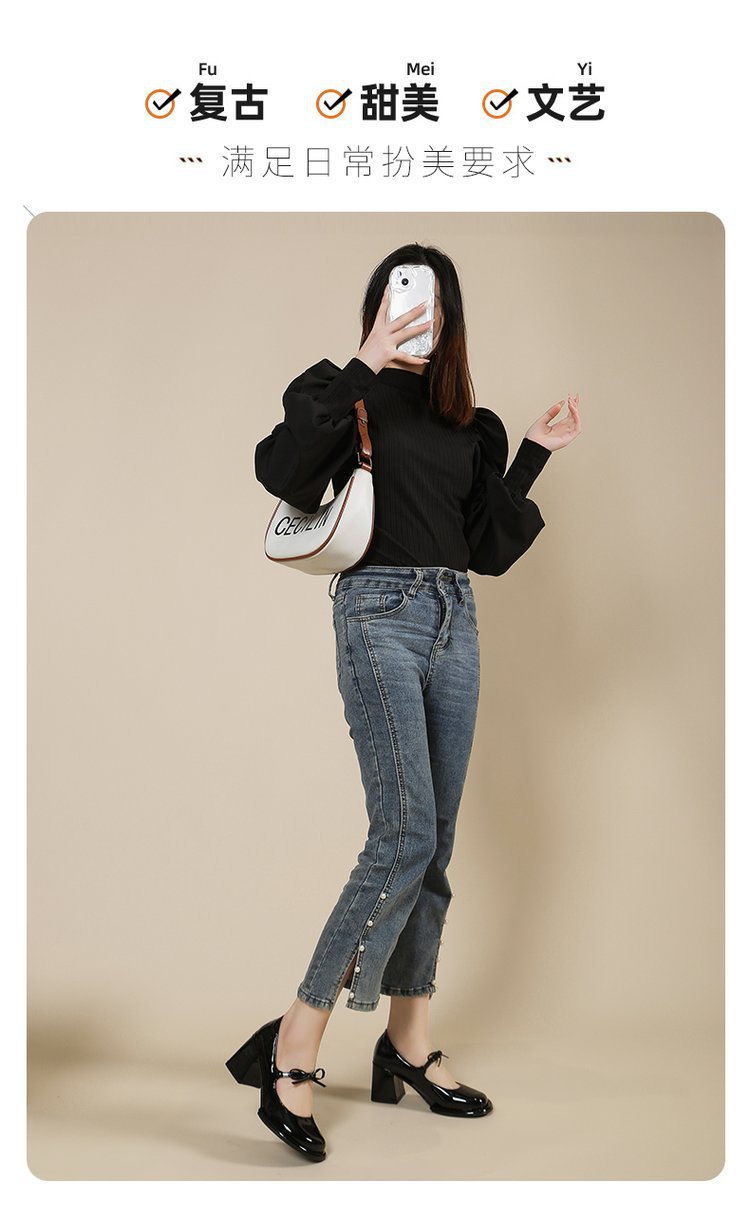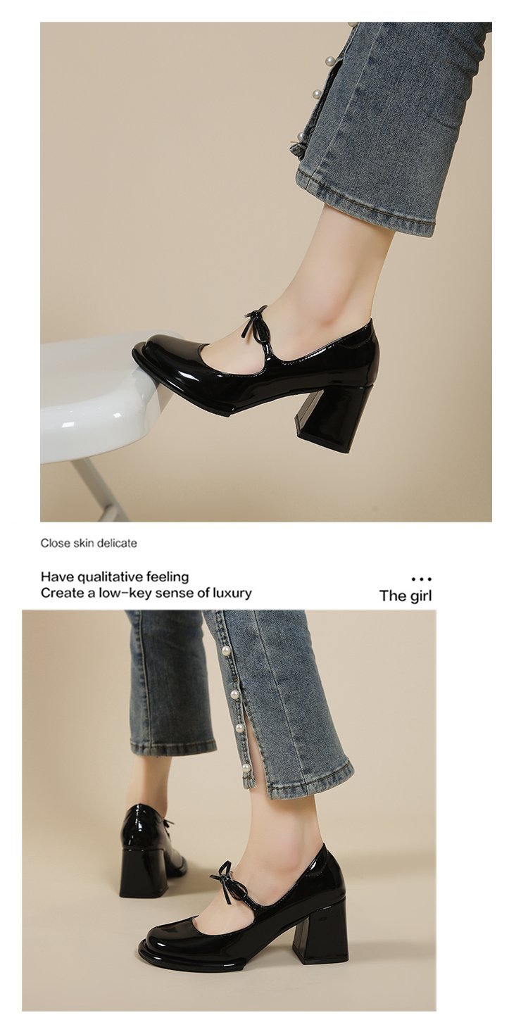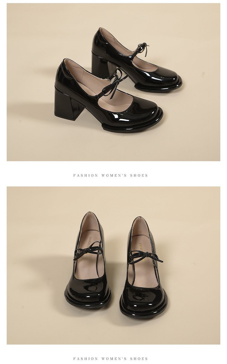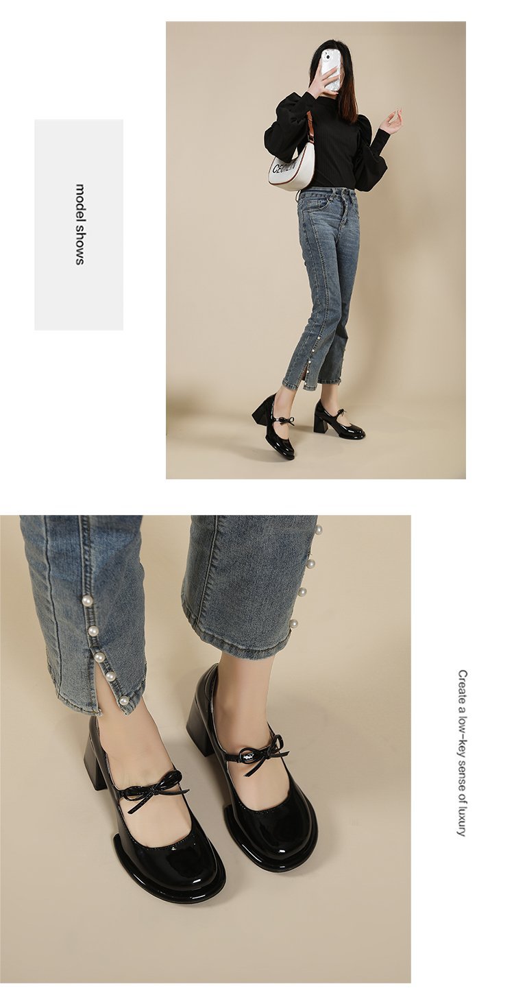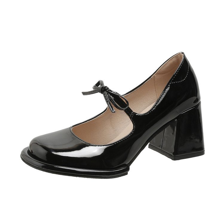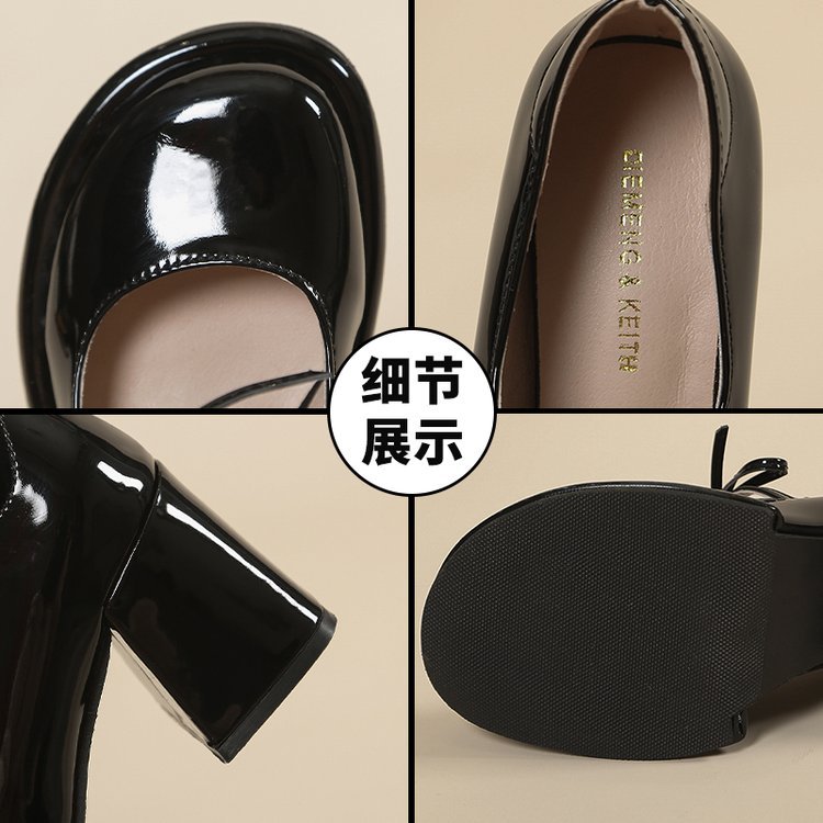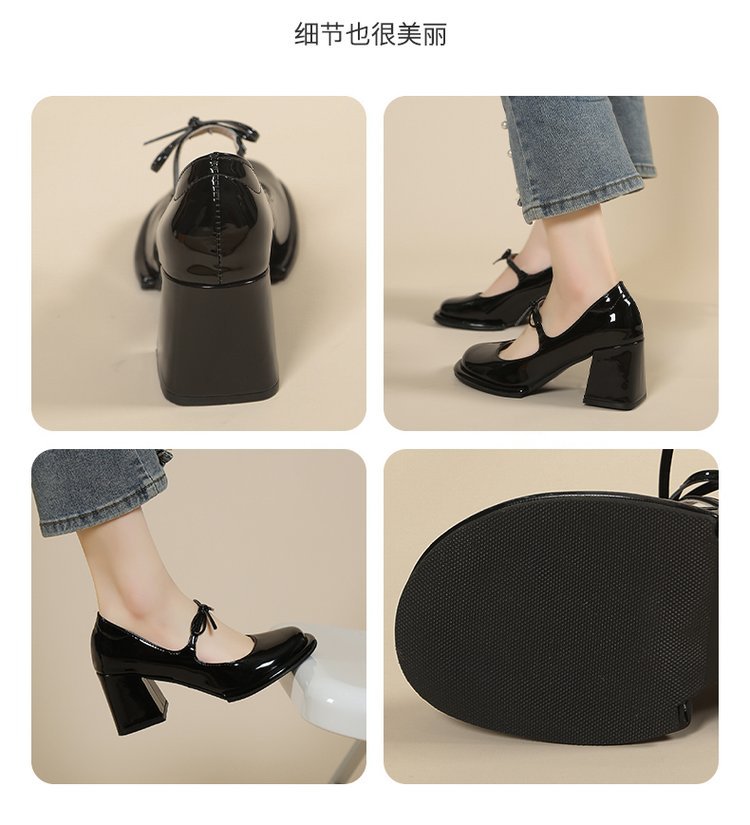 레드 레트로 하이힐 하이힐 슈즈 여성의 2024 년 새로운 가을과 겨울 프랑스 얕은 입 메리 제인 신발스토어 가기