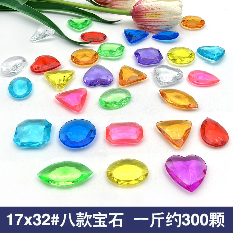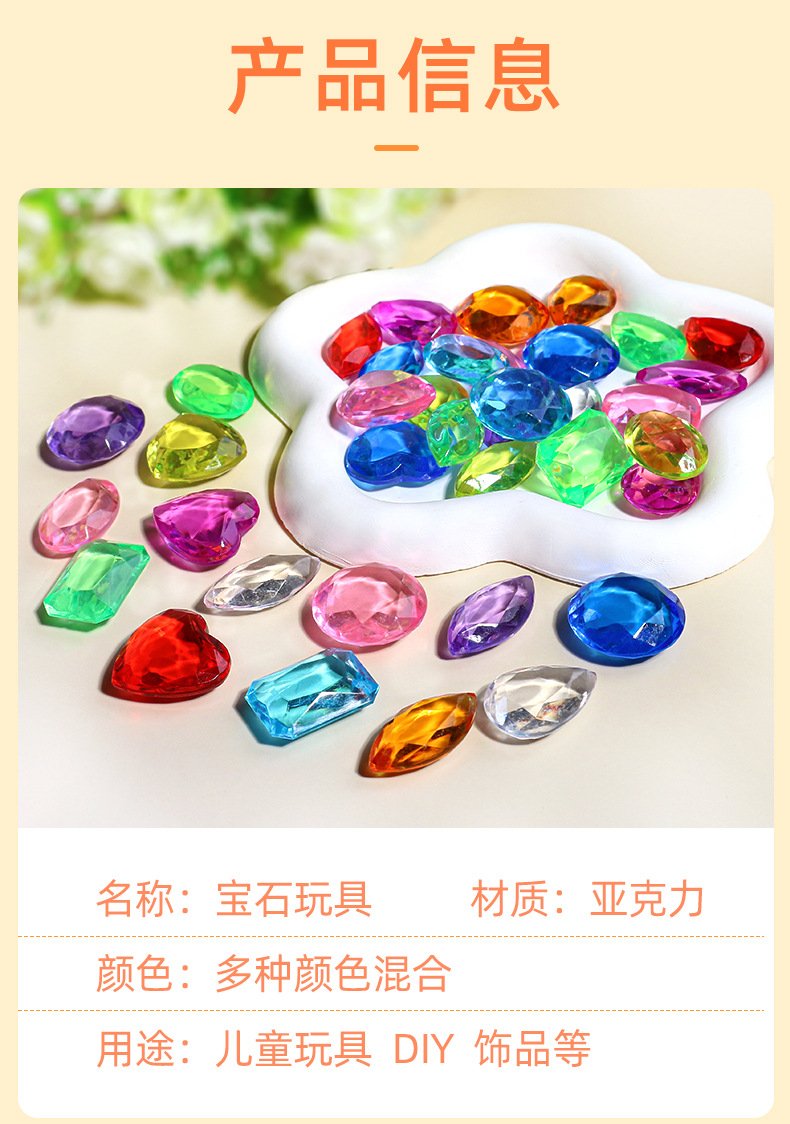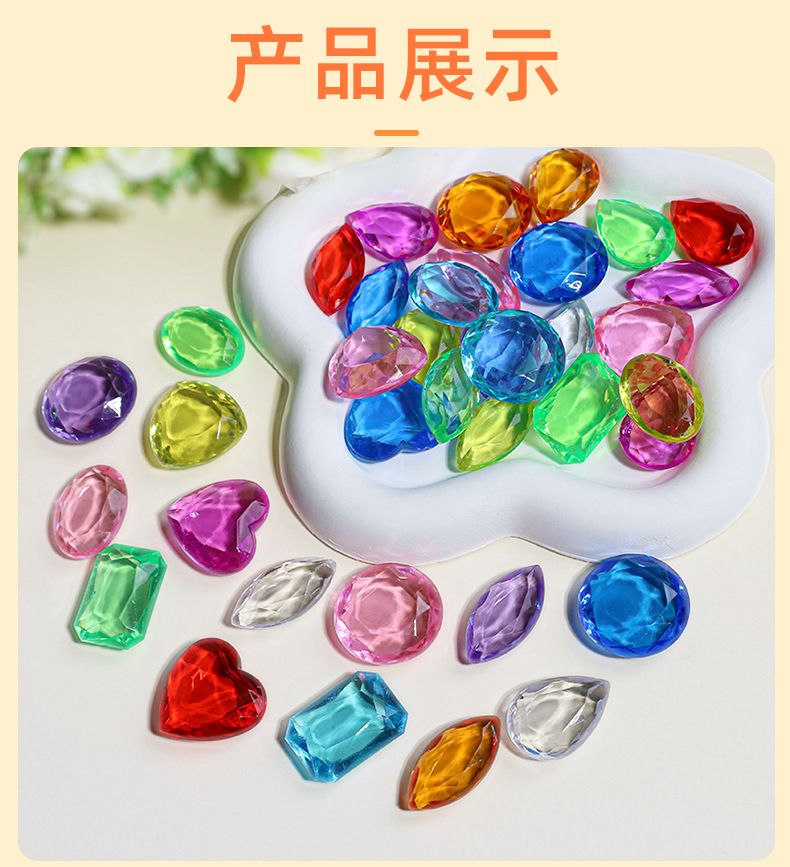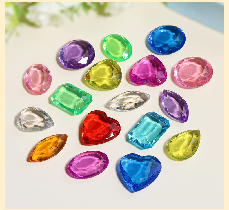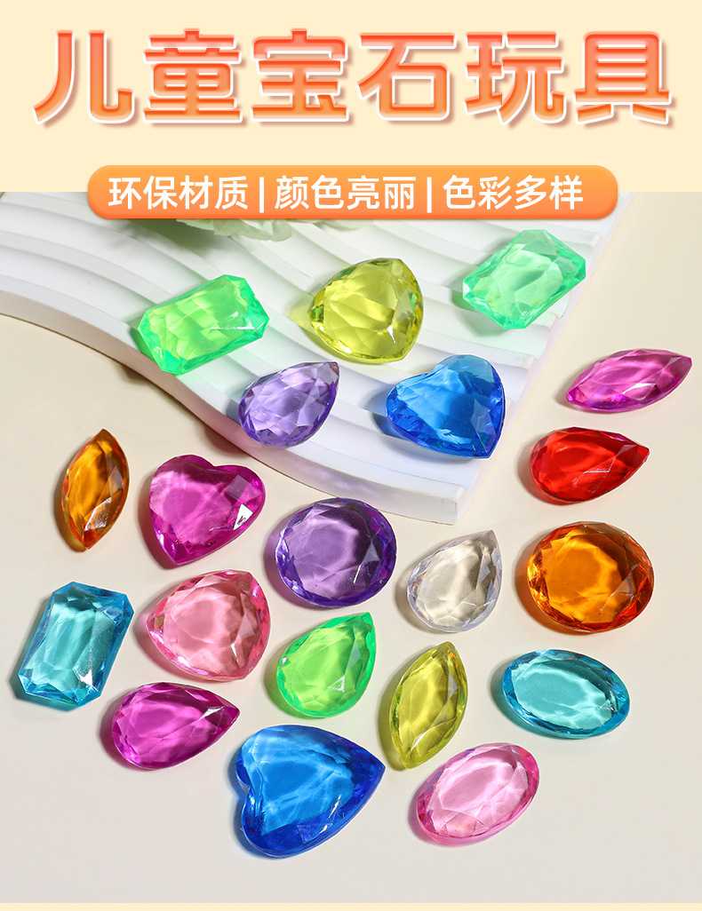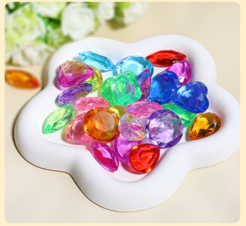아크릴 어린이 보석 장난감 플라스틱 컬러 하트 모양의 다이아몬드 6 보석 스톨 장난감 매칭 액세서리스토어 가기