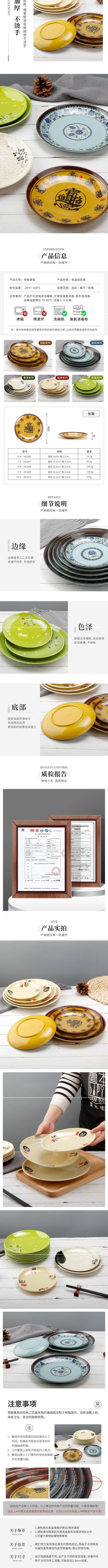 멜라민 플레이트 상업 모조 도자기 디스크 호텔 특별 튀김 국수 차가운 요리 간식 덮은 쌀 레스토랑 플라스틱 패스트 푸드 접시스토어 가기