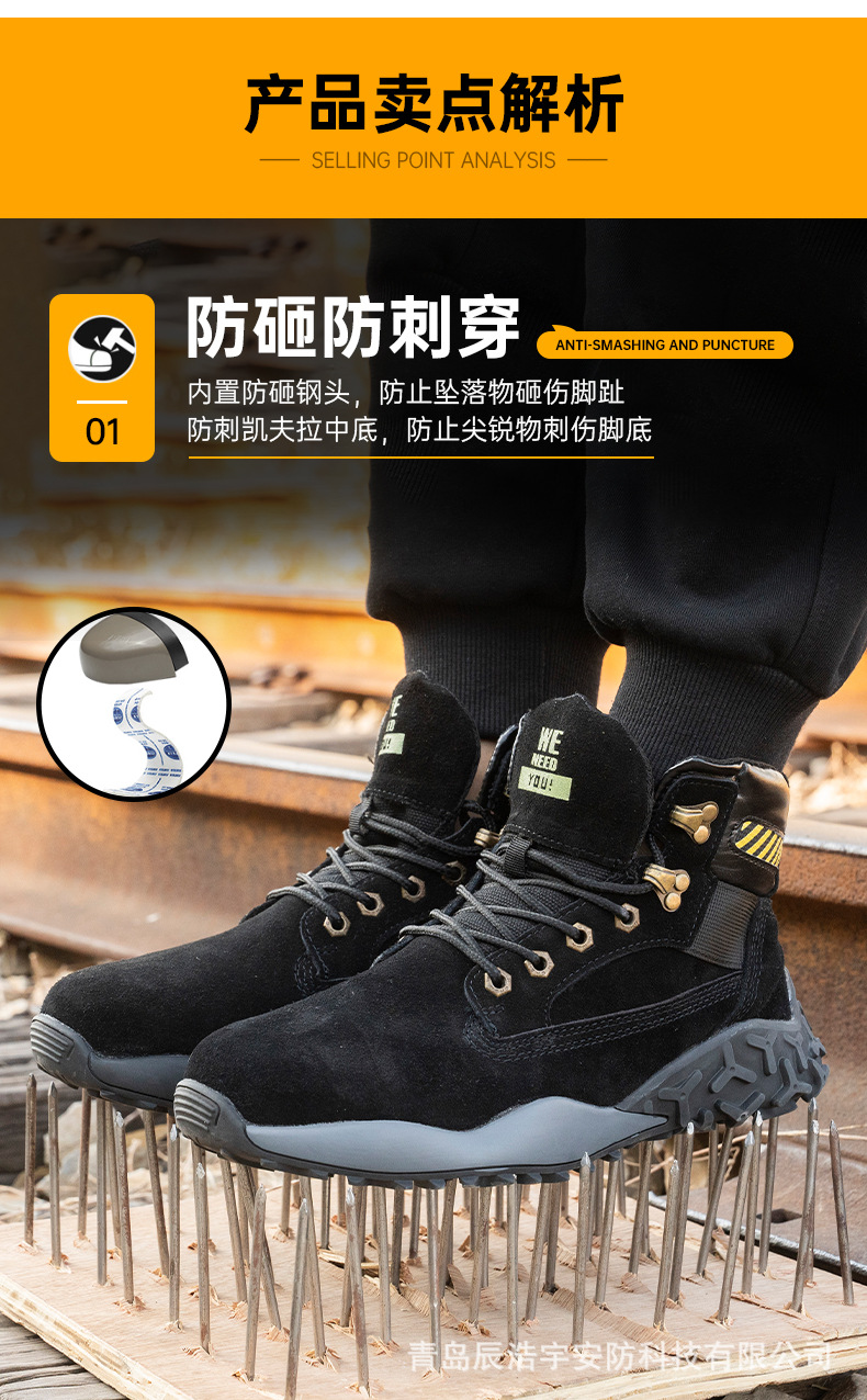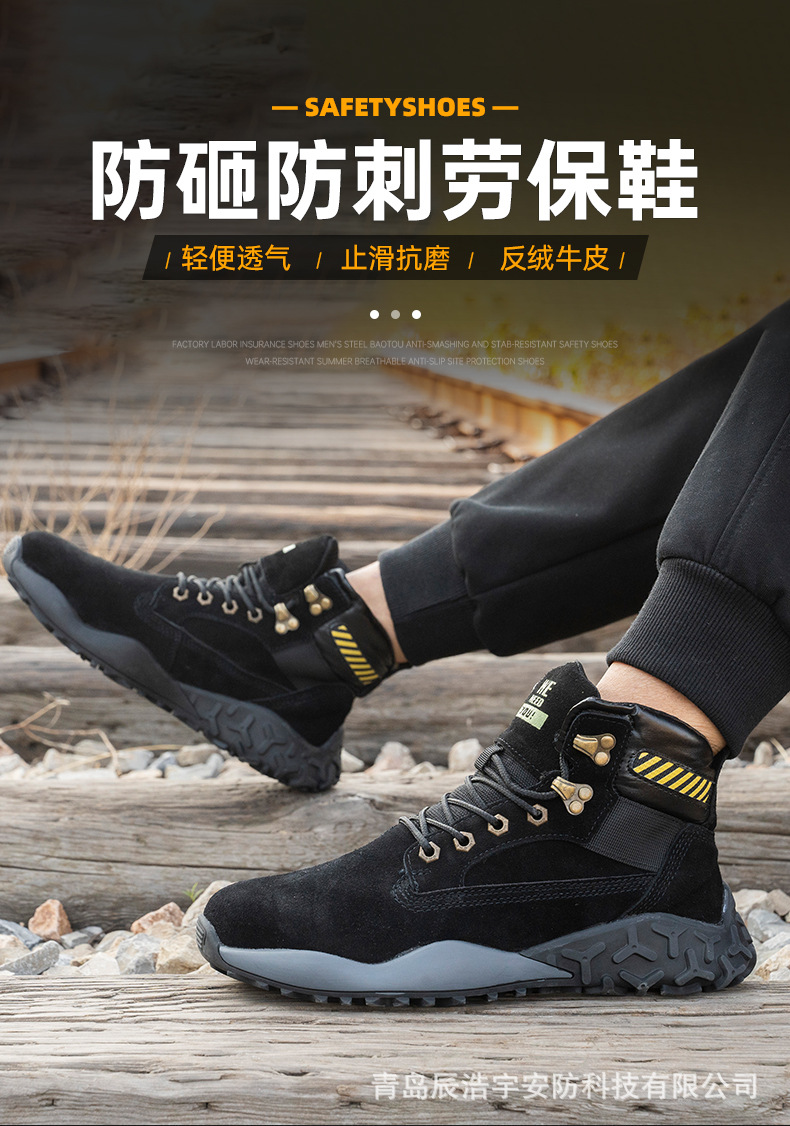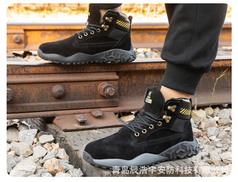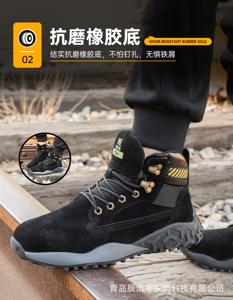 하이 탑 안티 코플리스 노동 보호 신발 스틸 발가락 보호 안전 작업 신발 미끄럼 방지 고무 4 시즌 신발 캐주얼 패션