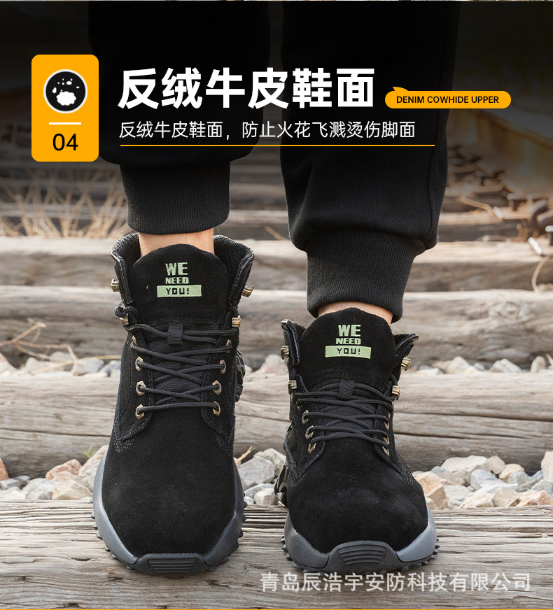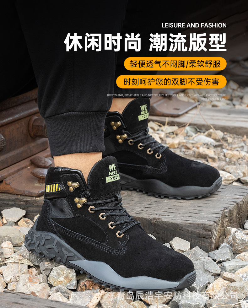 하이 탑 안티 코플리스 노동 보호 신발 스틸 발가락 보호 안전 작업 신발 미끄럼 방지 고무 4 시즌 신발 캐주얼 패션스토어 가기