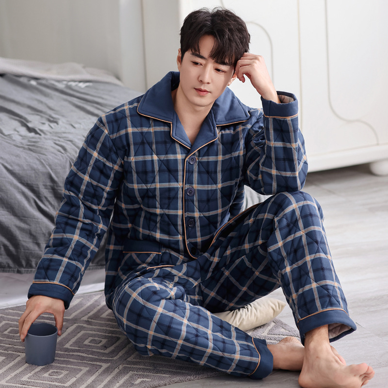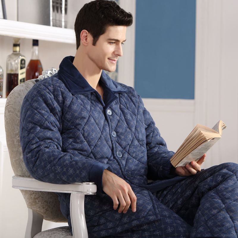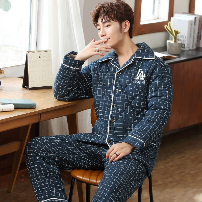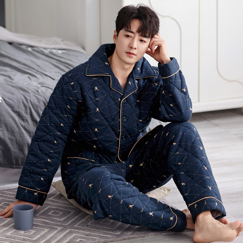 겨울 남성용 코튼 파자마 두꺼운 따뜻한 세트 코튼 퀼트 캐주얼 홈 의류 코튼 패딩 코트 초대형스토어 가기