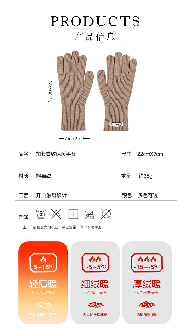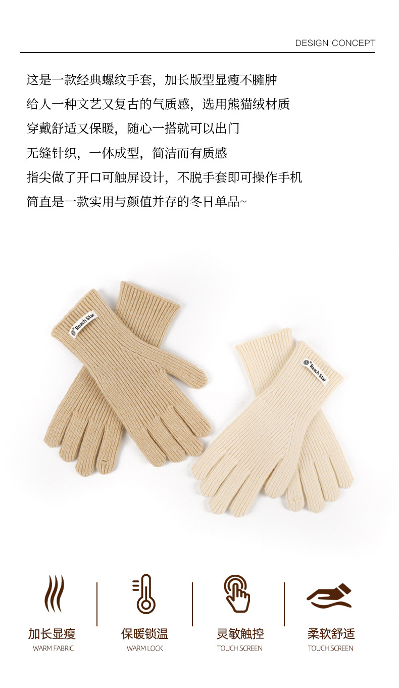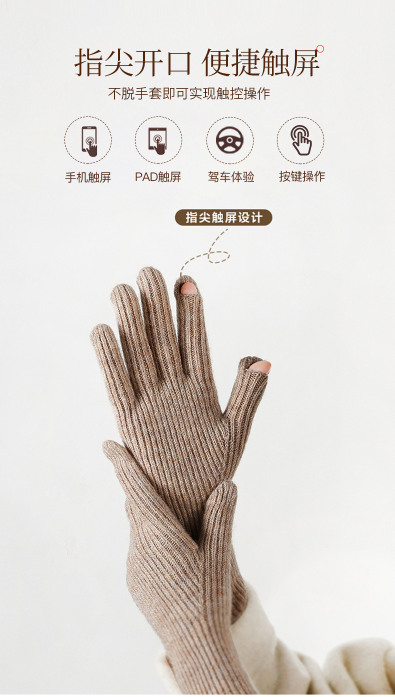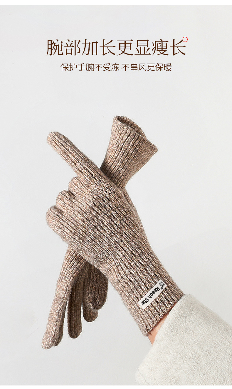 긴 솔리드 컬러 올 매치 니트 장갑 여성용 오픈 핑거 터치 스크린 방풍 방추위 두꺼운 따뜻한 겨울 장갑