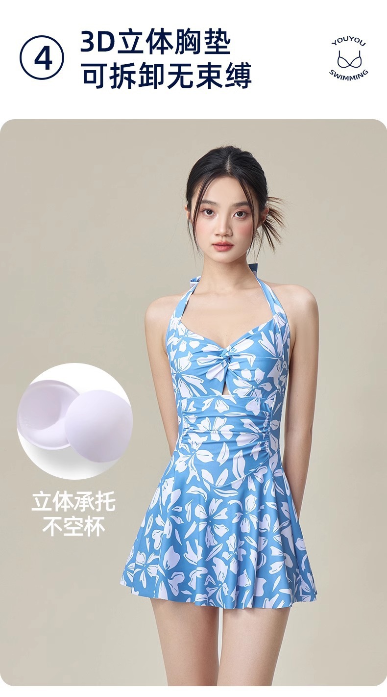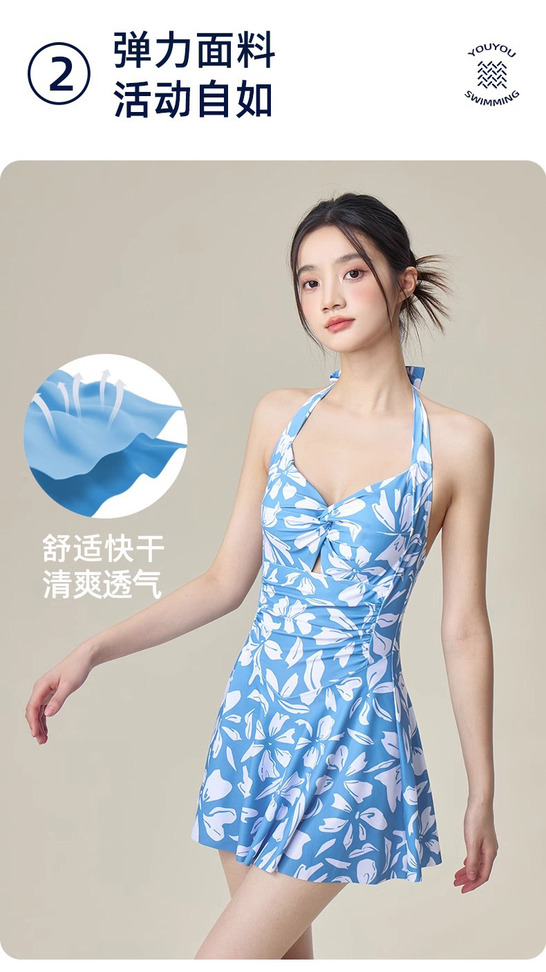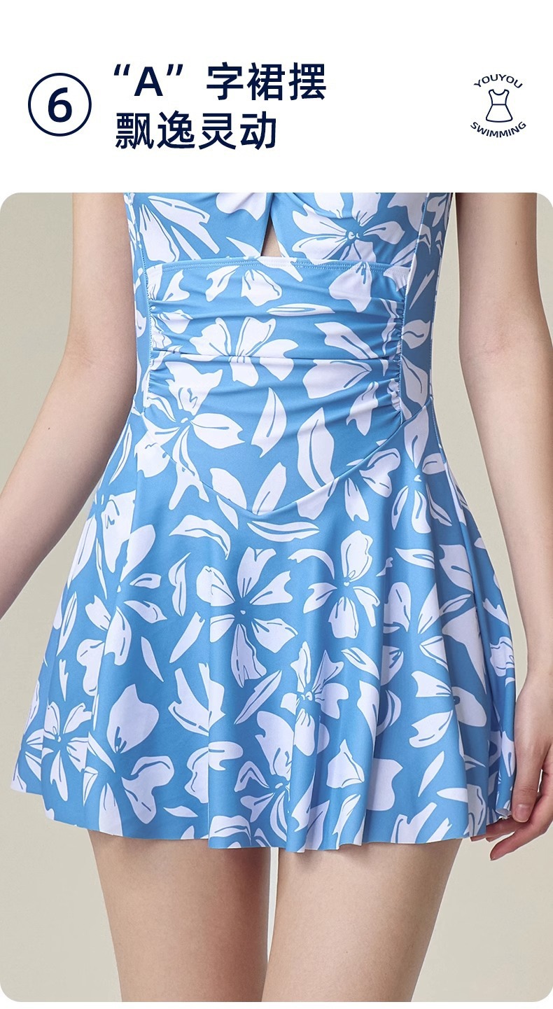 여성용 온천 수영복 신상품, 배를 가려주고 날씬해 보이는 패셔너블하고 섹시한 수영장 전용 원피스 스커트형 휴가용 수영복 도매스토어 가기