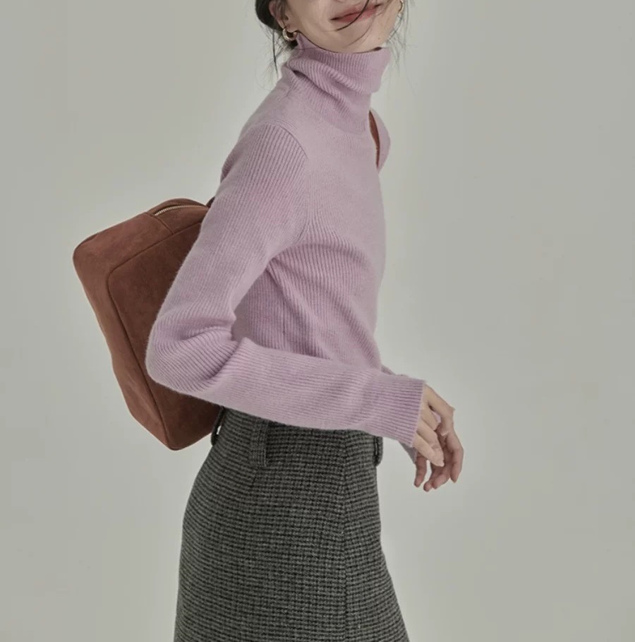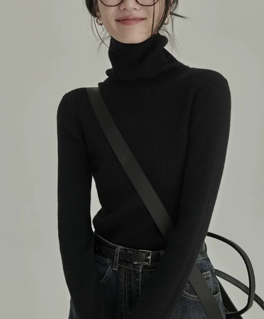 홍콩 스타일 디자인 하이넥 이너웨어 부드러운 니트 스웨터 여성용 2025 겨울 신상품 작은 사이즈 기본 니트 상의