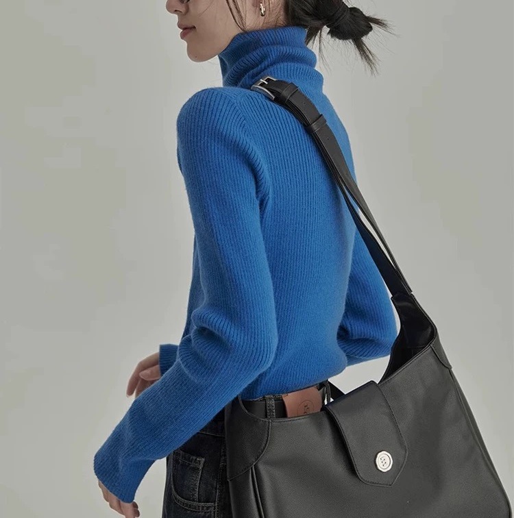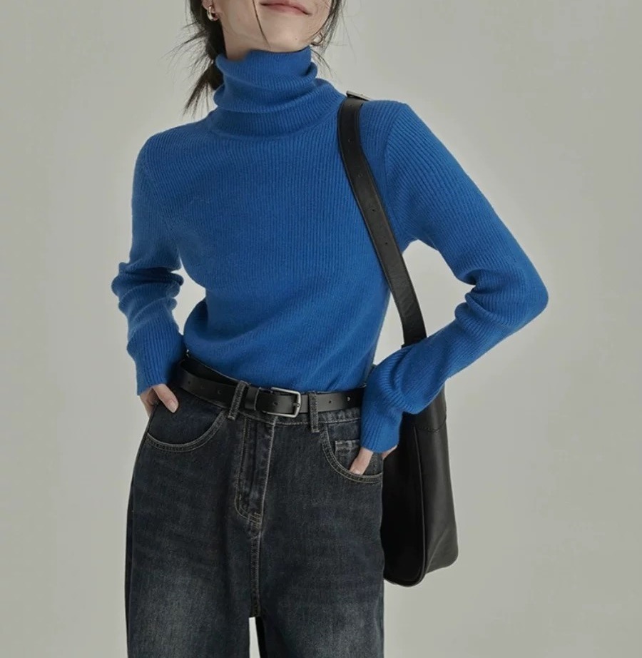홍콩 스타일 디자인 하이넥 이너웨어 부드러운 니트 스웨터 여성용 2025 겨울 신상품 작은 사이즈 기본 니트 상의스토어 가기