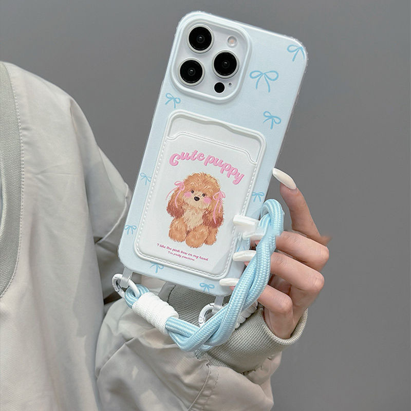 애플 16 휴대 전화 케이스 만화 활 강아지 iPhone13/14/15promax 카드 케이스 12/11 끈 x스토어 가기
