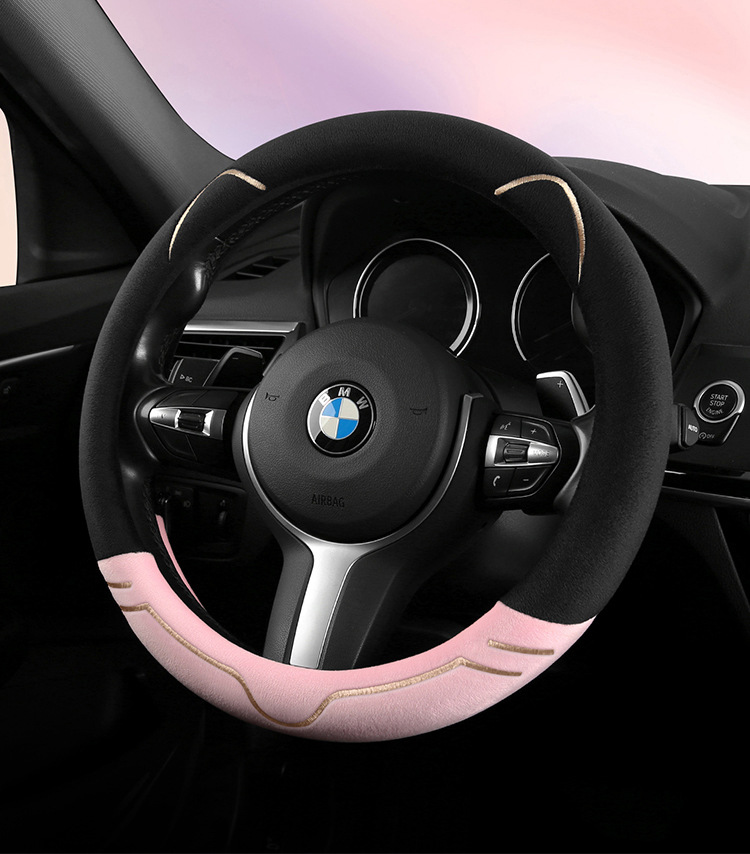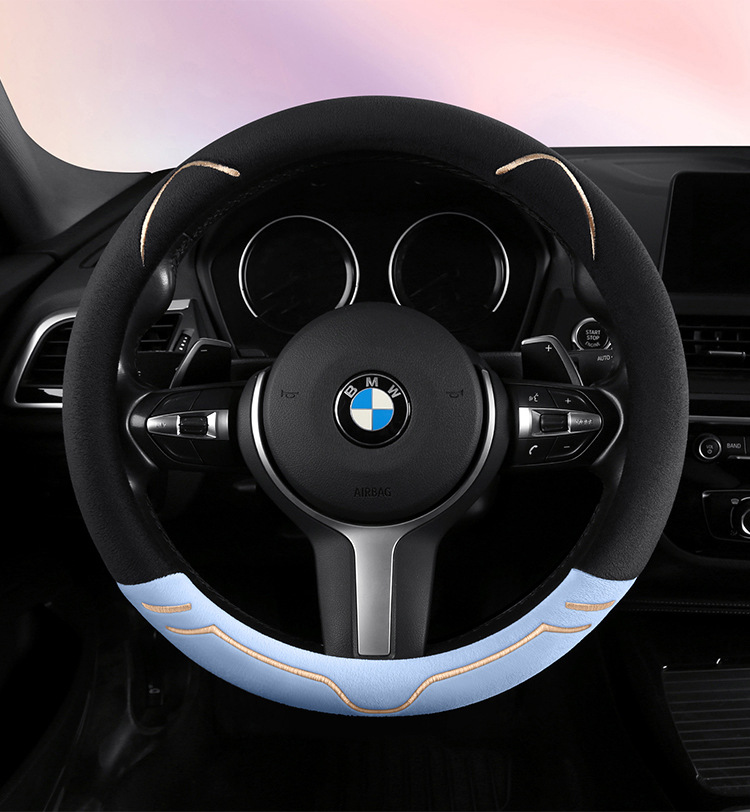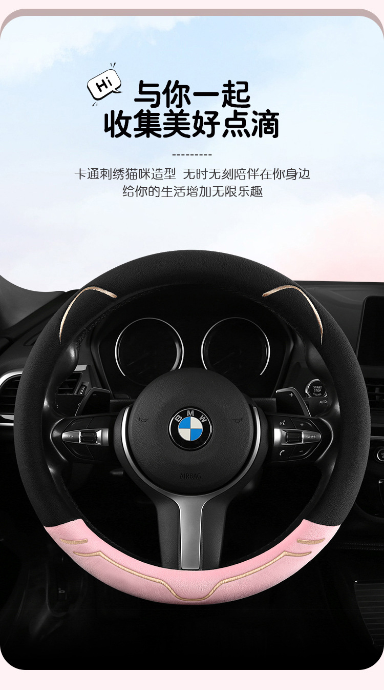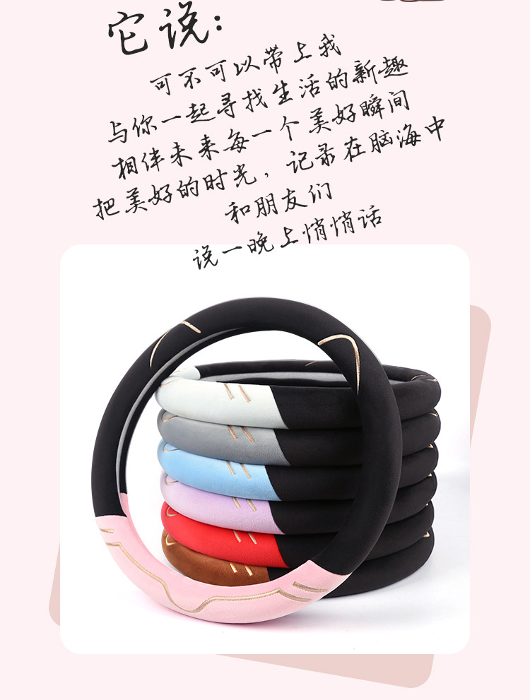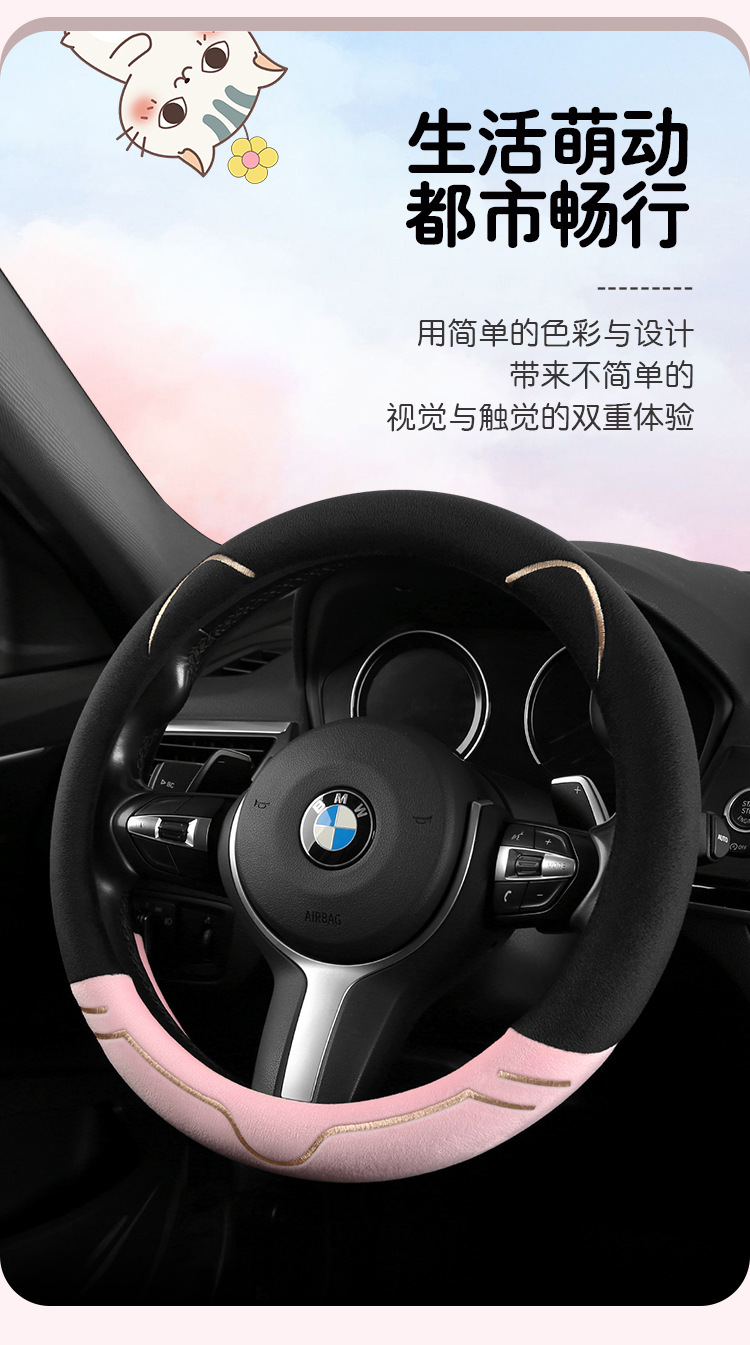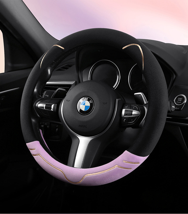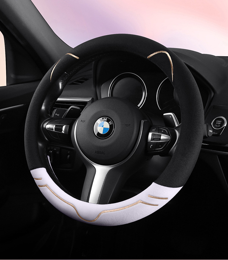 2024 새로운 짧은 봉제 겨울 자동차 스티어링 휠 커버 미끄럼 방지 귀엽고 편안한 4 시즌 다목적 자동차 핸들 커버스토어 가기