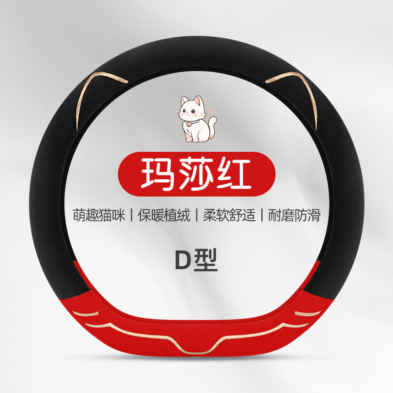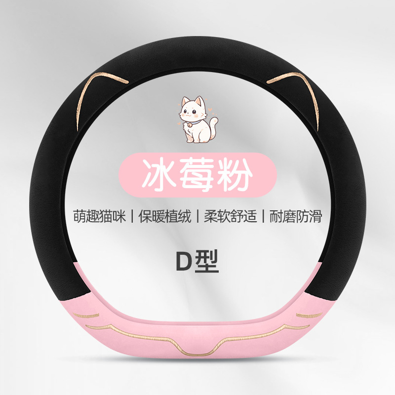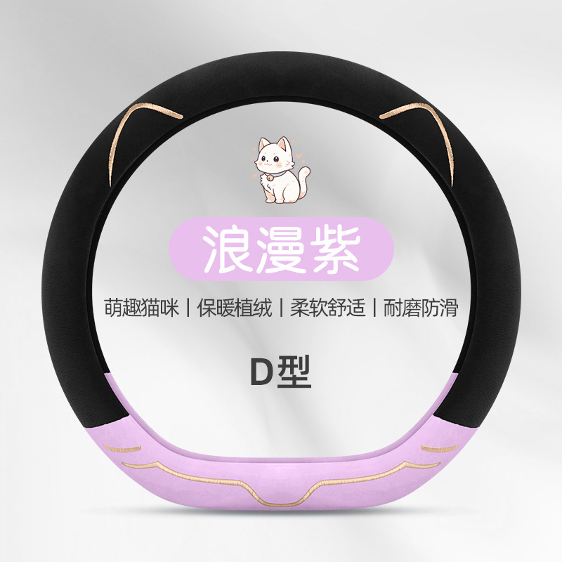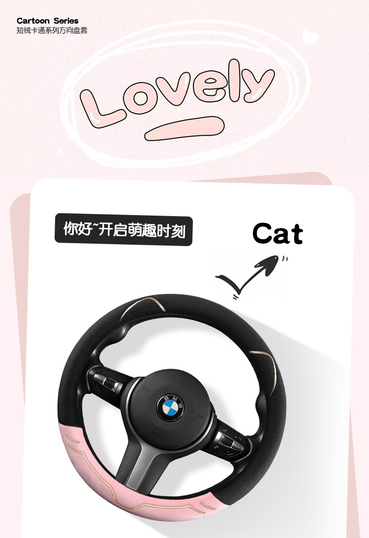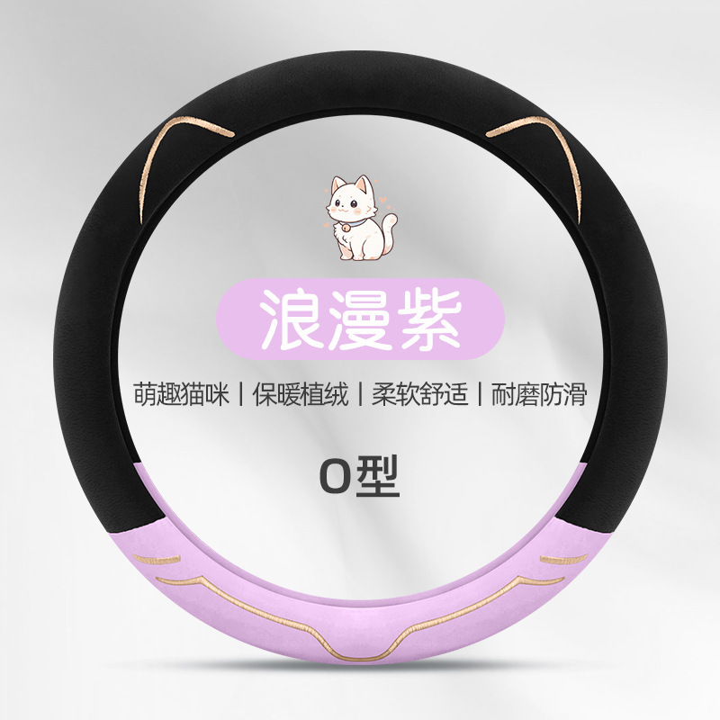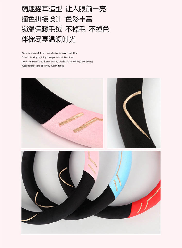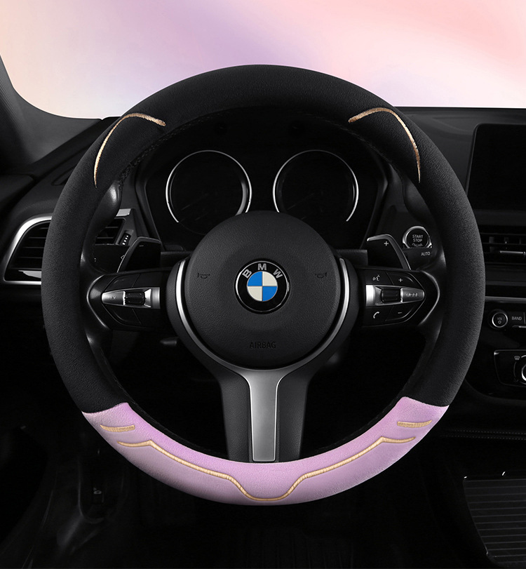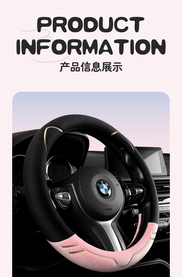 2024 새로운 짧은 봉제 겨울 자동차 스티어링 휠 커버 미끄럼 방지 귀엽고 편안한 4 시즌 다목적 자동차 핸들 커버스토어 가기