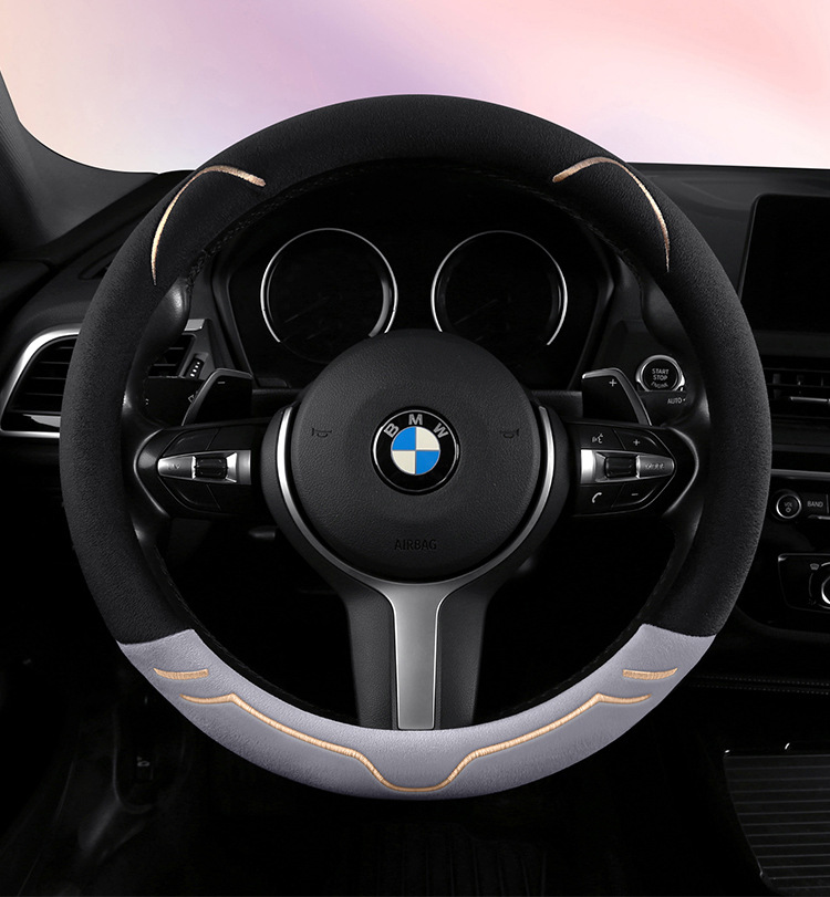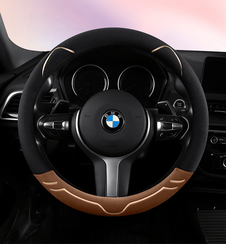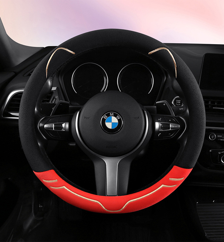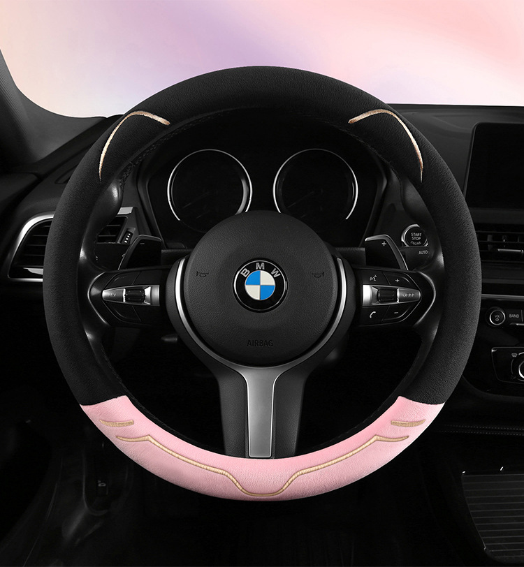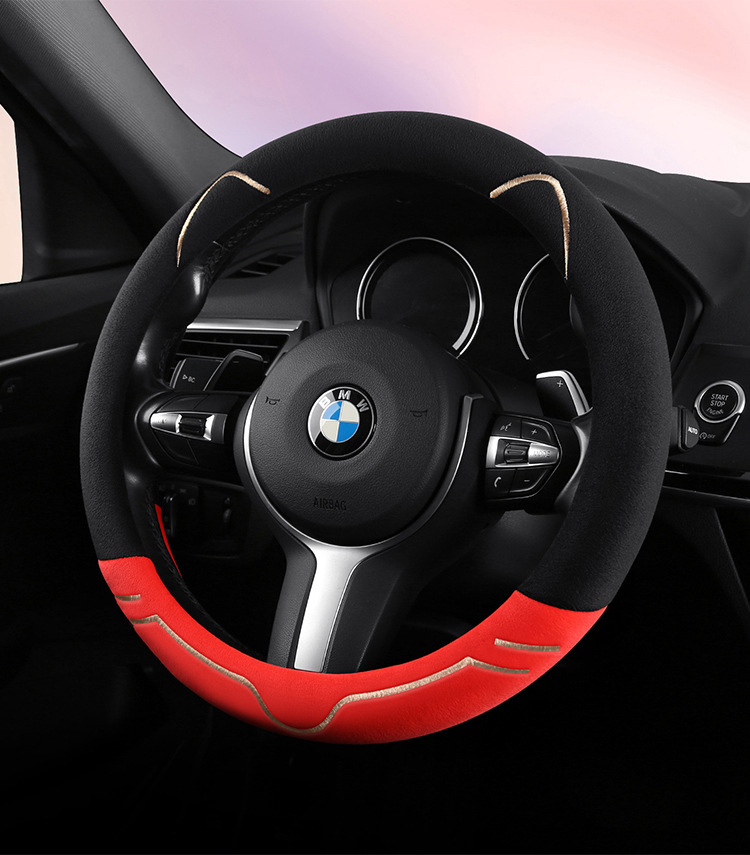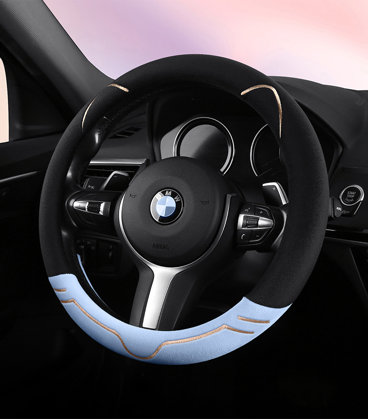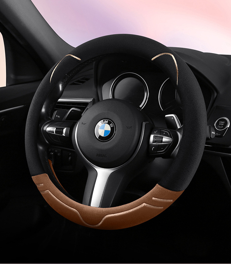 2024 새로운 짧은 봉제 겨울 자동차 스티어링 휠 커버 미끄럼 방지 귀엽고 편안한 4 시즌 다목적 자동차 핸들 커버