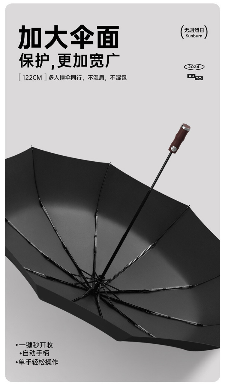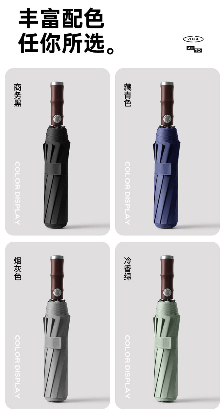 3 배 복고풍 대나무 나무 손잡이 완전 자동 우산 대형 강화 두꺼운 폭풍 우산 자외선 차단제 및 방비스토어 가기