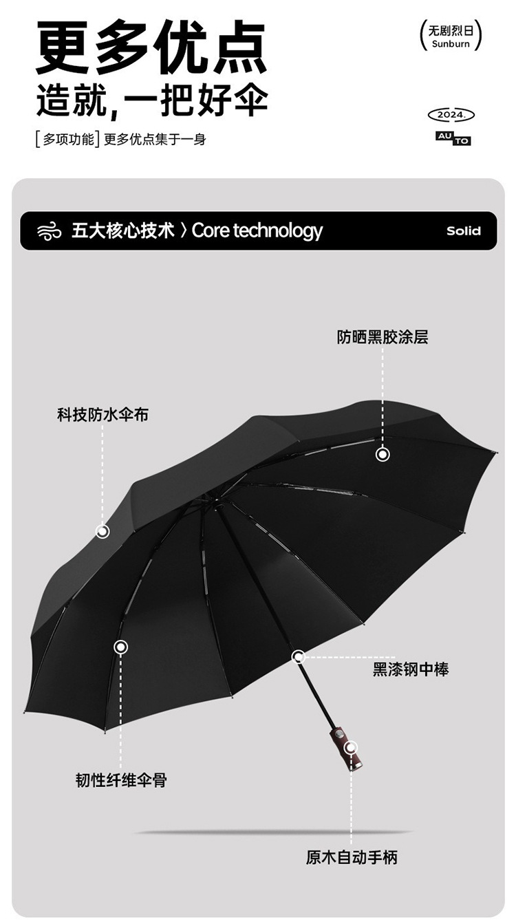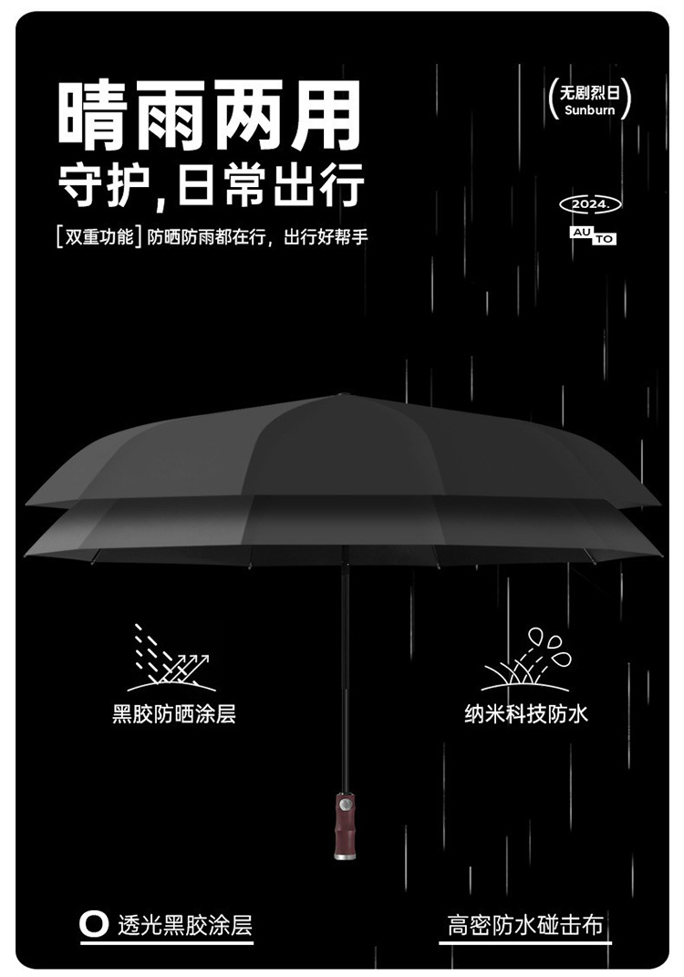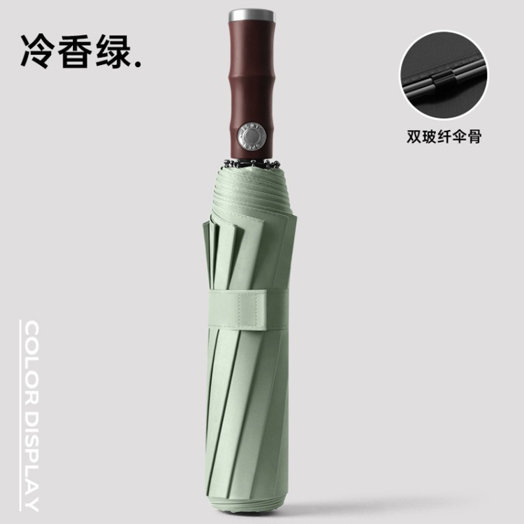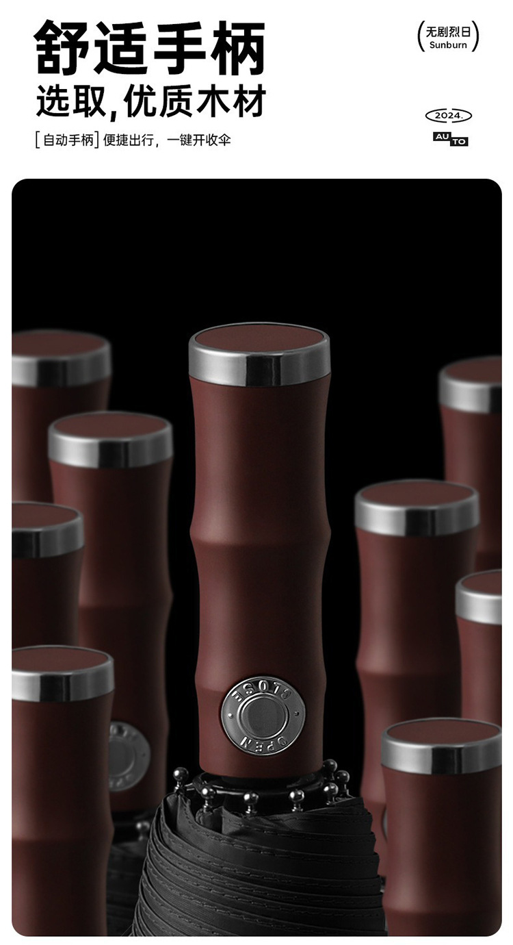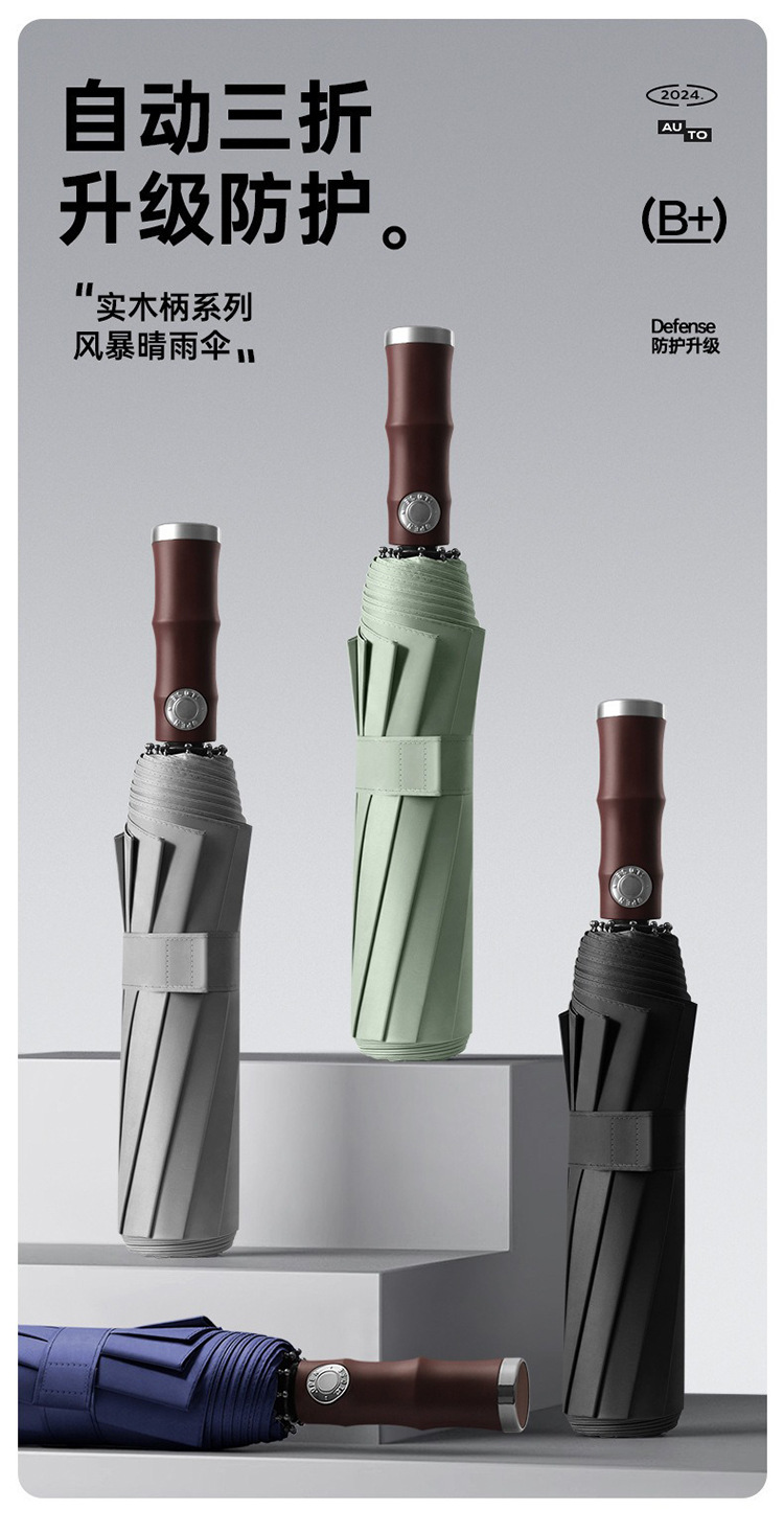 3 배 복고풍 대나무 나무 손잡이 완전 자동 우산 대형 강화 두꺼운 폭풍 우산 자외선 차단제 및 방비