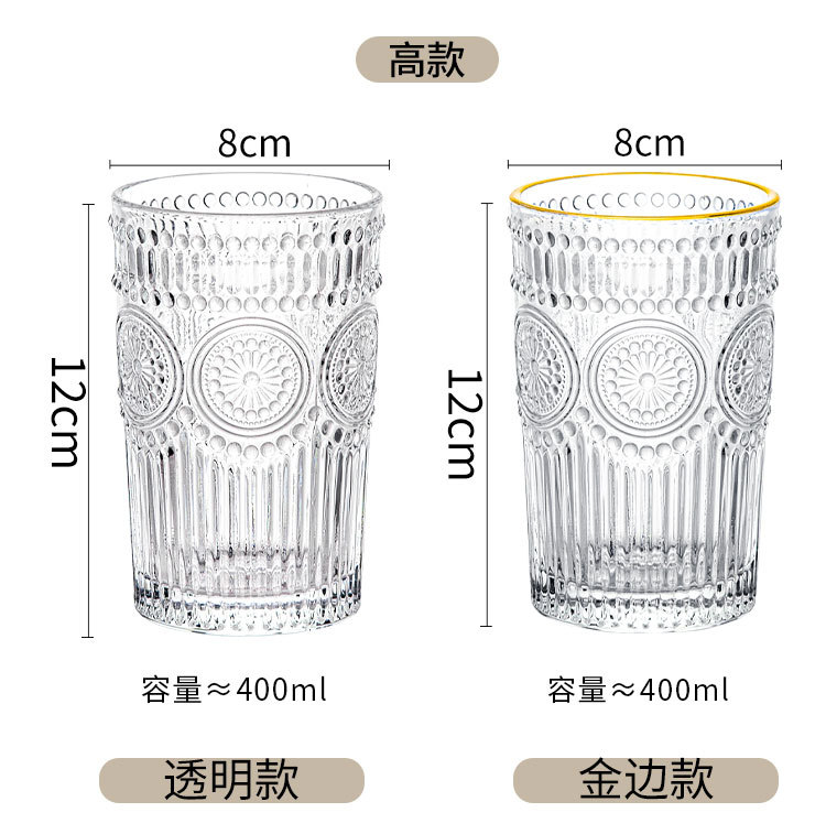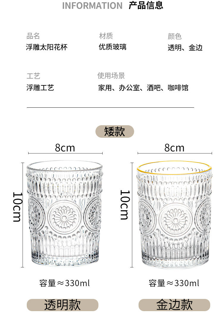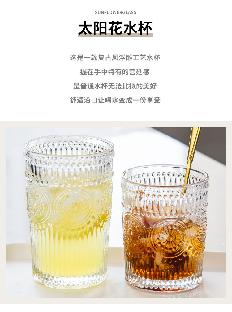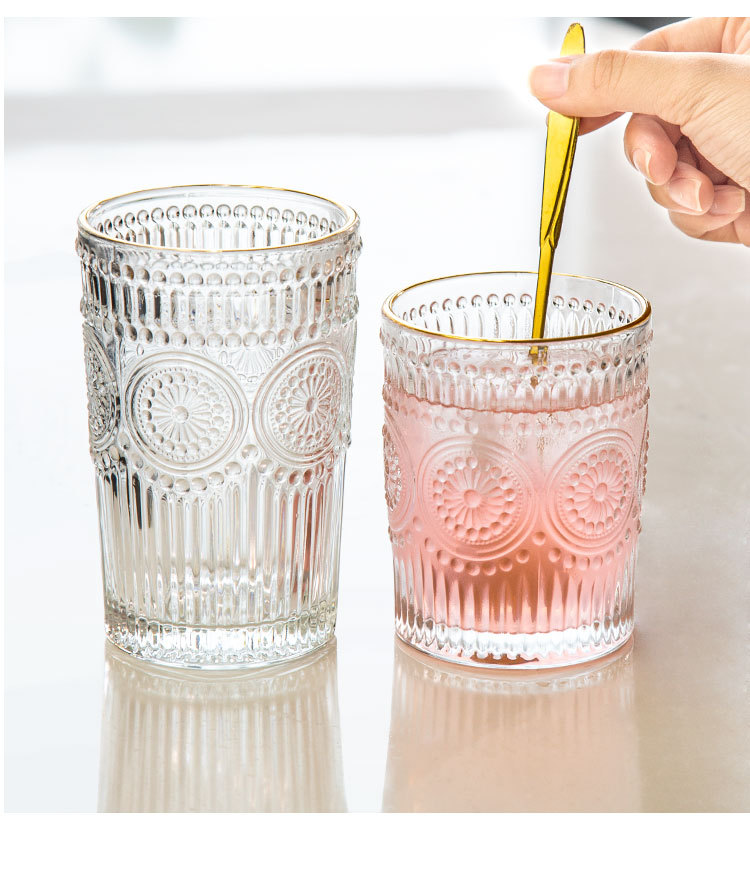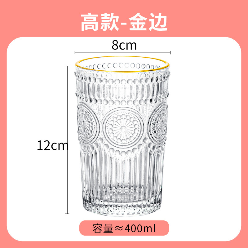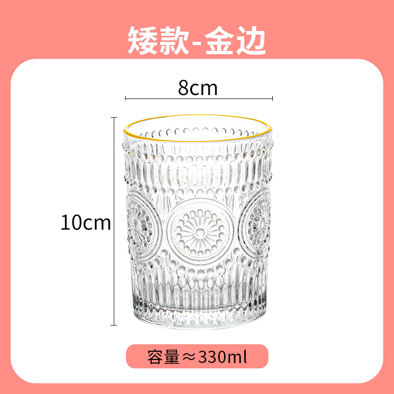 컵인 해바라기 창조적 인 유리 컵 차가운 음료 주스 컵 가정용 식사 컵 골드 에지 와인 컵 손