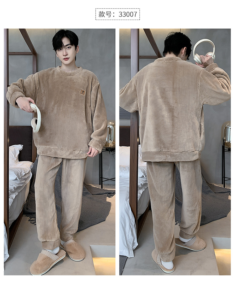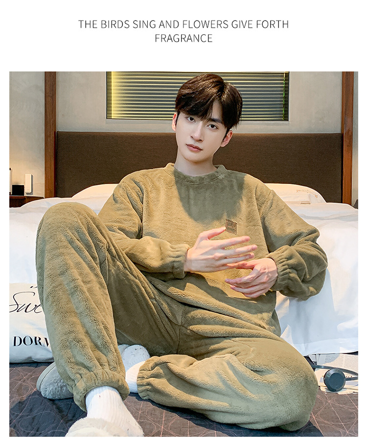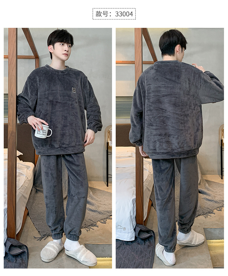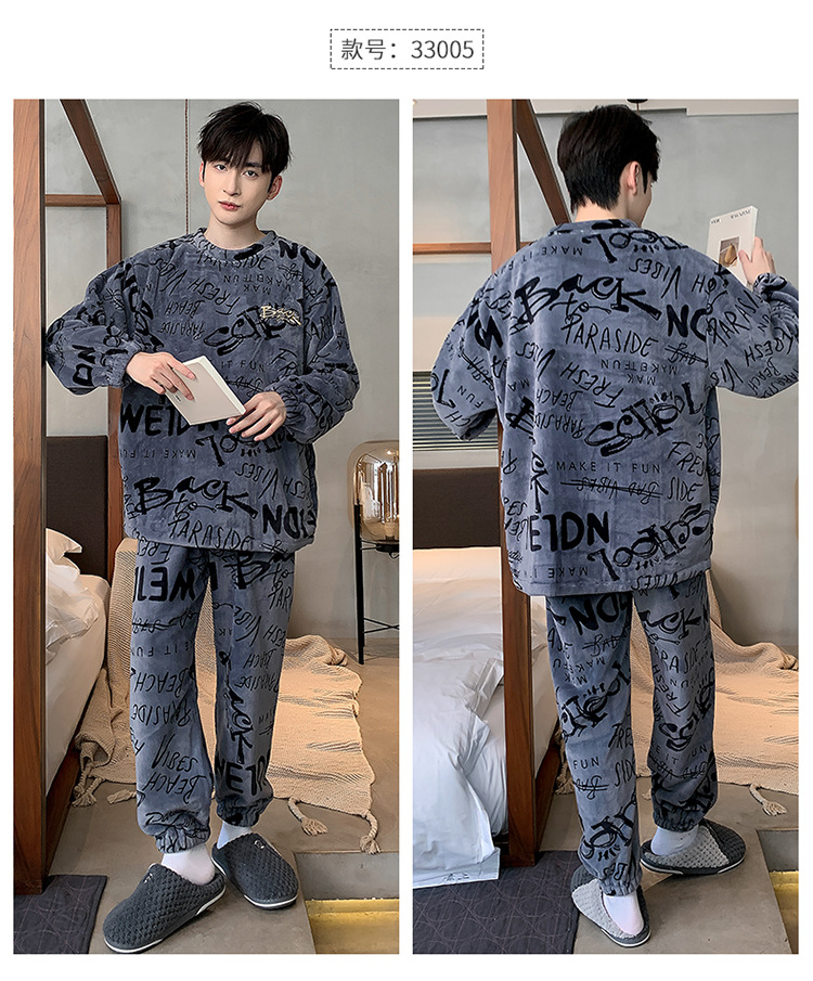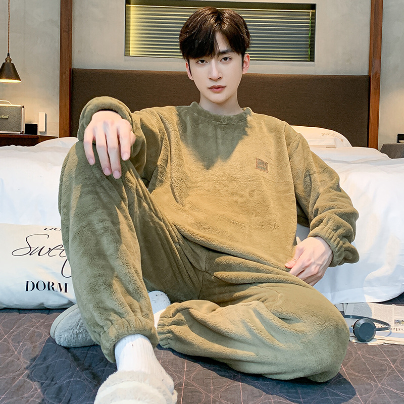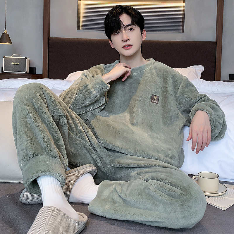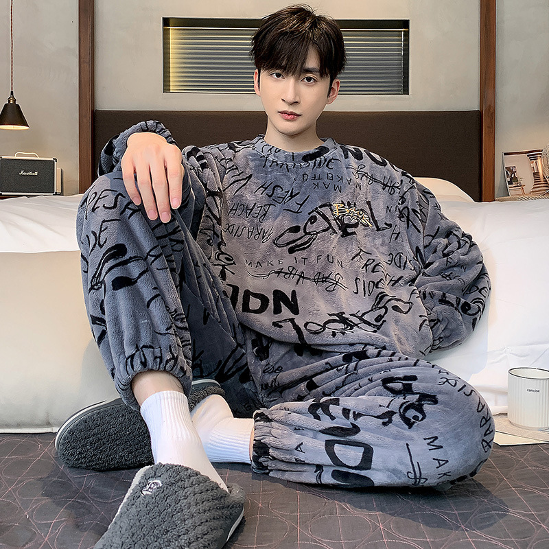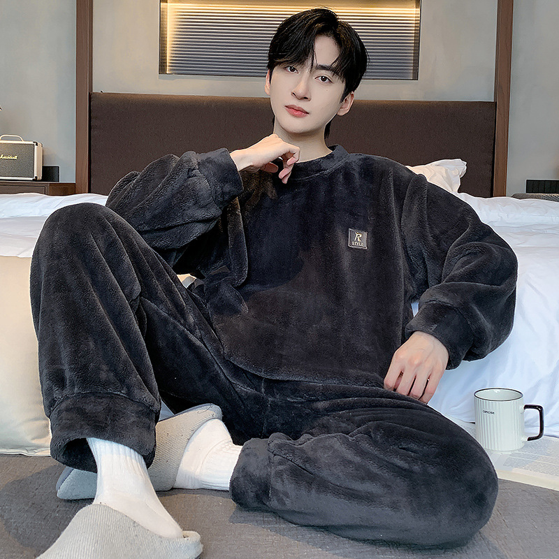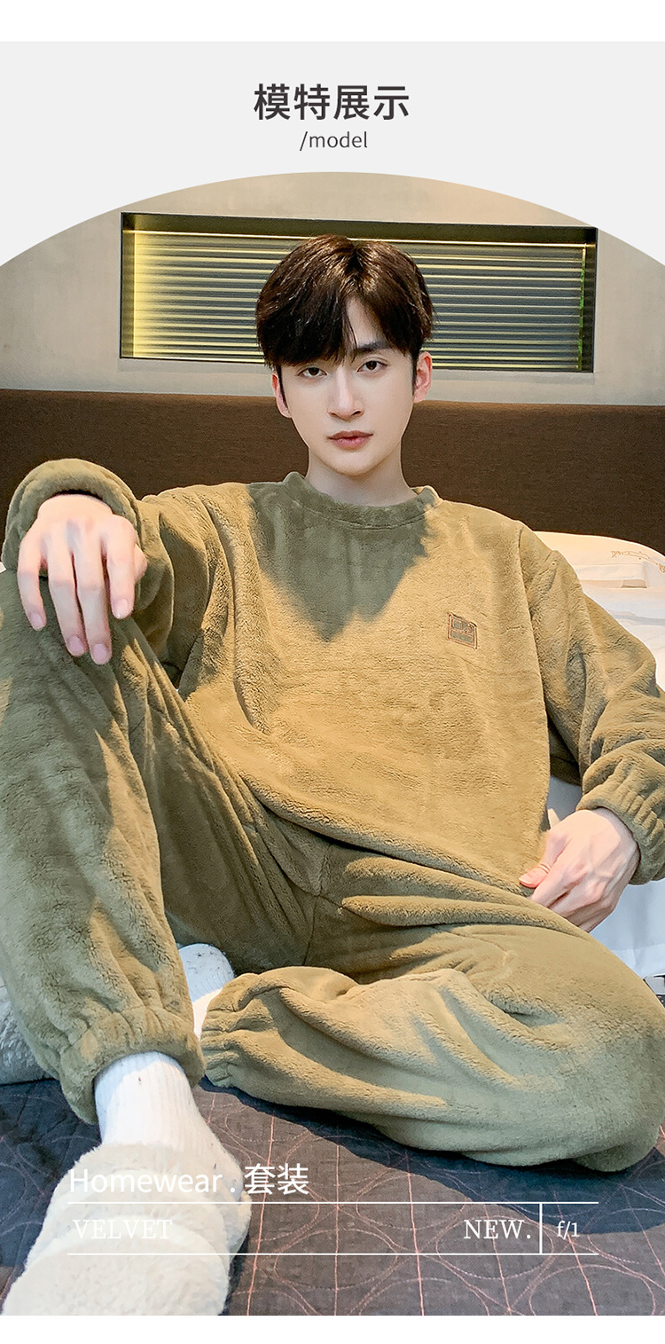 2024 새로운 산호 양털 잠옷 남자의 가을과 겨울 기모 두꺼운 간단한 캐주얼 홈 의류 세트 착용스토어 가기
