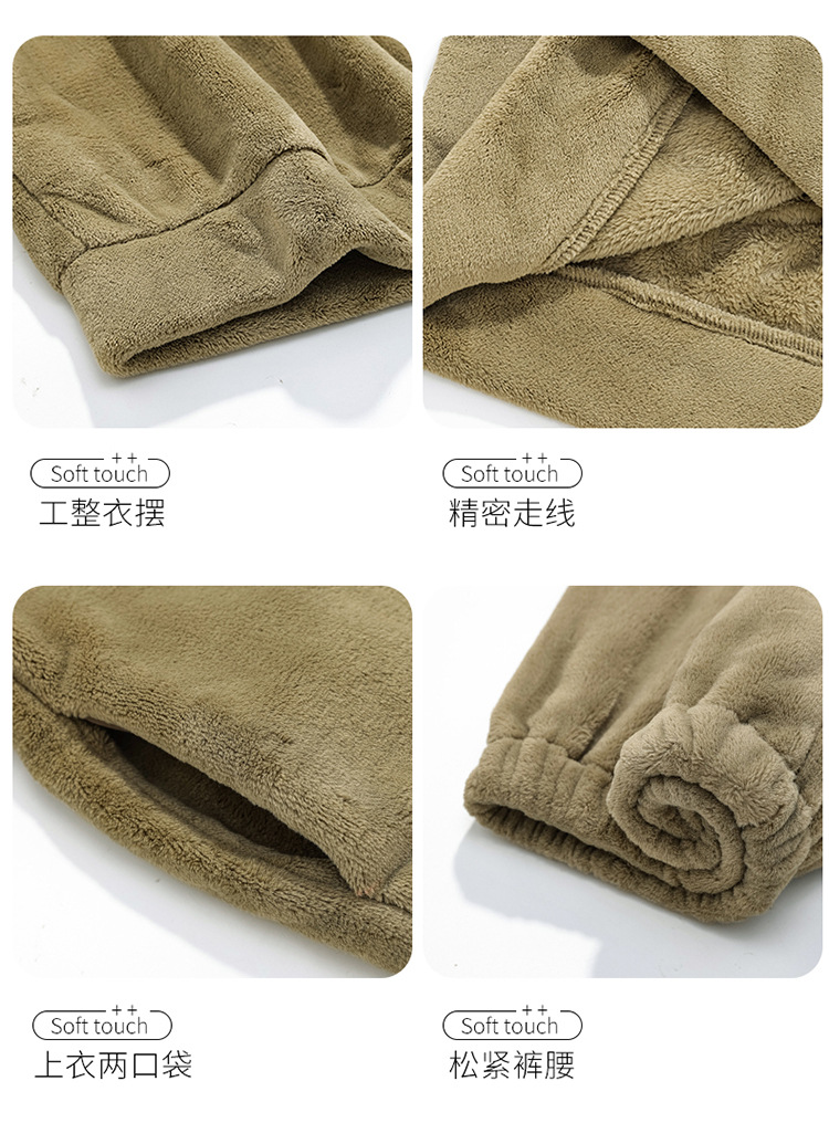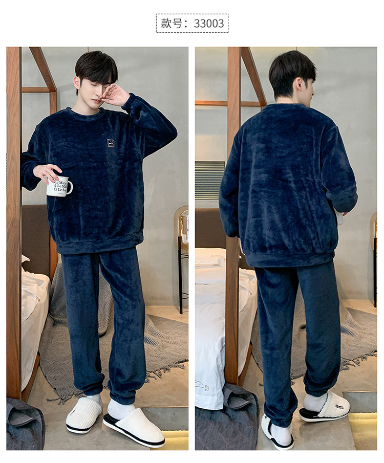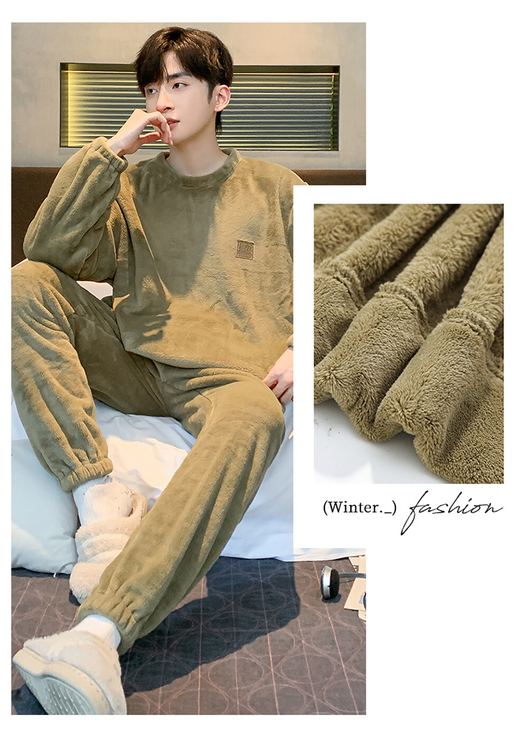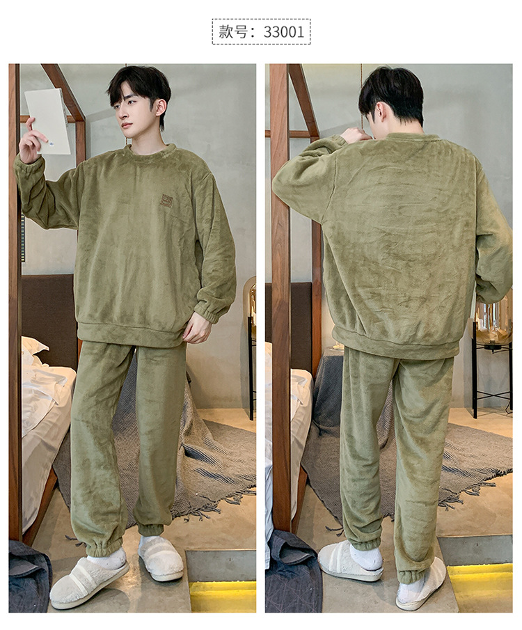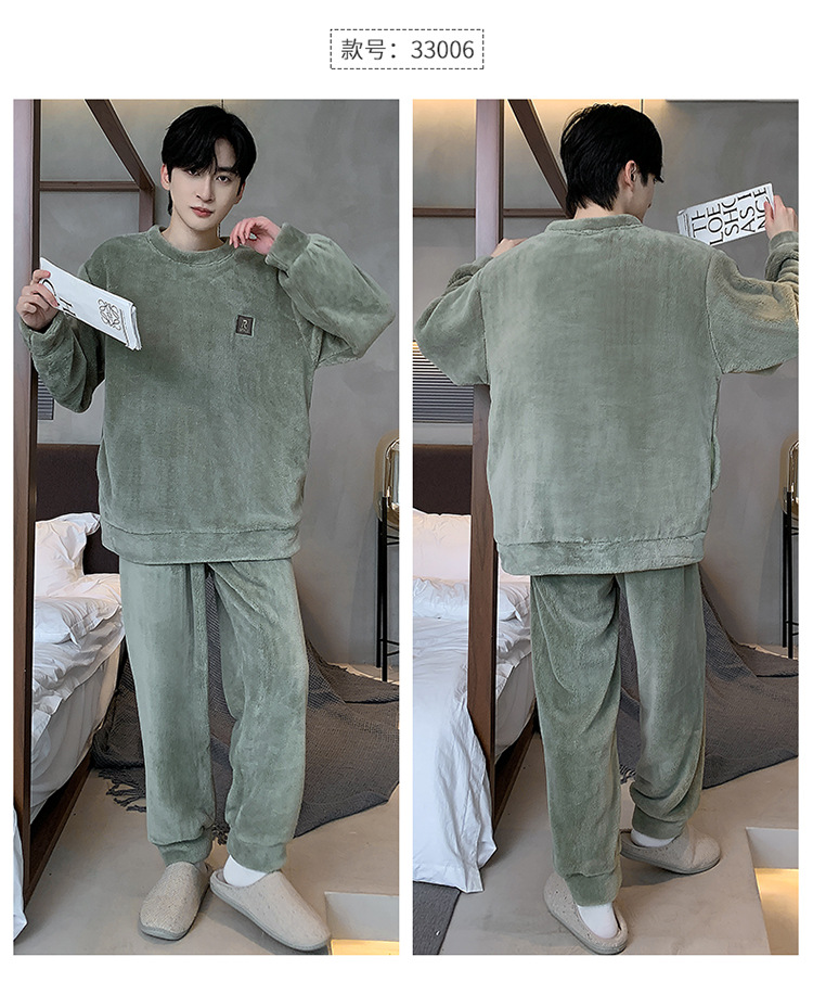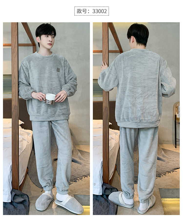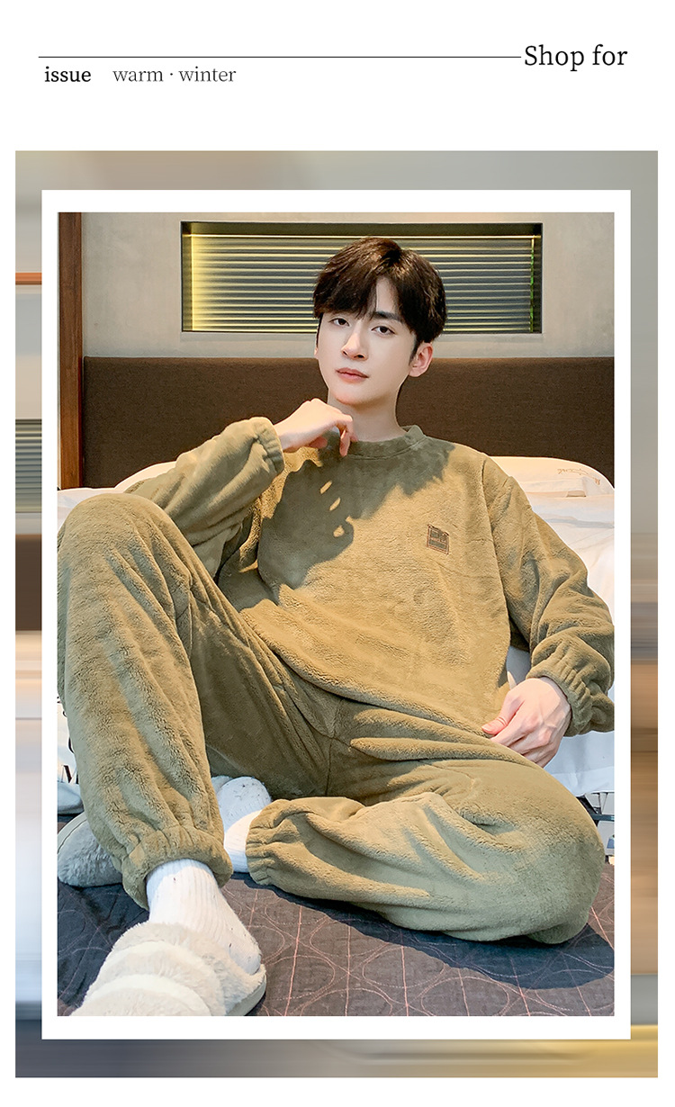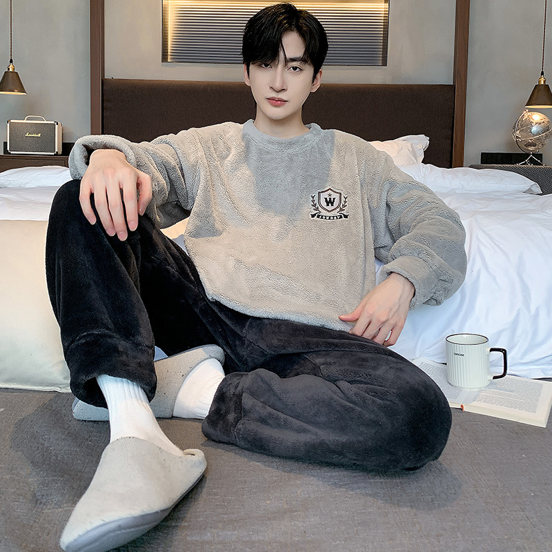 2024 새로운 산호 양털 잠옷 남자의 가을과 겨울 기모 두꺼운 간단한 캐주얼 홈 의류 세트 착용스토어 가기