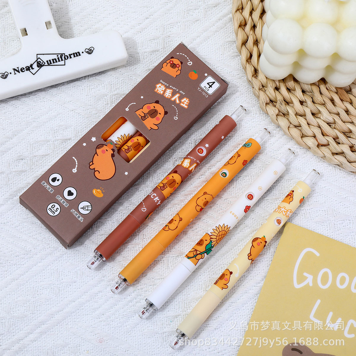 슈퍼 귀여운 프레스 얼굴 변경 젤 펜 높은 색상 가치 포켓 펜 귀여운 학생 감압 브러시 크레용 작은 새 검은 펜스토어 가기