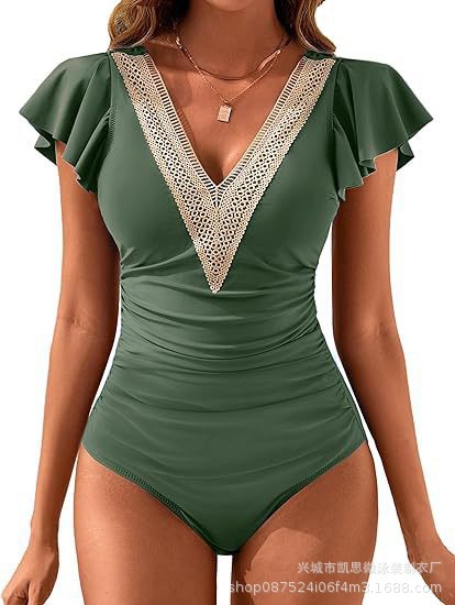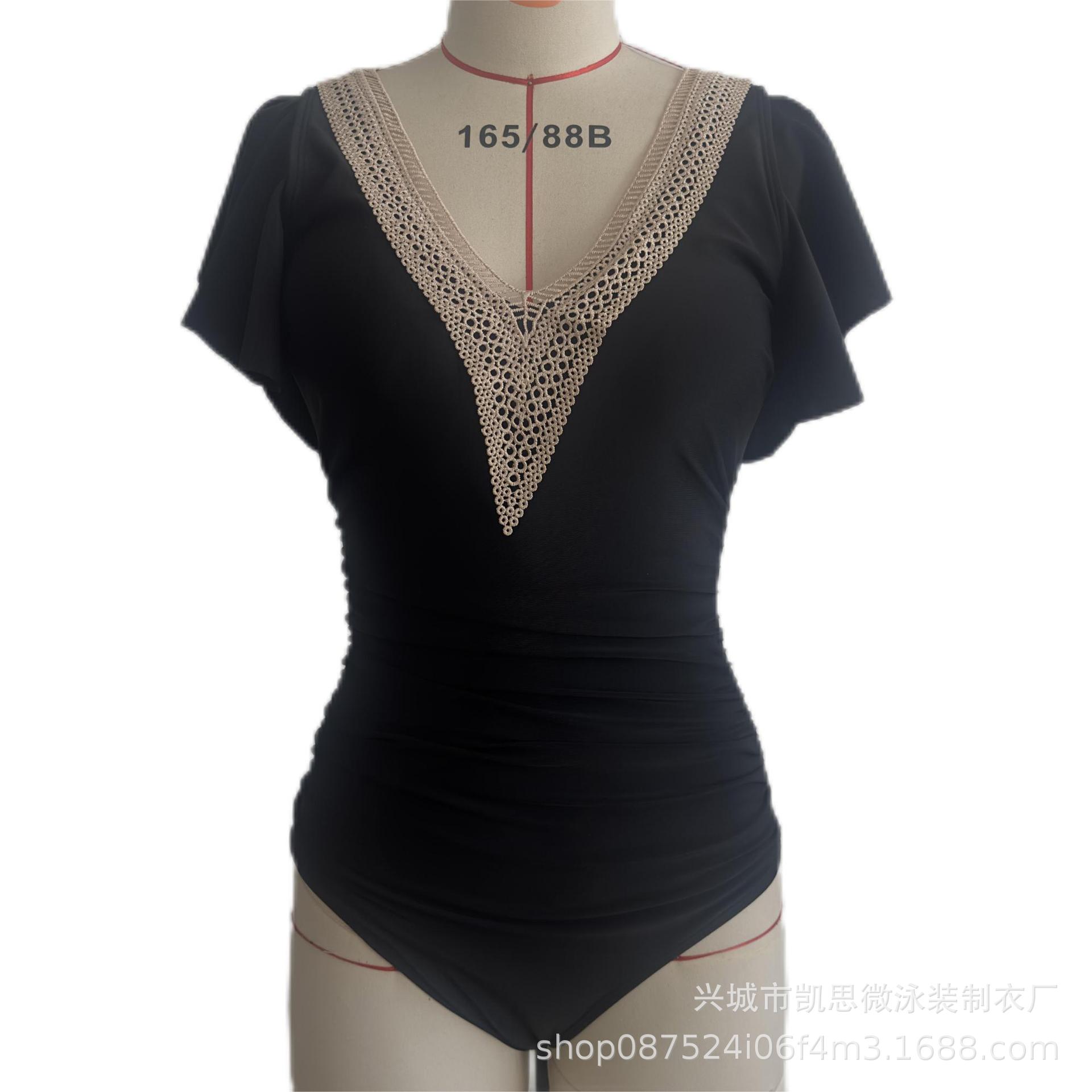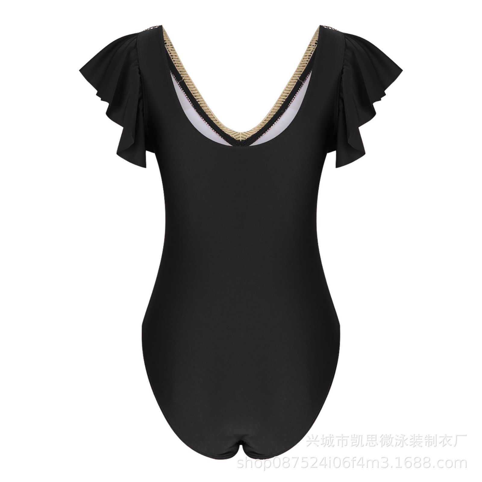 유럽과 미국의 대외 무역 원피스 플러스 사이즈 수영복 여성 비료 플러스 단단한 단색 백리스 섹시한 러플 아마존