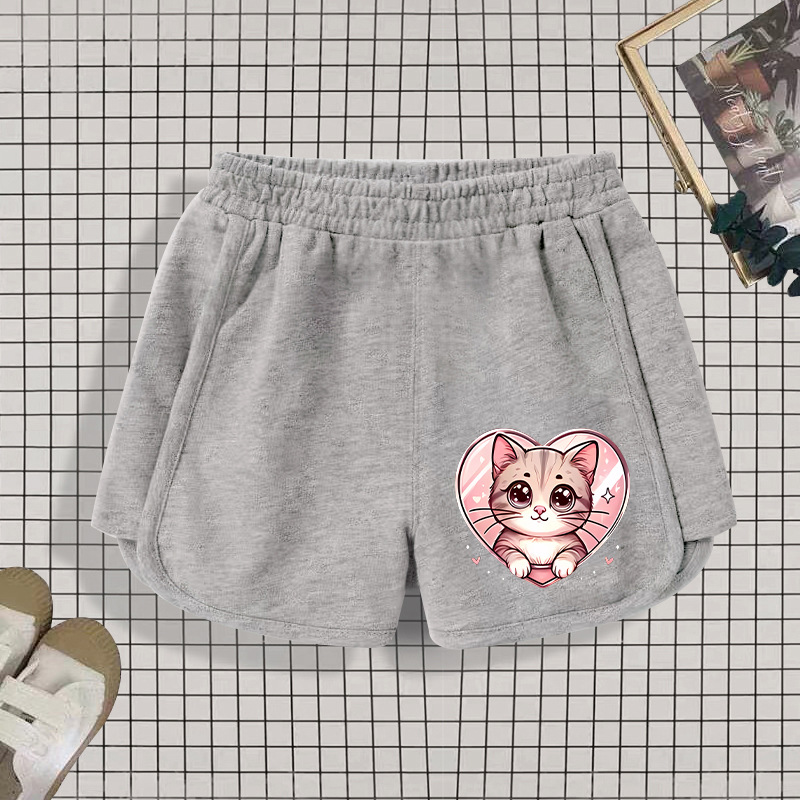 • 회색 반바지를 입은 사랑 고양이