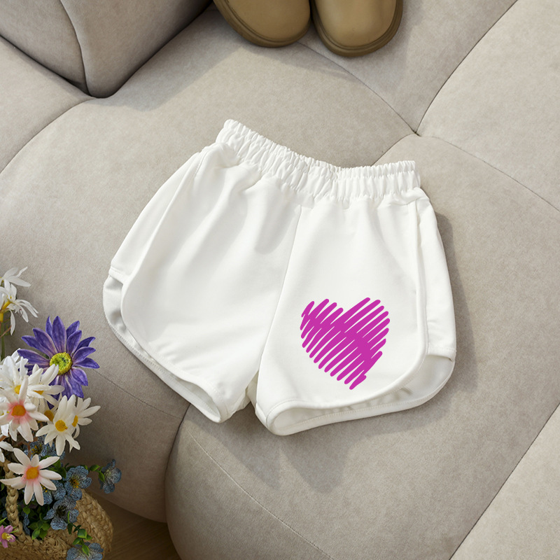 • 흰색 반바지 핑크 줄무늬 하트