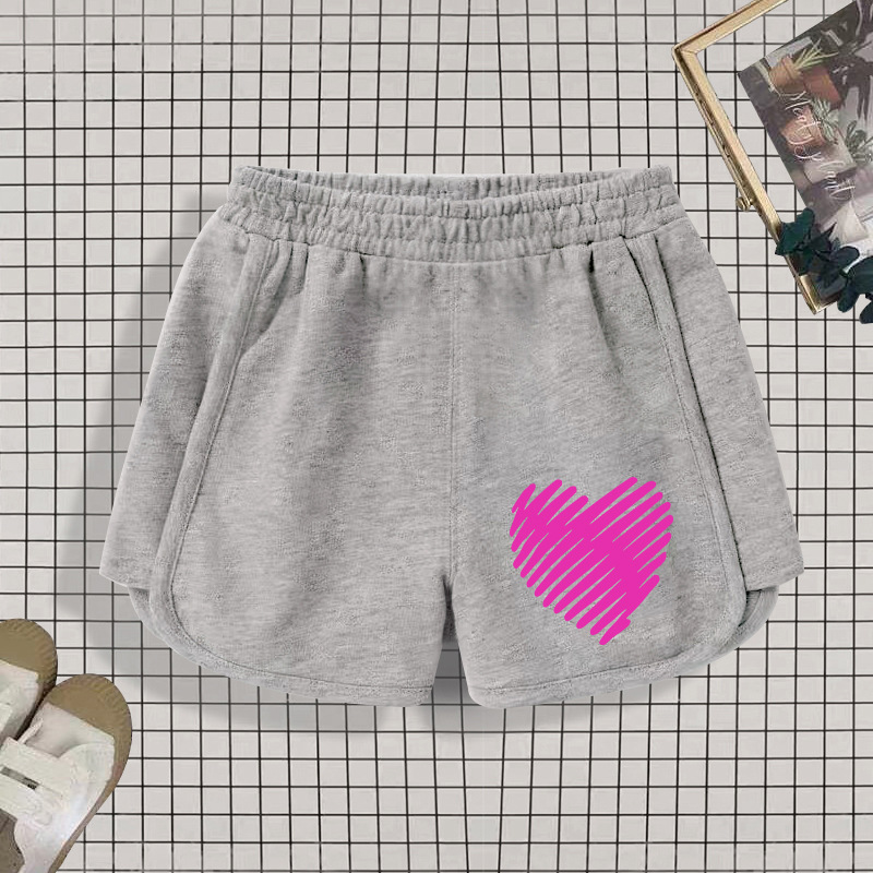 • 회색 반바지 핑크 줄무늬 하트