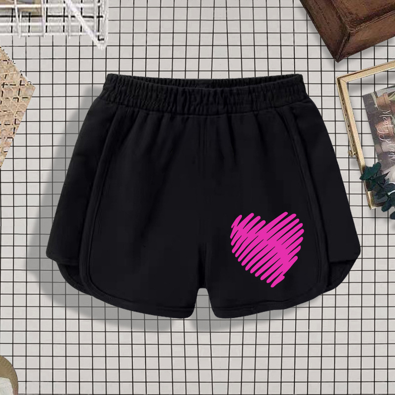 • 핑크색 줄무늬와 하트가 있는 검은색 반바지