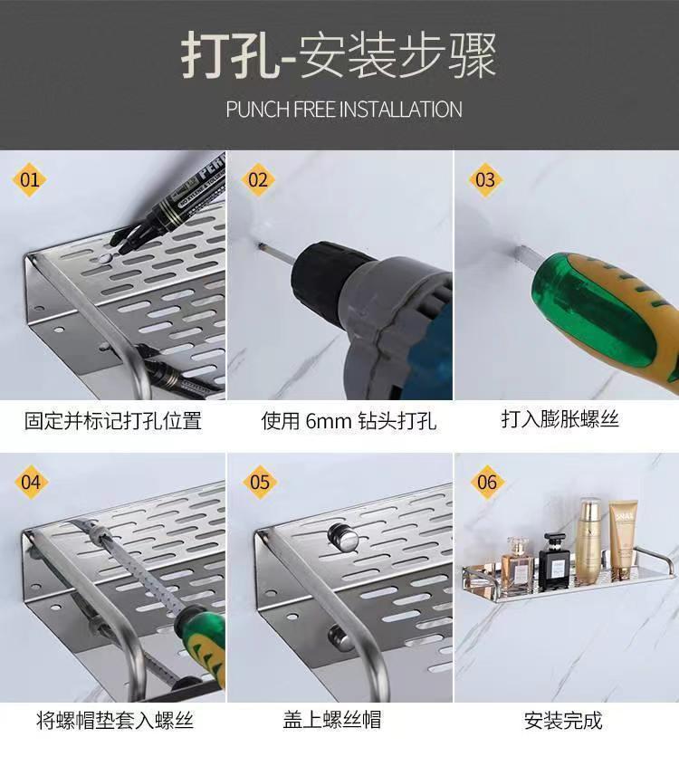 욕실 펀치 프리 스토리지 랙 다기능 주방 트레이 스테인레스 스틸 욕실 벽 랙 주방 스토리지 랙스토어 가기