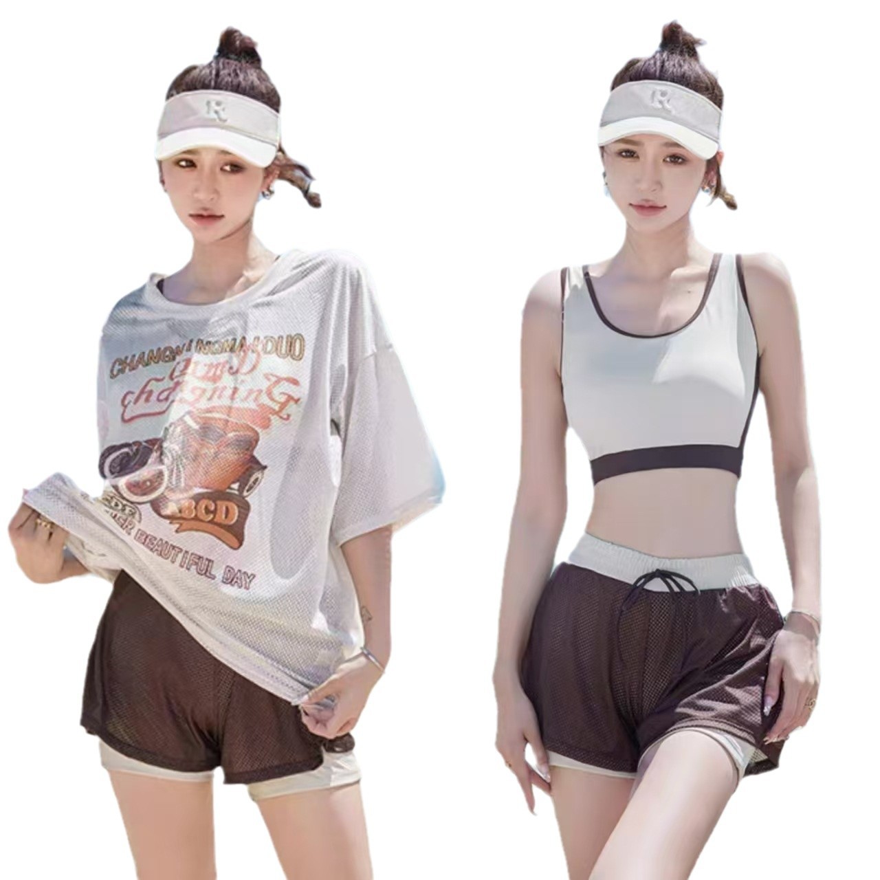 2026년 신상 여성용 3피스 반바지 세트 만화 스타일 스포츠 수영복 53215스토어 가기