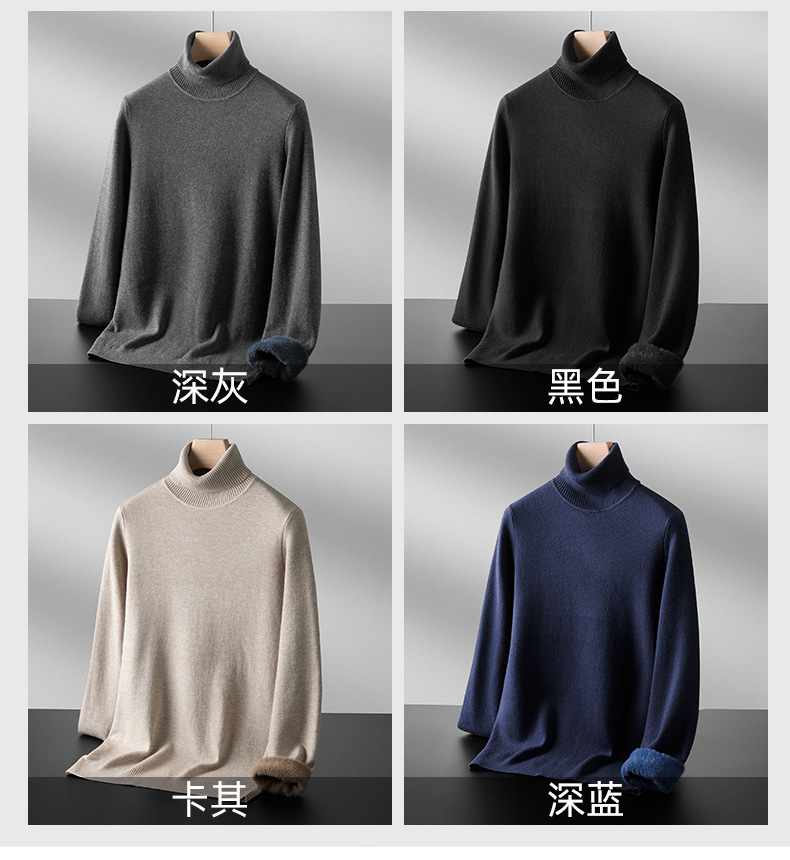 원피스 벨벳 터틀넥 스웨터 남성베이스 셔츠 긴팔 슬림 핏 캐주얼 겨울 기모 남성용 두꺼운 스웨터