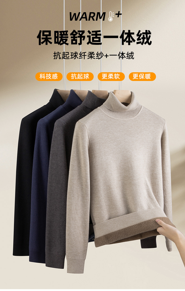 원피스 벨벳 터틀넥 스웨터 남성베이스 셔츠 긴팔 슬림 핏 캐주얼 겨울 기모 남성용 두꺼운 스웨터스토어 가기