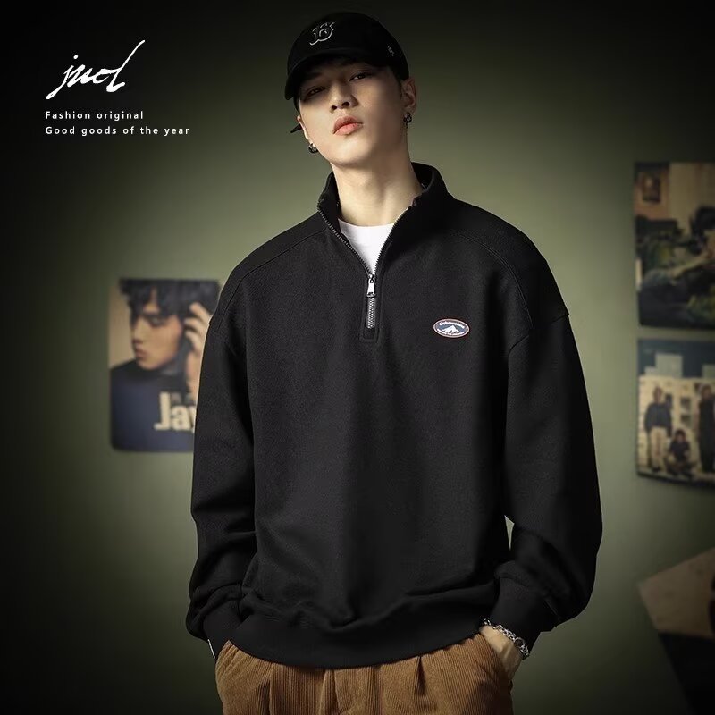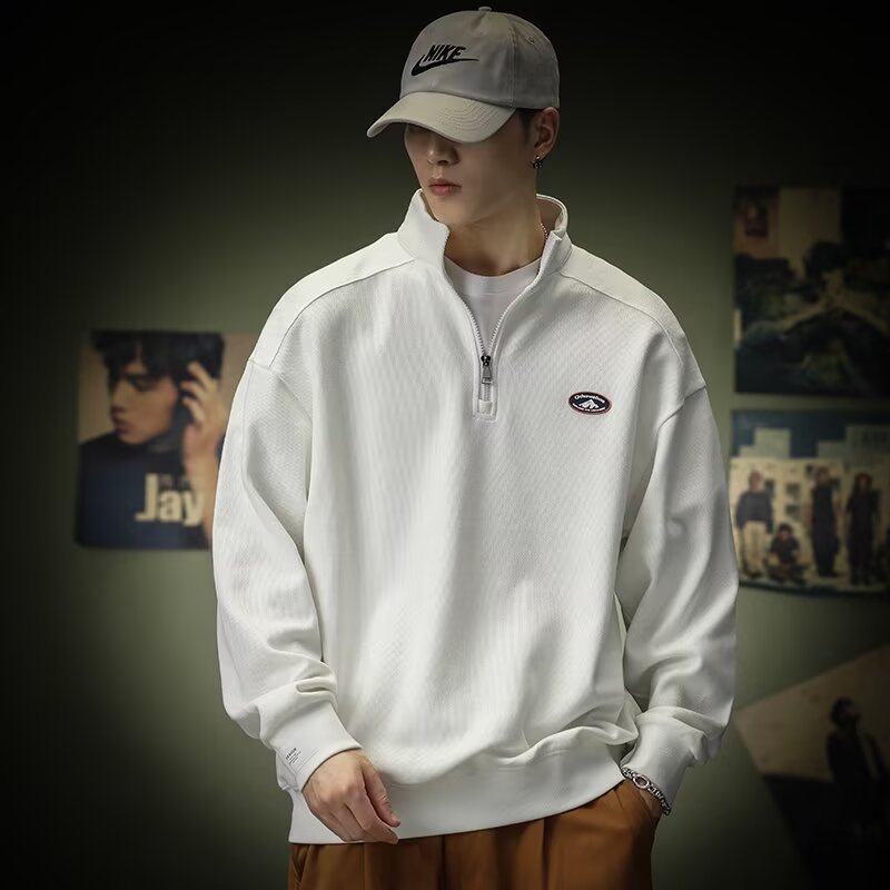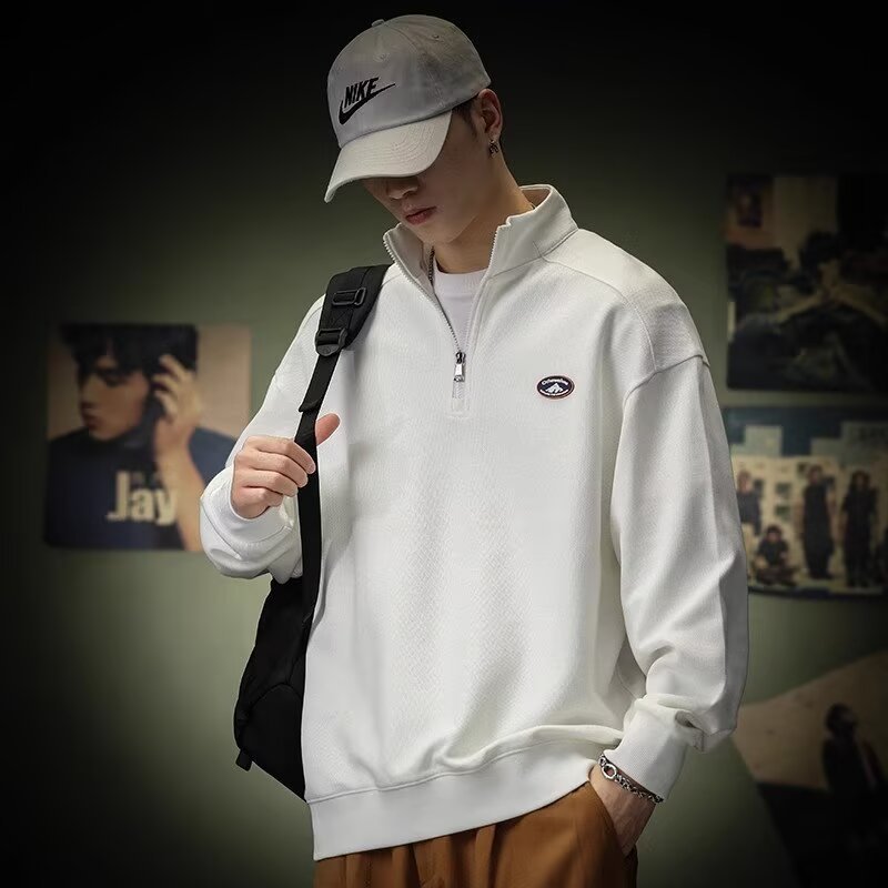 스탠드 칼라 풀오버 청소년 데일리 스웨트 셔츠 트렌디 아메리칸 스포츠 스웨트 셔츠 남성 가을 헤비 트렌드 가을 겨울 폴로 셔츠스토어 가기