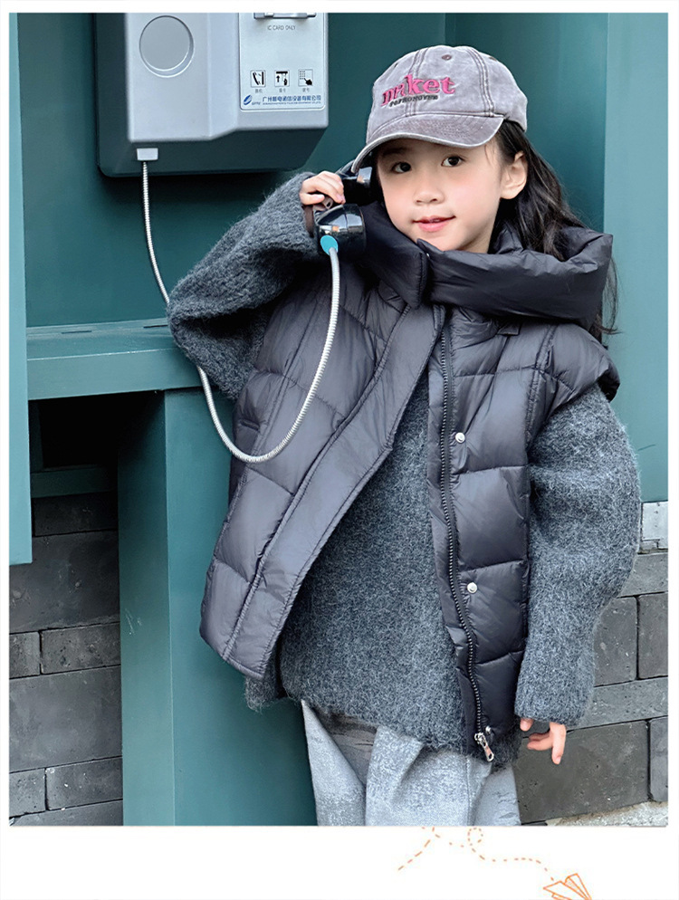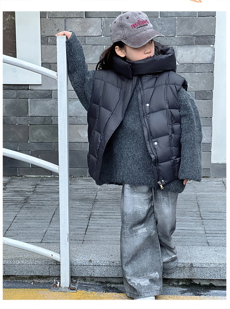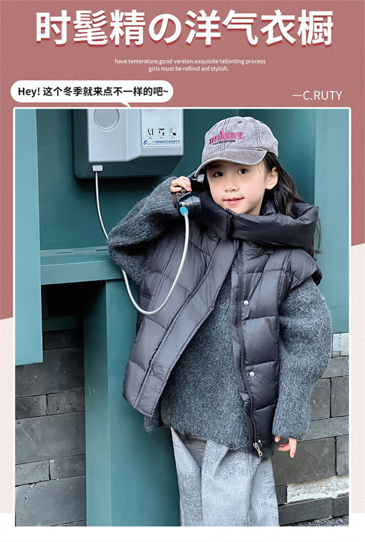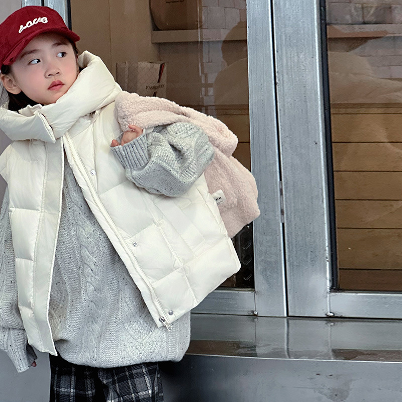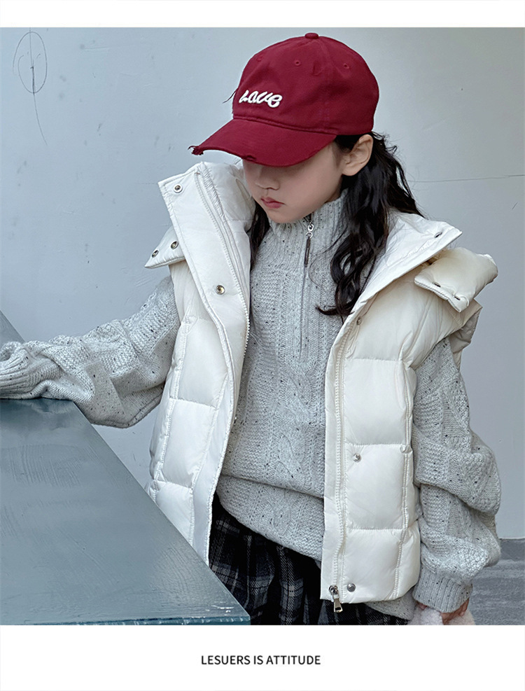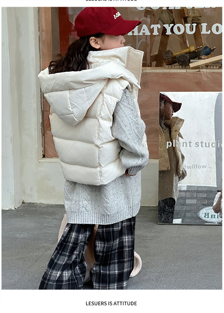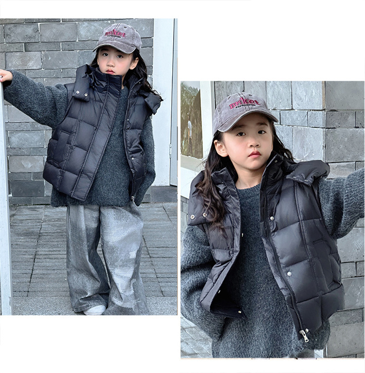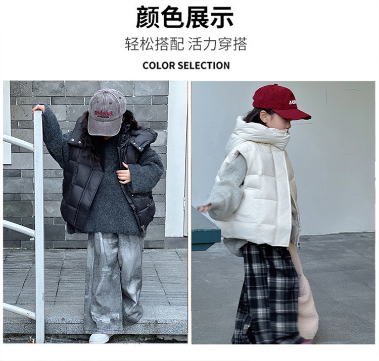 소녀 겨울 조끼 2024 새로운 스타일 어린이 다운 재킷 조끼 가을과 겨울 큰 어린이 waistcoat