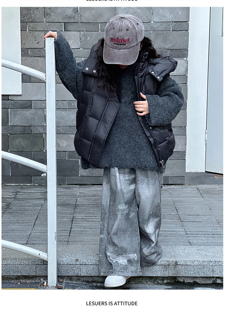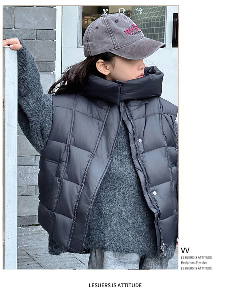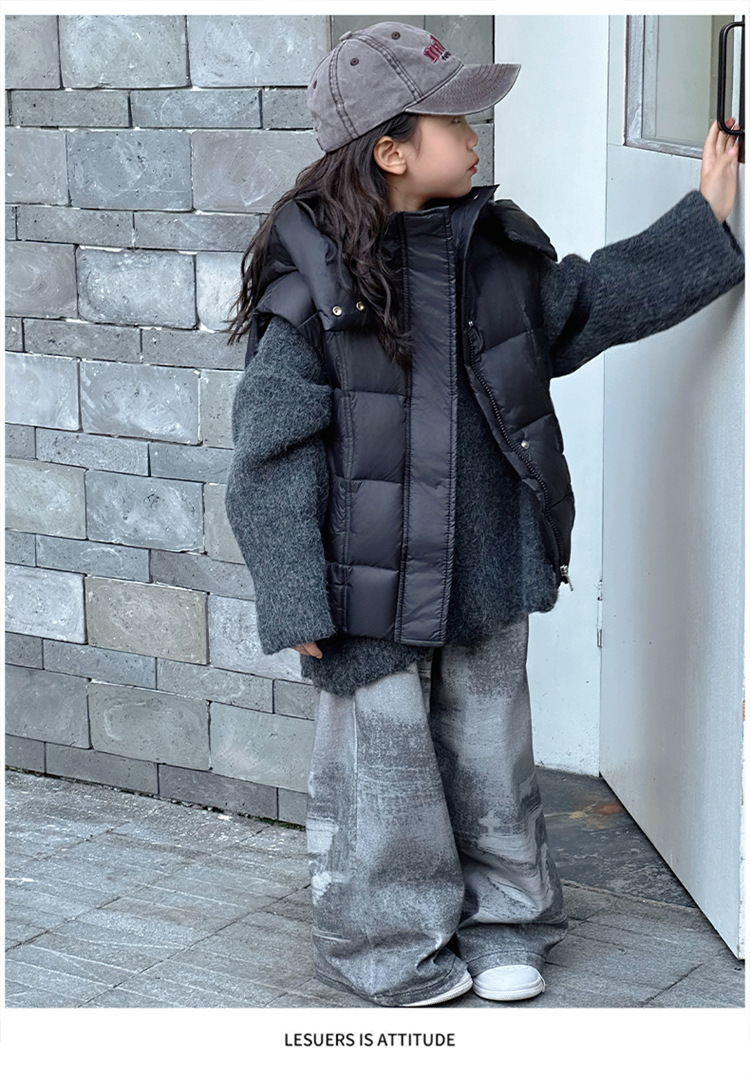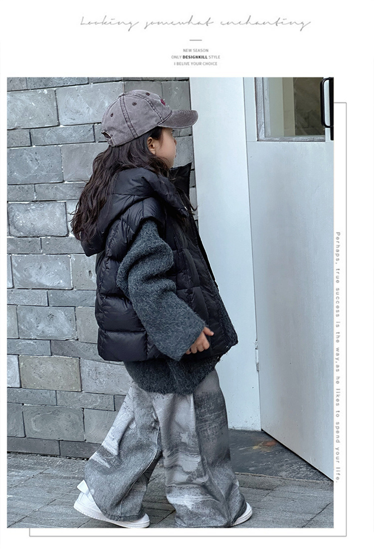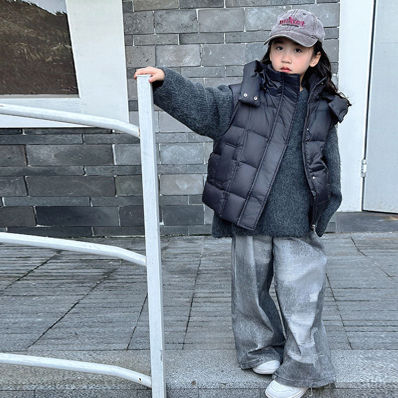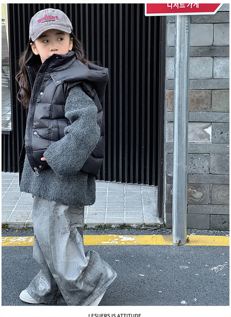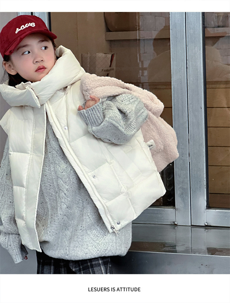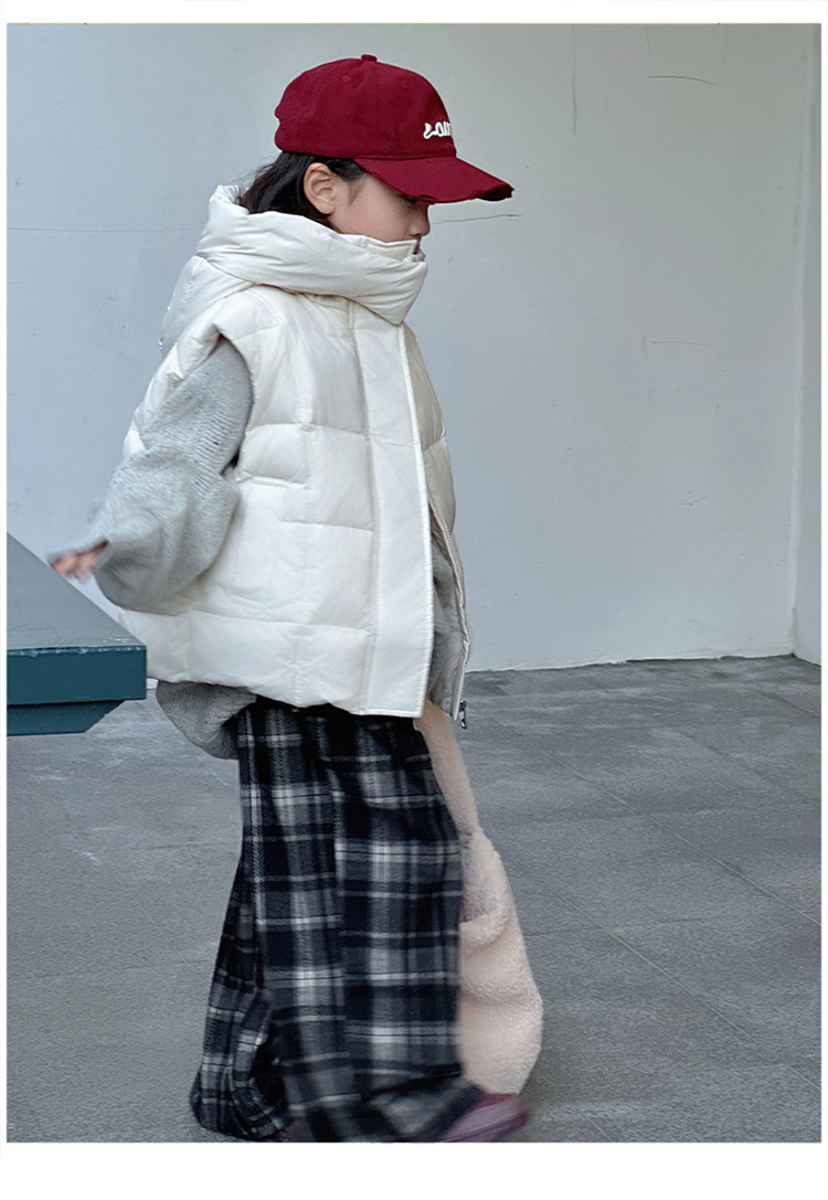 소녀 겨울 조끼 2024 새로운 스타일 어린이 다운 재킷 조끼 가을과 겨울 큰 어린이 waistcoat