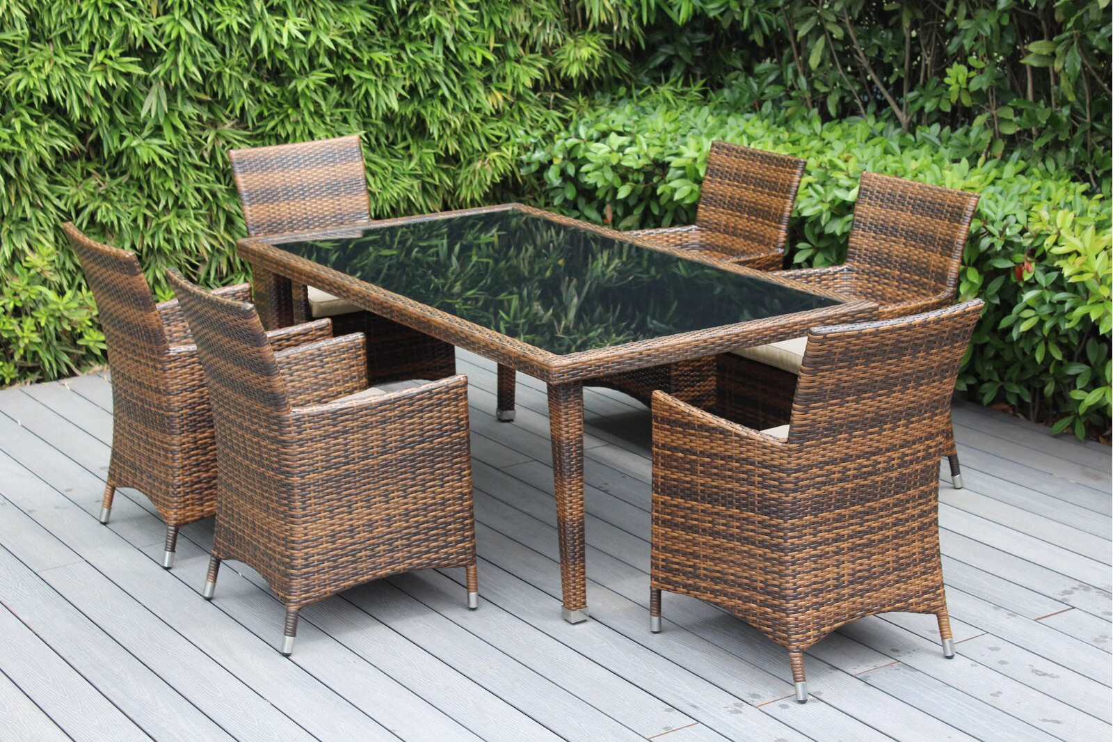 • 카키색 플라스틱 목재 표면, 테이블 1개, 의자 6개