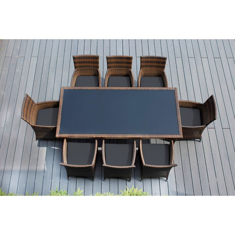 • 검은색 플라스틱 목재 표면, 테이블 1개, 의자 8개