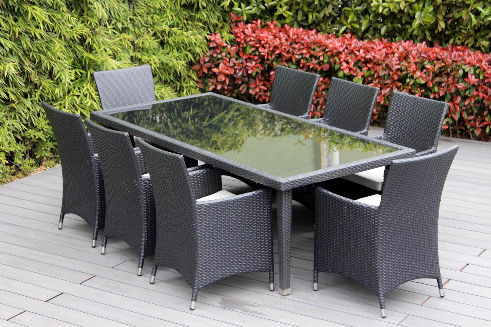 • 검은색 유리 표면, 테이블 1개, 의자 8개