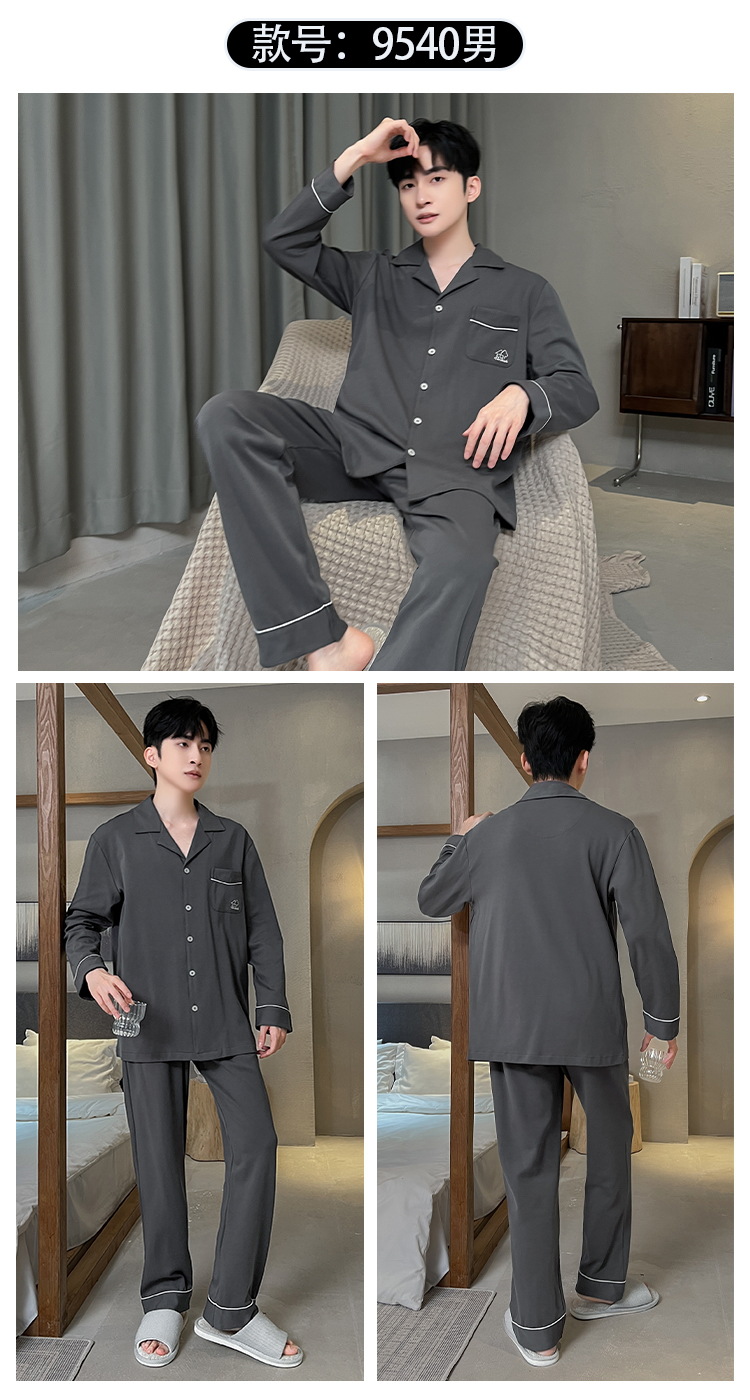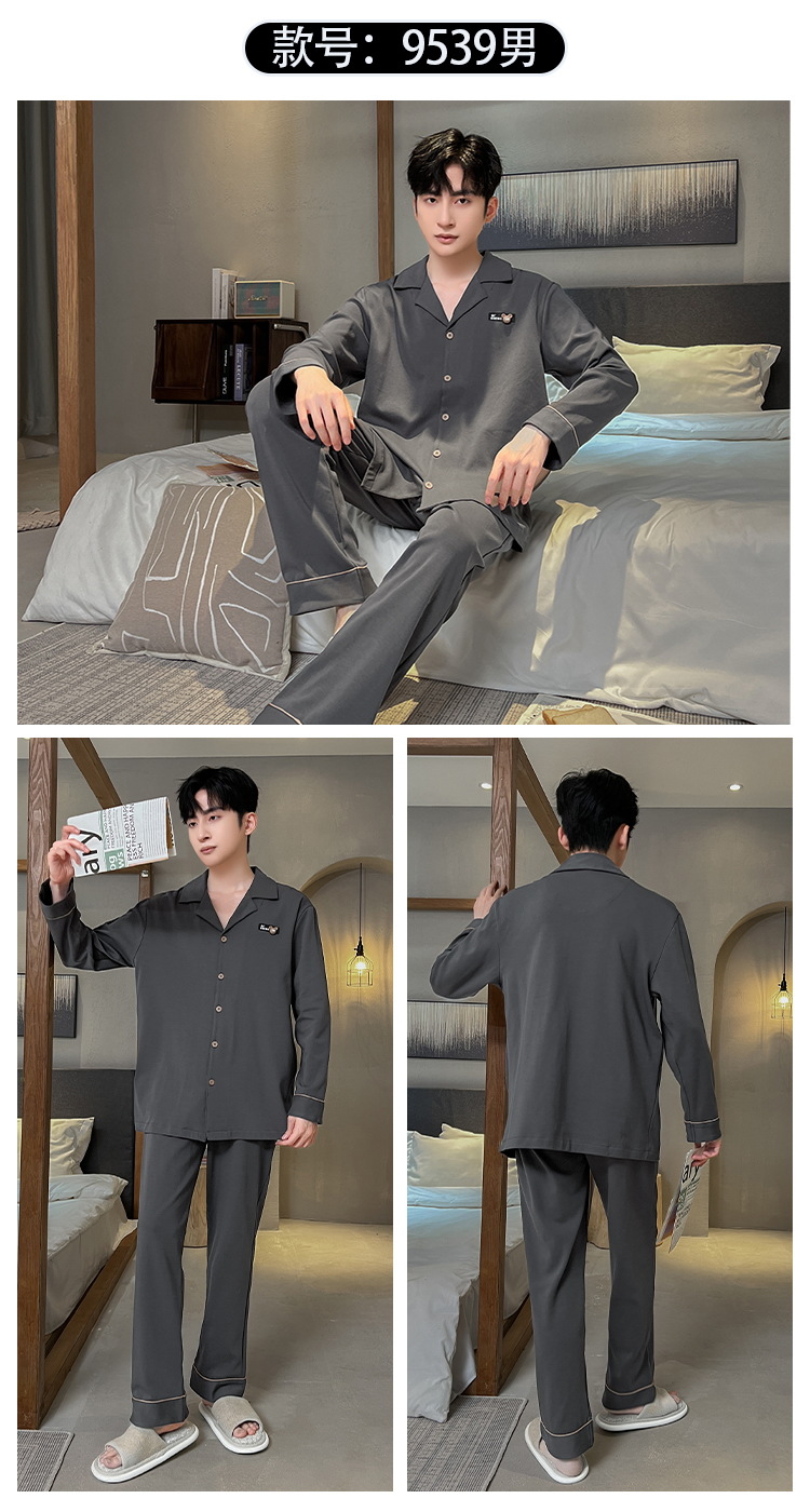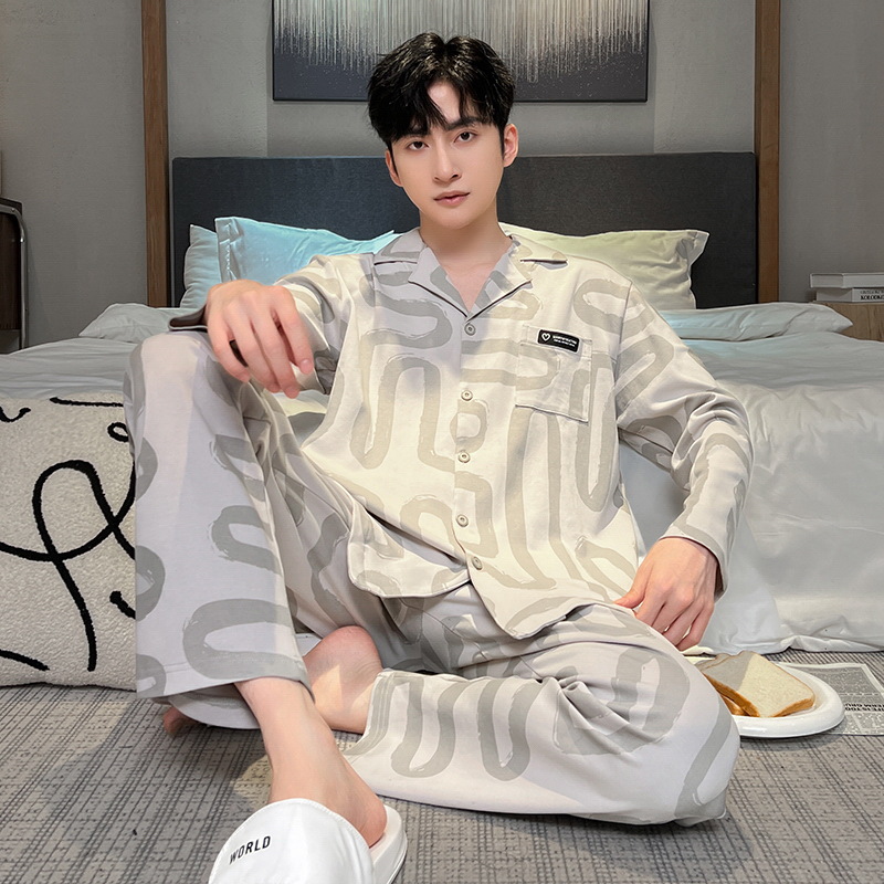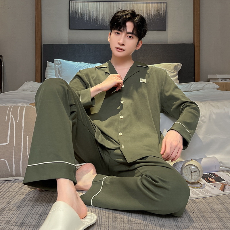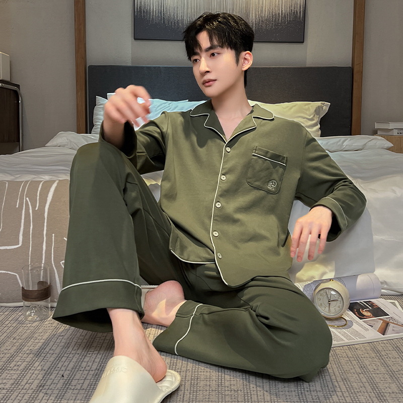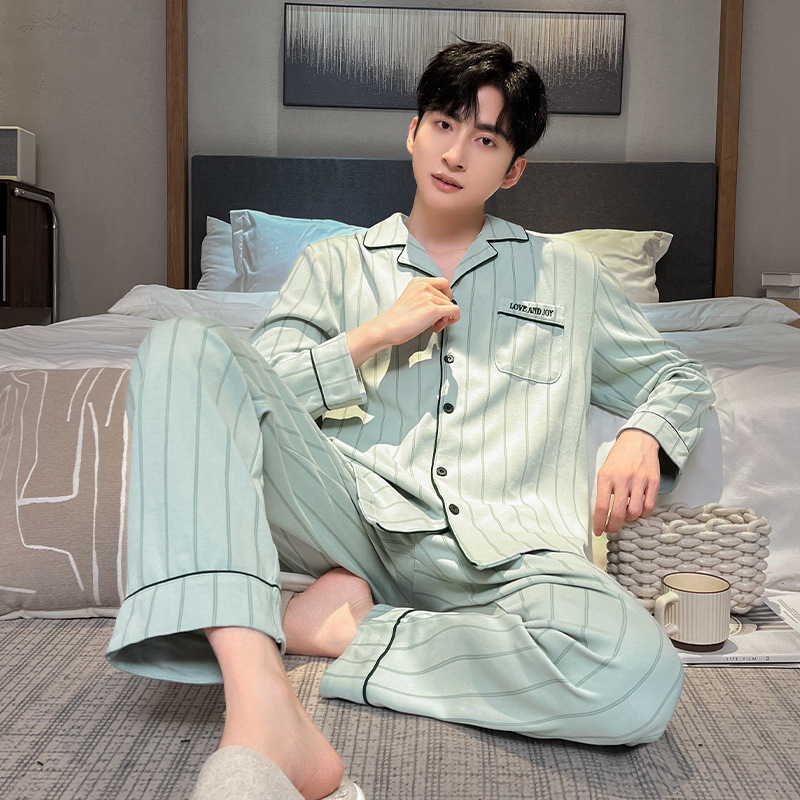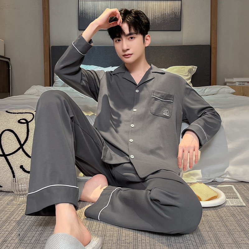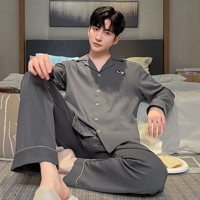 긴 소매 클래스 A 남자의 순면 카디건 옷깃 가을과 겨울 잠옷 캐주얼 느슨한 젊은 남자 바지 홈스토어 가기