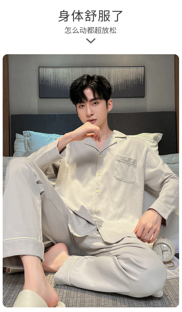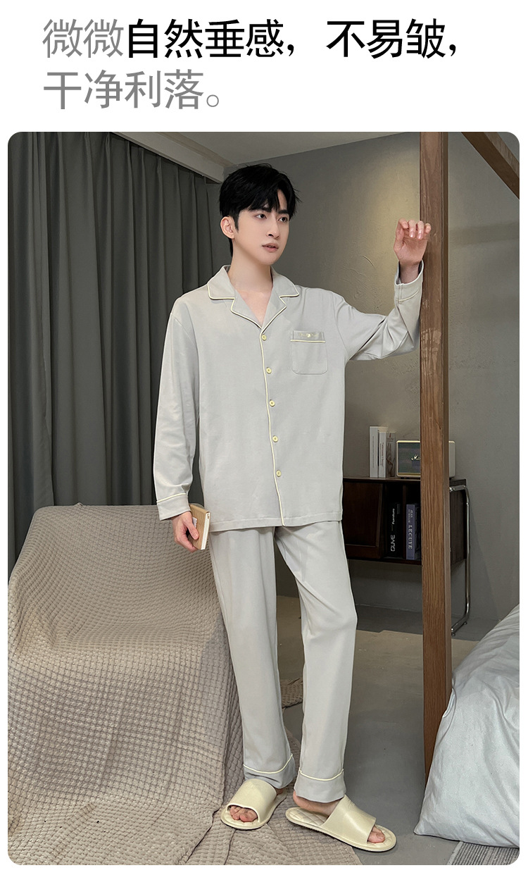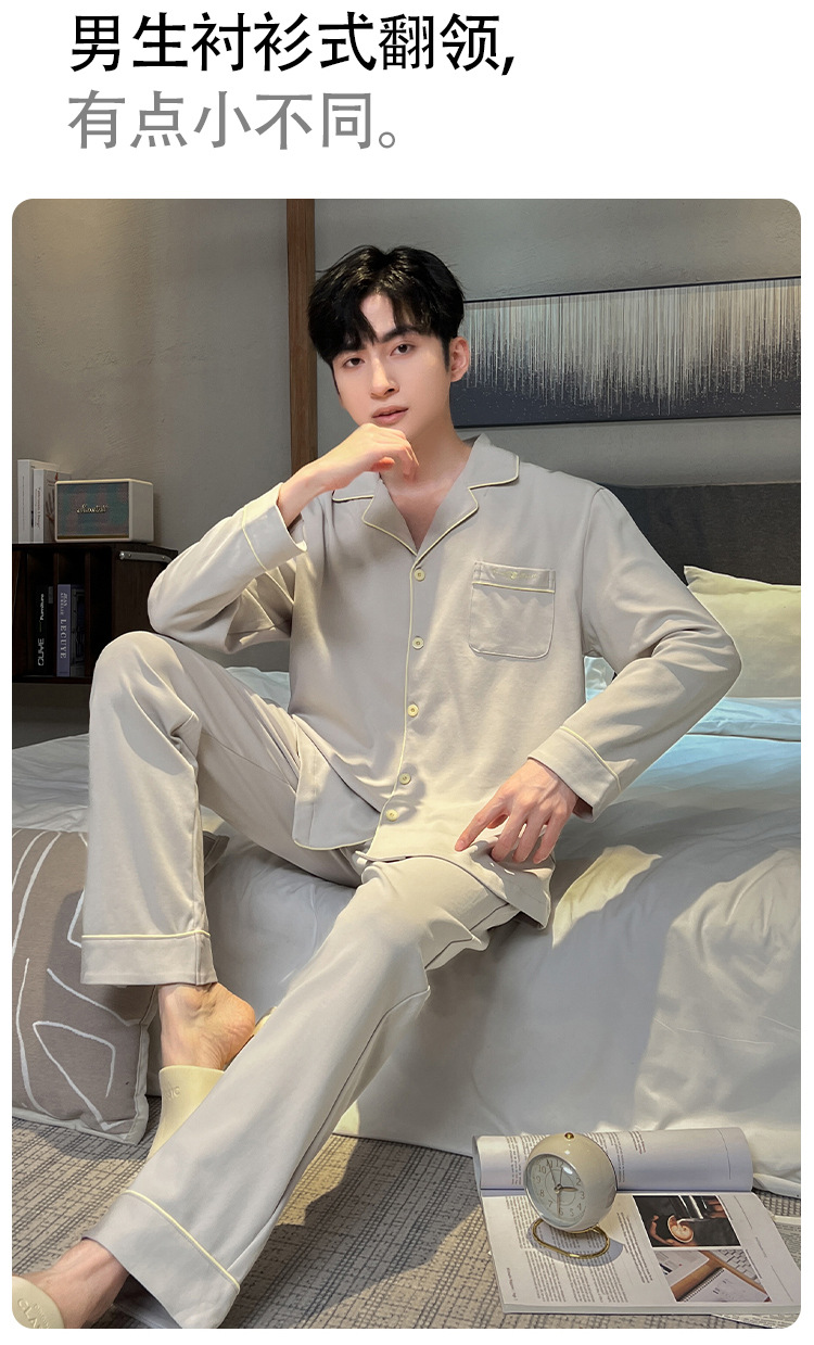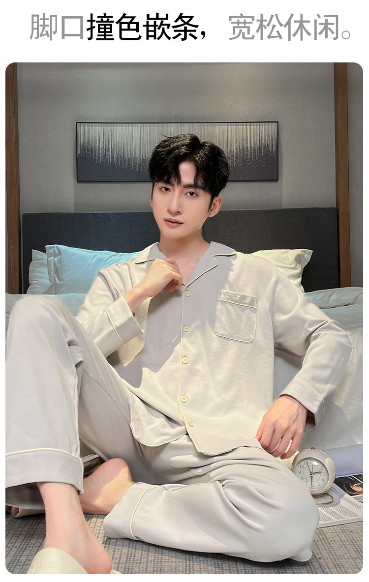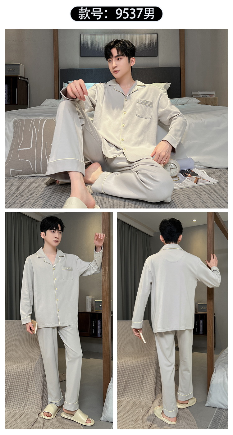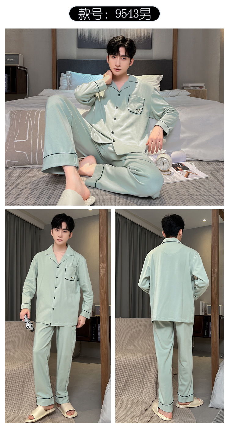 긴 소매 클래스 A 남자의 순면 카디건 옷깃 가을과 겨울 잠옷 캐주얼 느슨한 젊은 남자 바지 홈스토어 가기