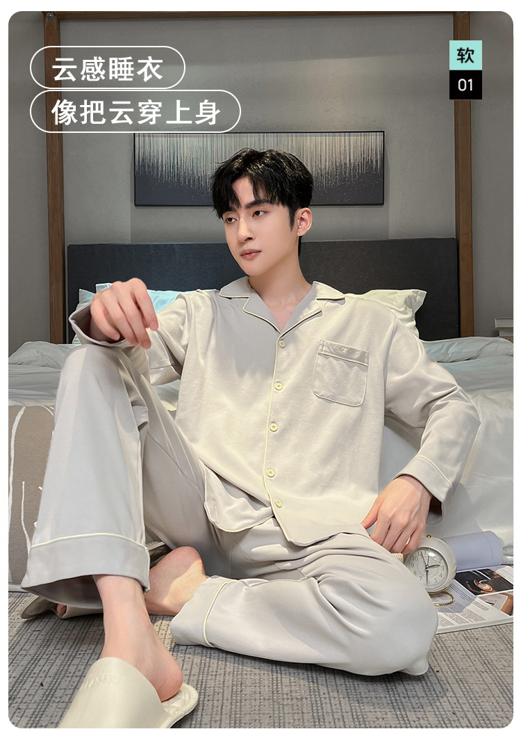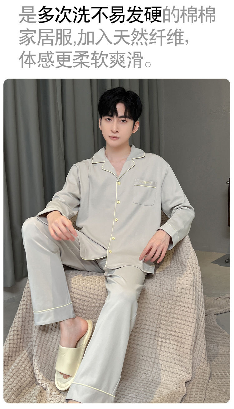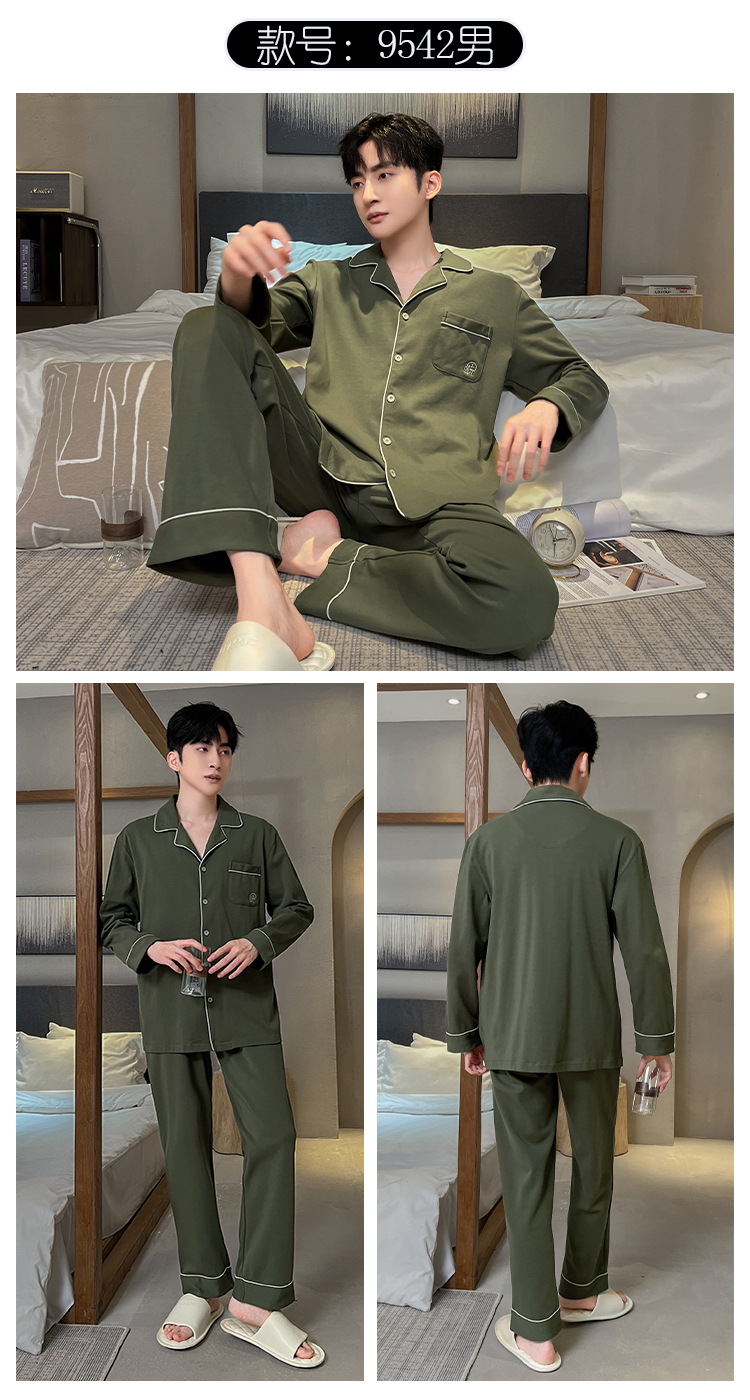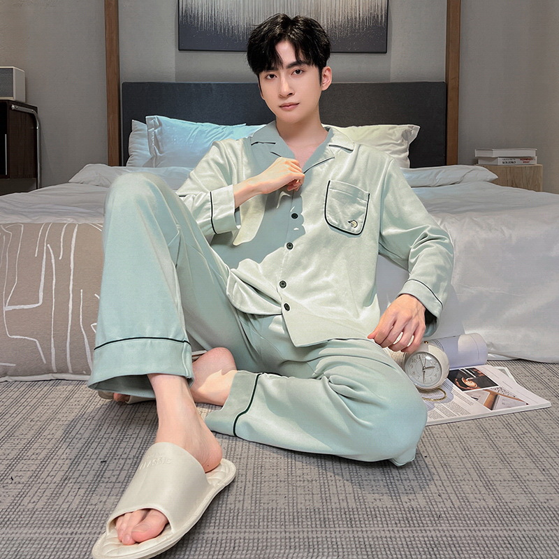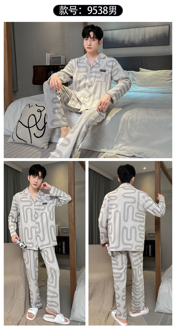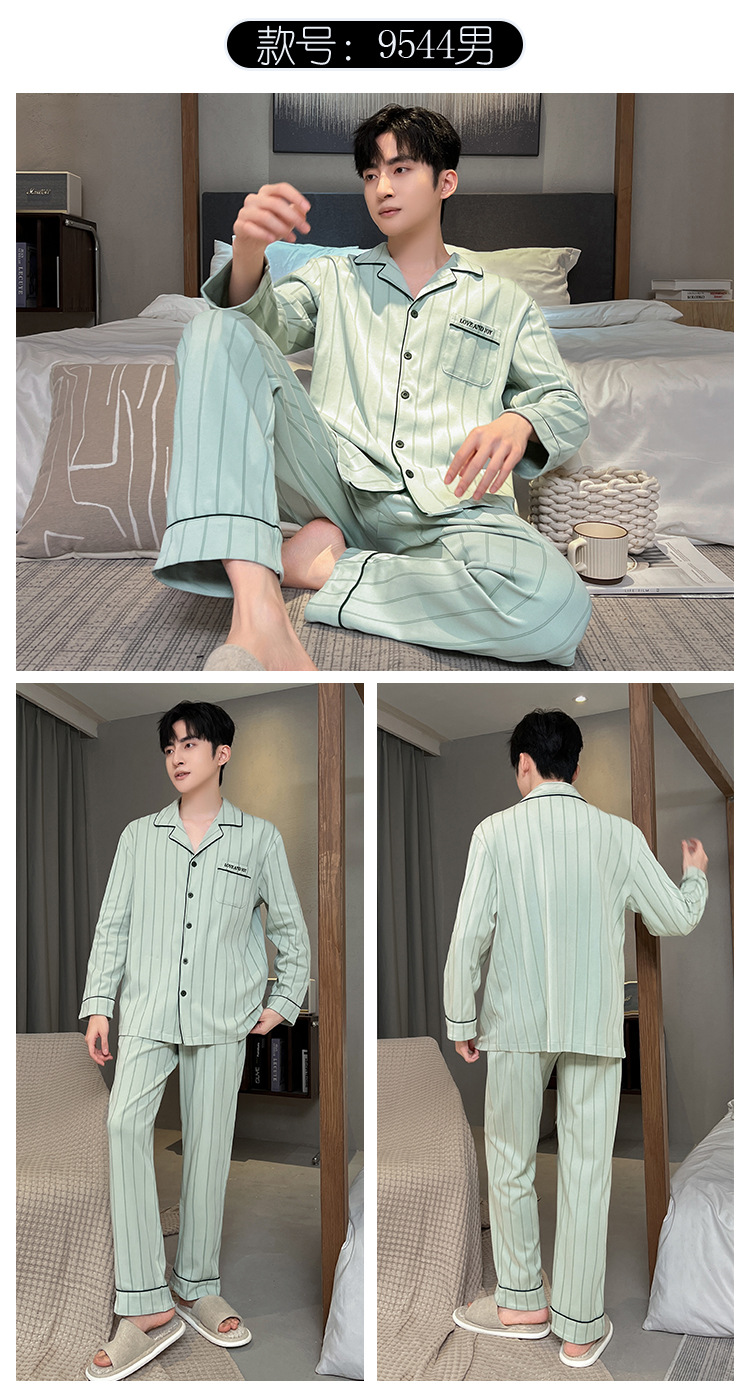 긴 소매 클래스 A 남자의 순면 카디건 옷깃 가을과 겨울 잠옷 캐주얼 느슨한 젊은 남자 바지 홈스토어 가기