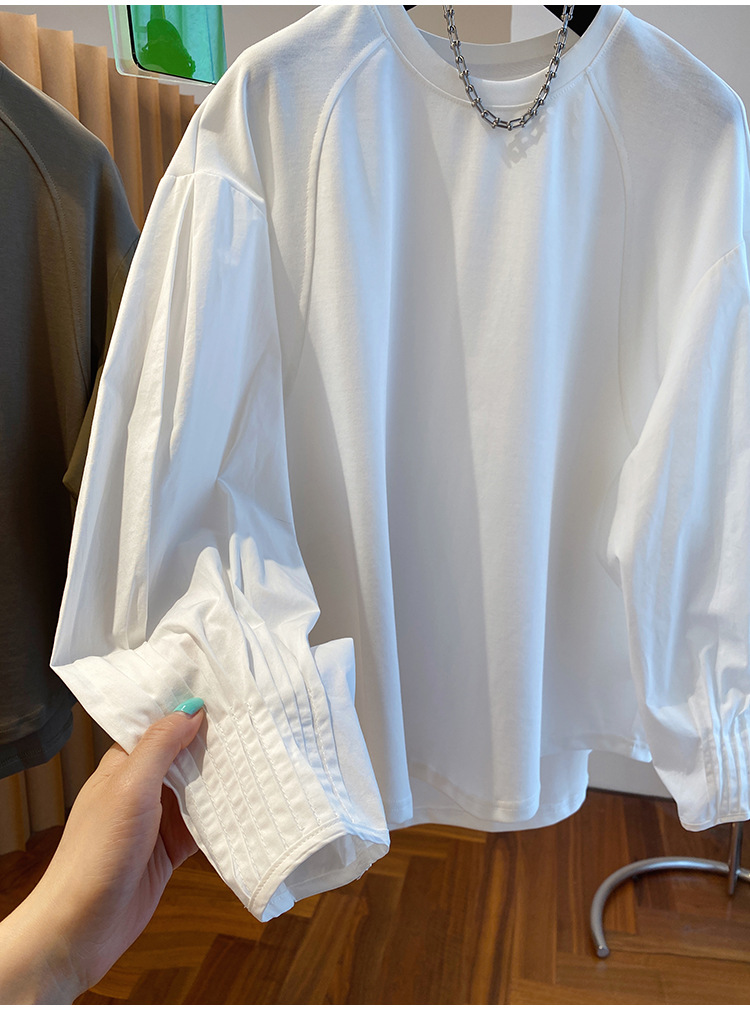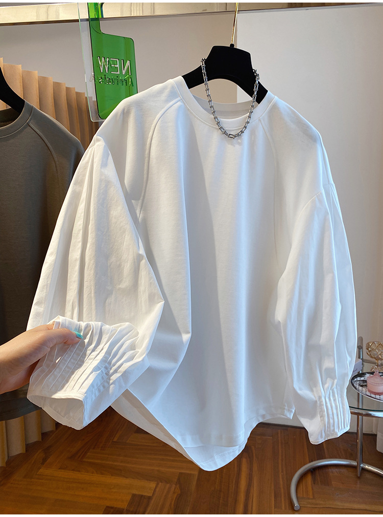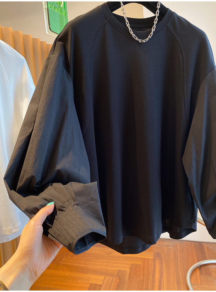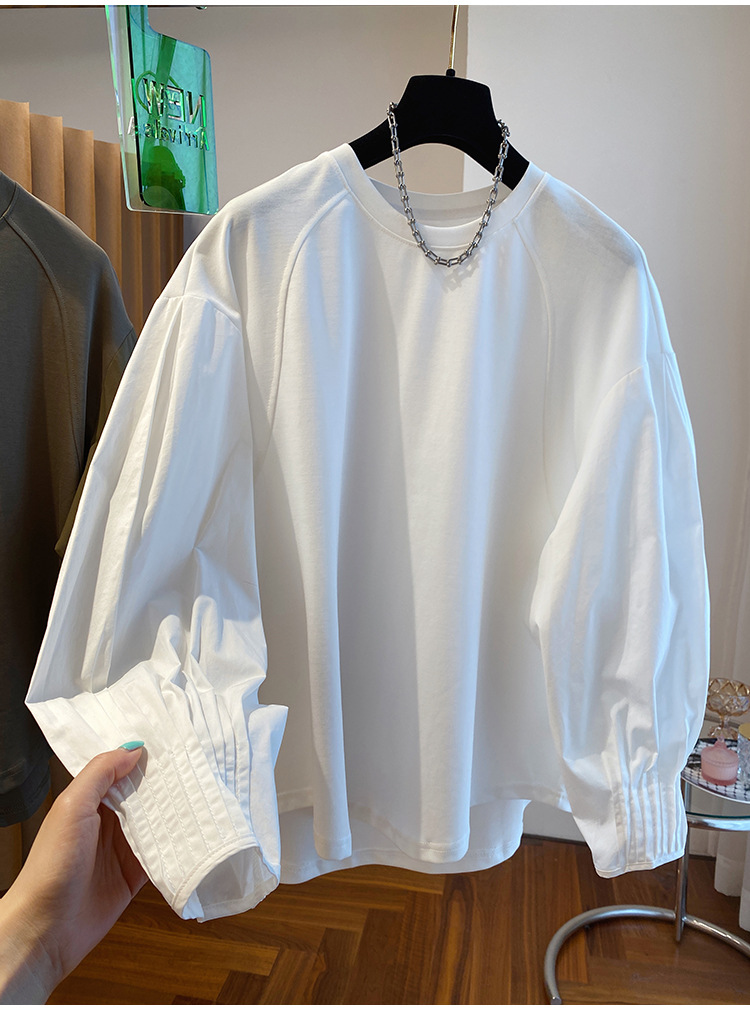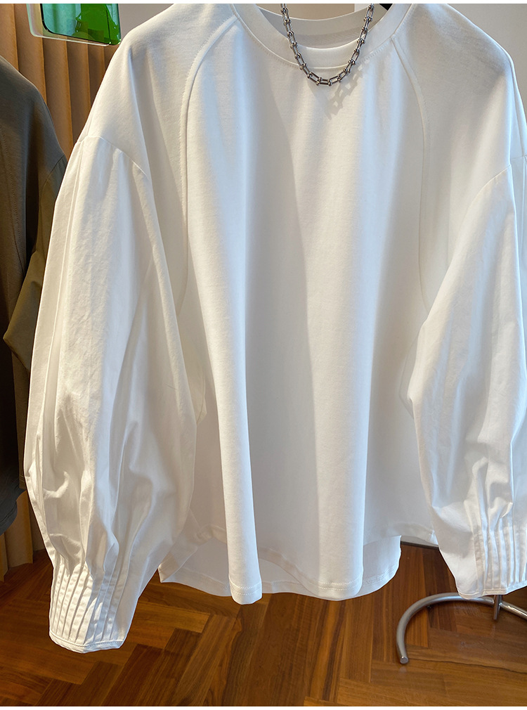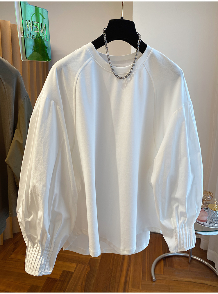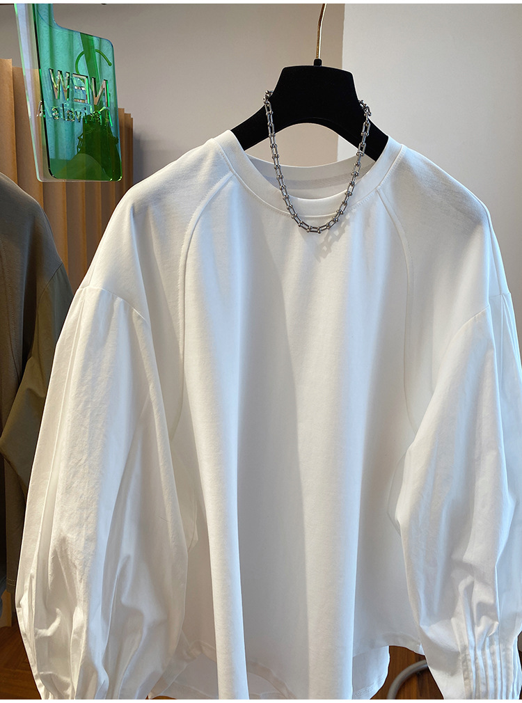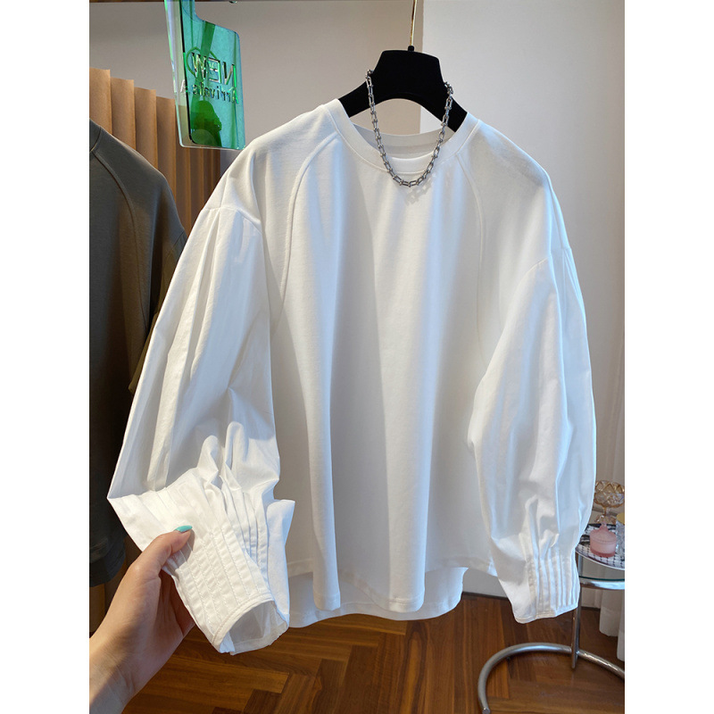 랜턴 슬리브 스티치 셔츠 스웨터 여성 디자인 센스 봄 새로운 티셔츠 베이스 셔츠 얇은 탑 Ins 트렌디스토어 가기