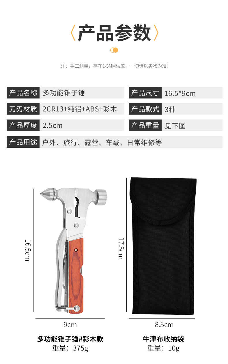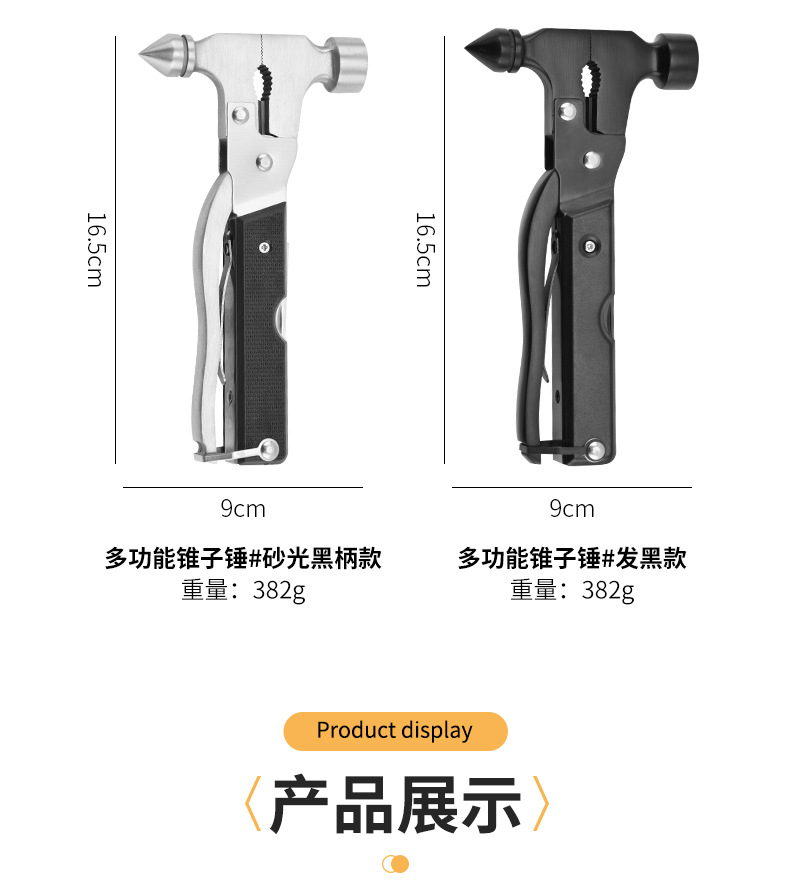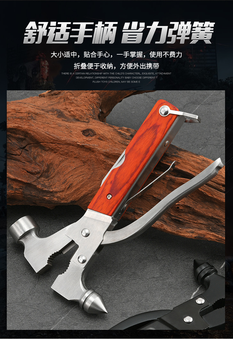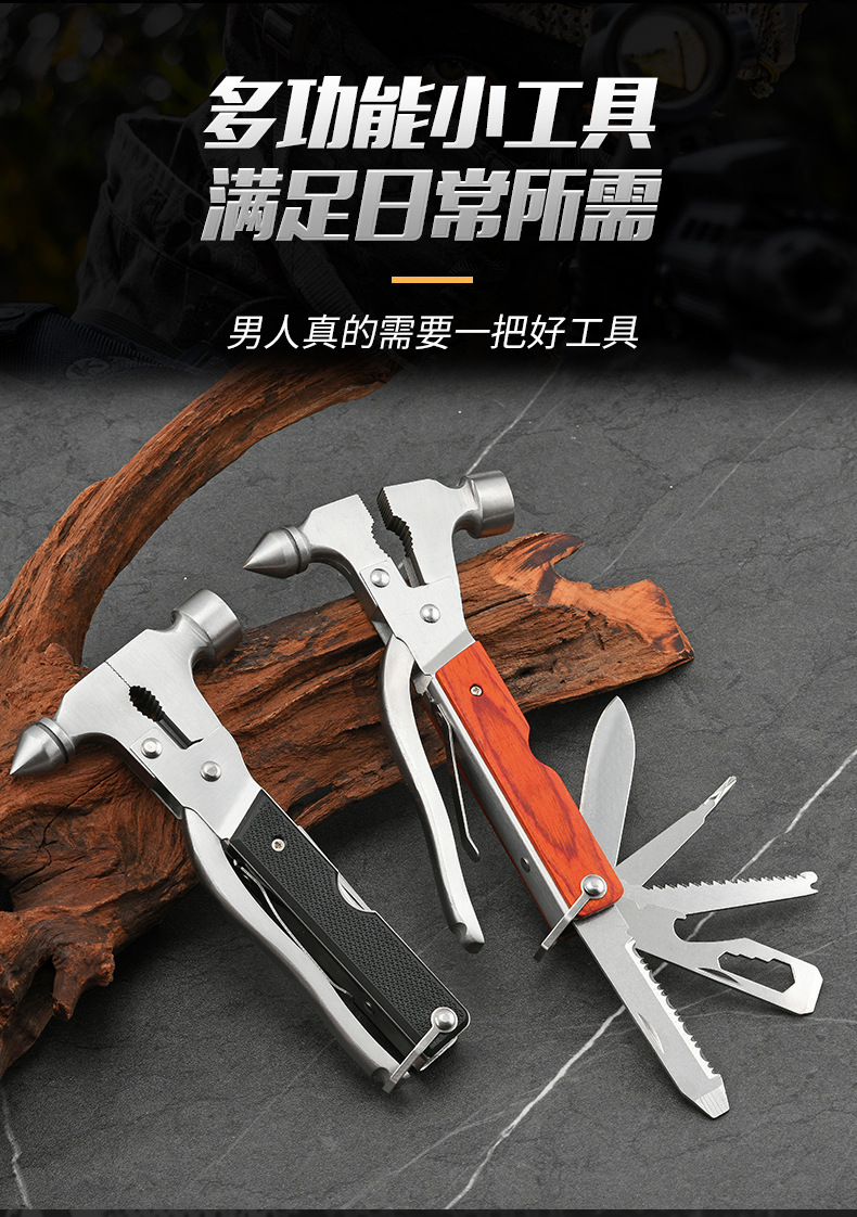 공장 직접 공급 스테인레스 스틸 다기능 구명 해머 자동차 유리 창 차단기 캠핑 야외 조합 도구 펜치 해머