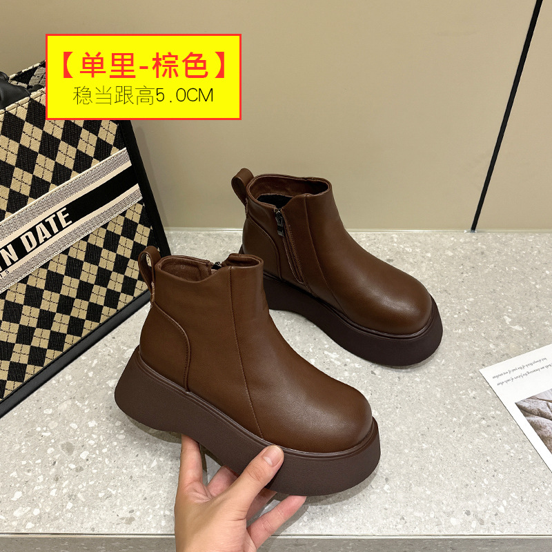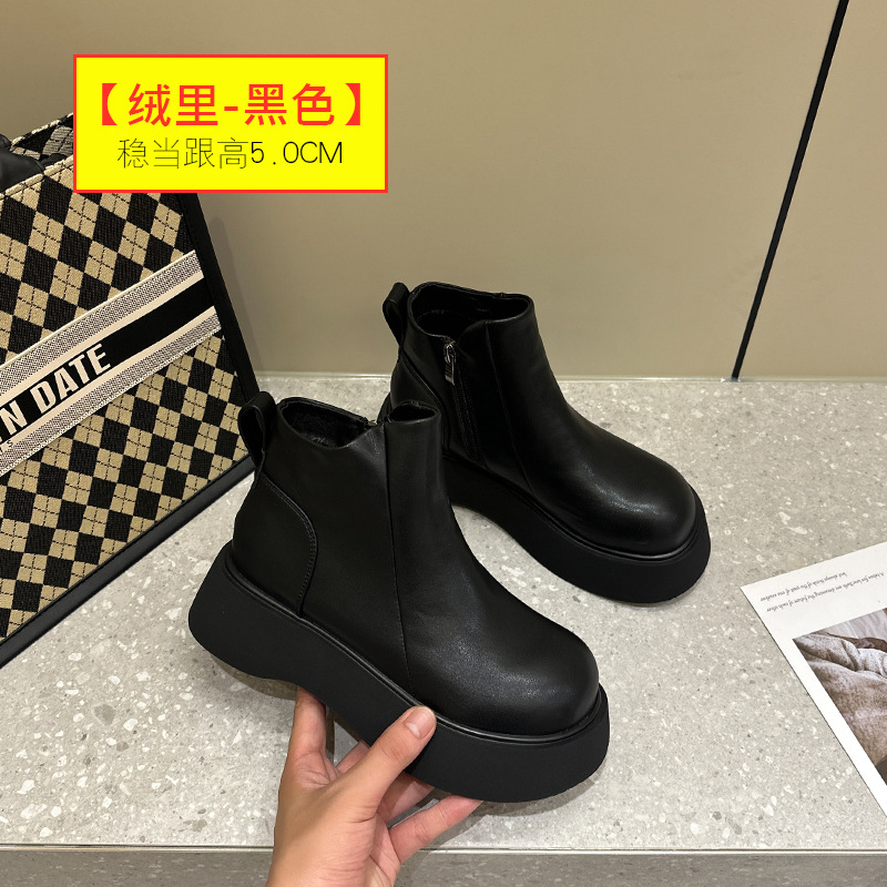 2025년 신상 마틴 부츠 여성용 영국 스타일 두꺼운 밑창 숏부츠 작은 키용 레트로 다용도 봄 가을 단화 겨울용 플리스 안감스토어 가기