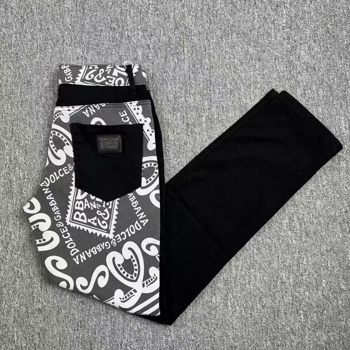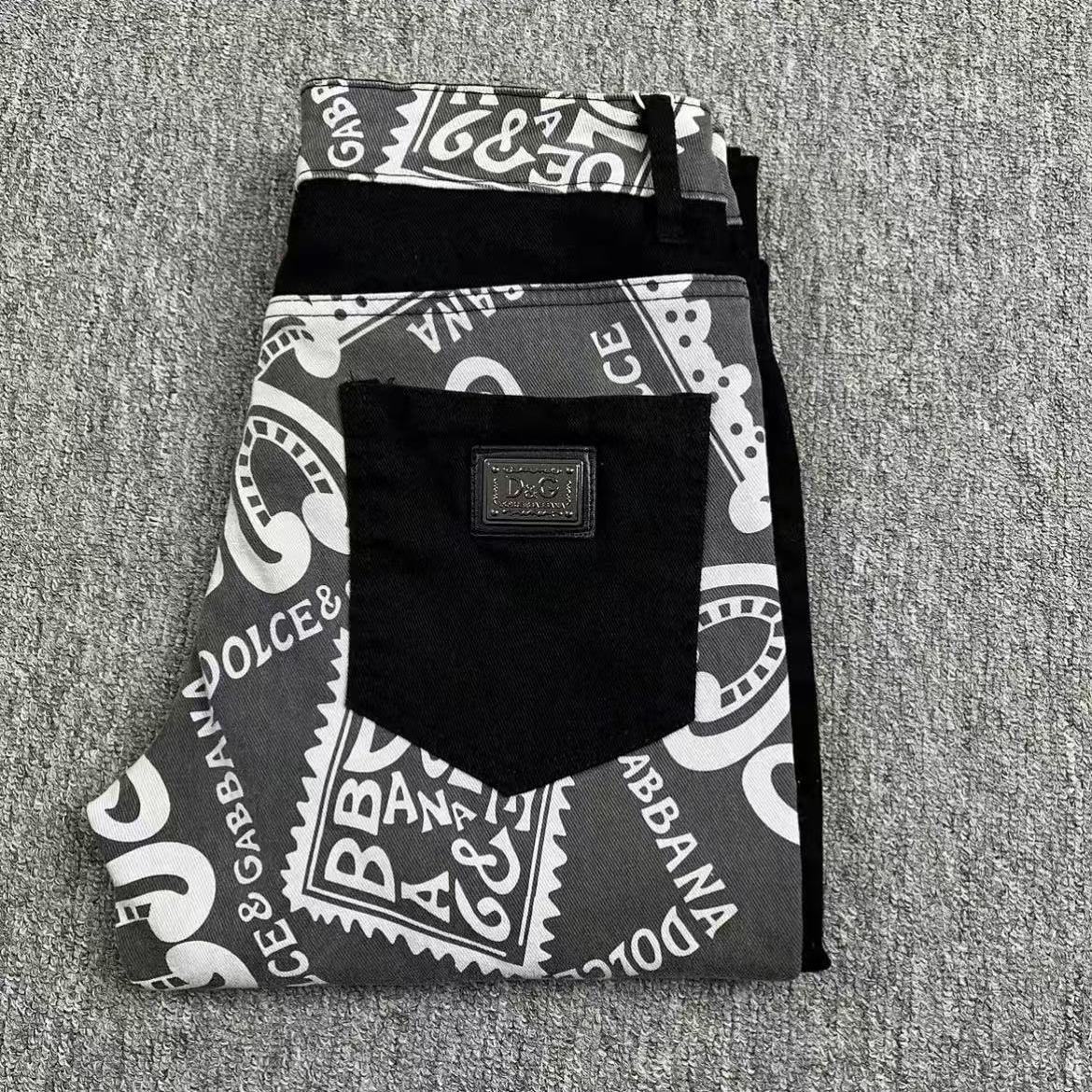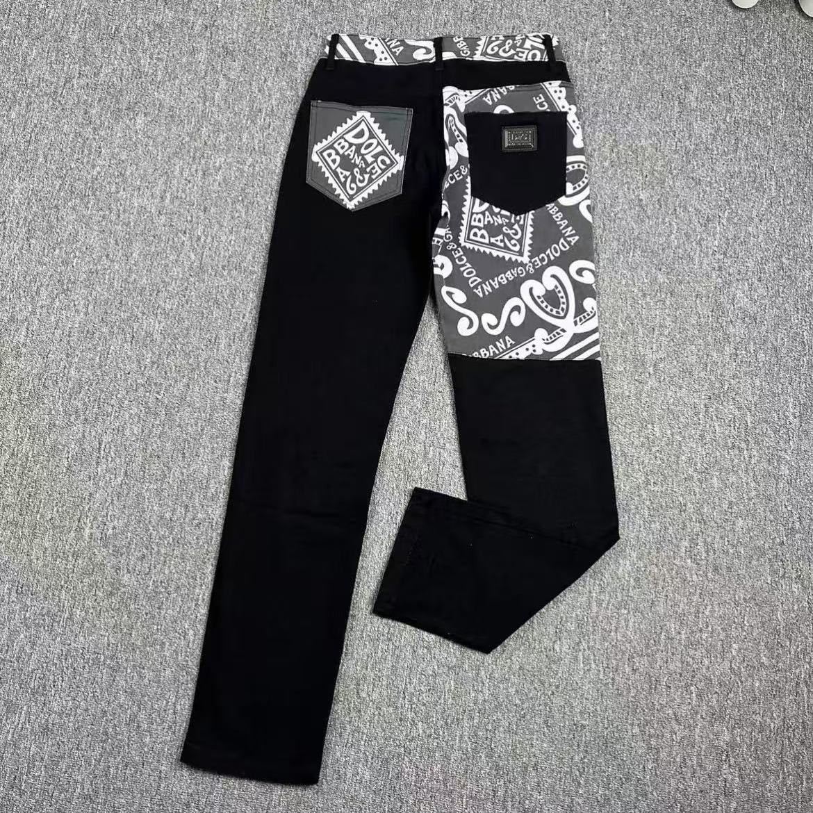 DG Dujia 24ss 가을/겨울 새로운 남성 슬림 핏 청바지 스키니 프린트 바지 똑바로 바느질 잘 생긴 유행 남성스토어 가기
