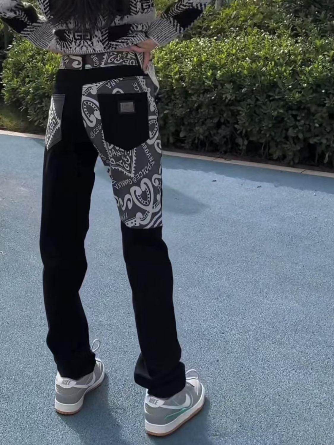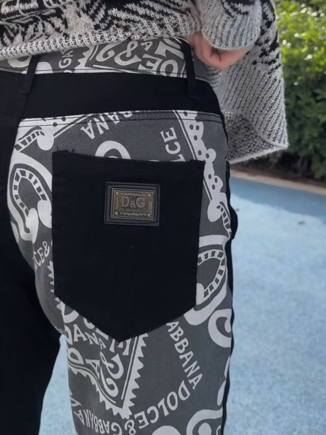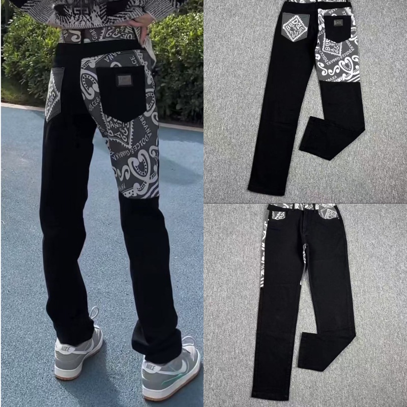 DG Dujia 24ss 가을/겨울 새로운 남성 슬림 핏 청바지 스키니 프린트 바지 똑바로 바느질 잘 생긴 유행 남성스토어 가기