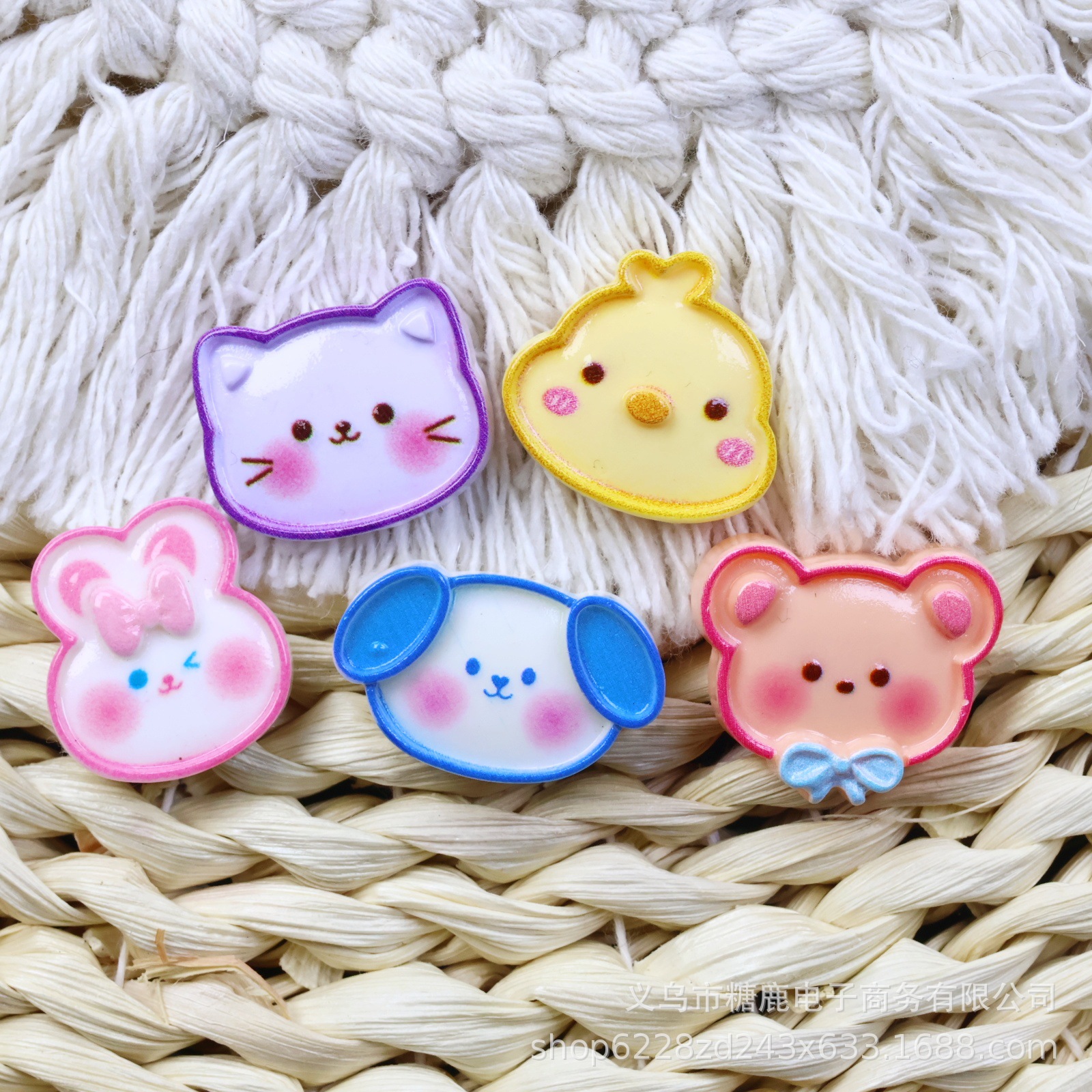 만화 귀여운 밝은 라인 동물 머리 수지 액세서리 diy 크림 젤 헤어 클립 소재 구멍 신발 도매스토어 가기