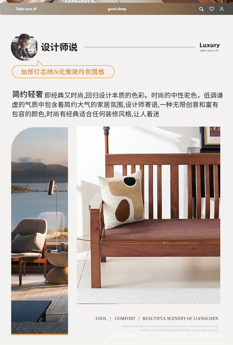 코듀로이 사계절용 원목 레드우드 소파 쿠션 미끄럼 방지 및 오염 방지 사무실 소파 시트 쿠션 창가 쿠션 제조업체스토어 가기