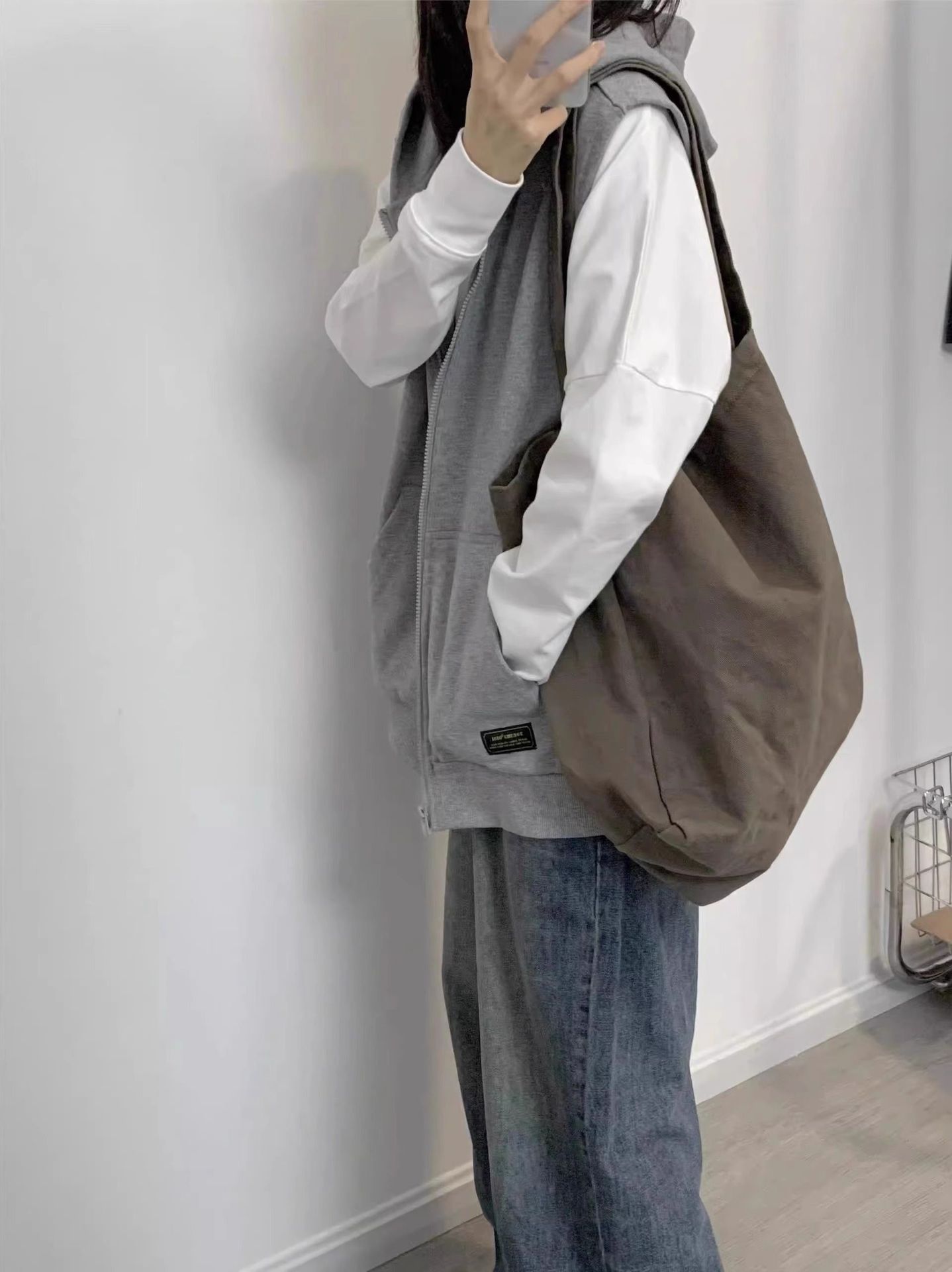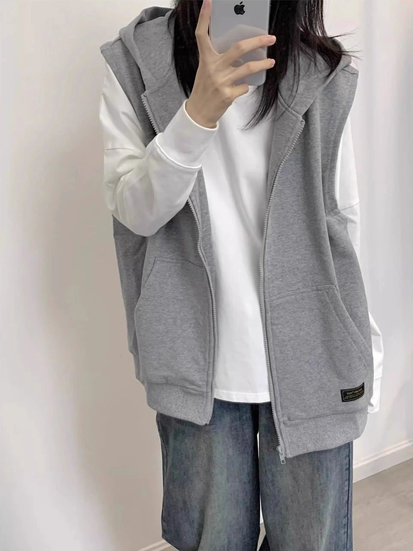 후드 스웨터 조끼 여자 솔리드 컬러 일본 스택 재킷 조끼 일본 루즈 여성 올 매치 탑 가을 아우터웨어