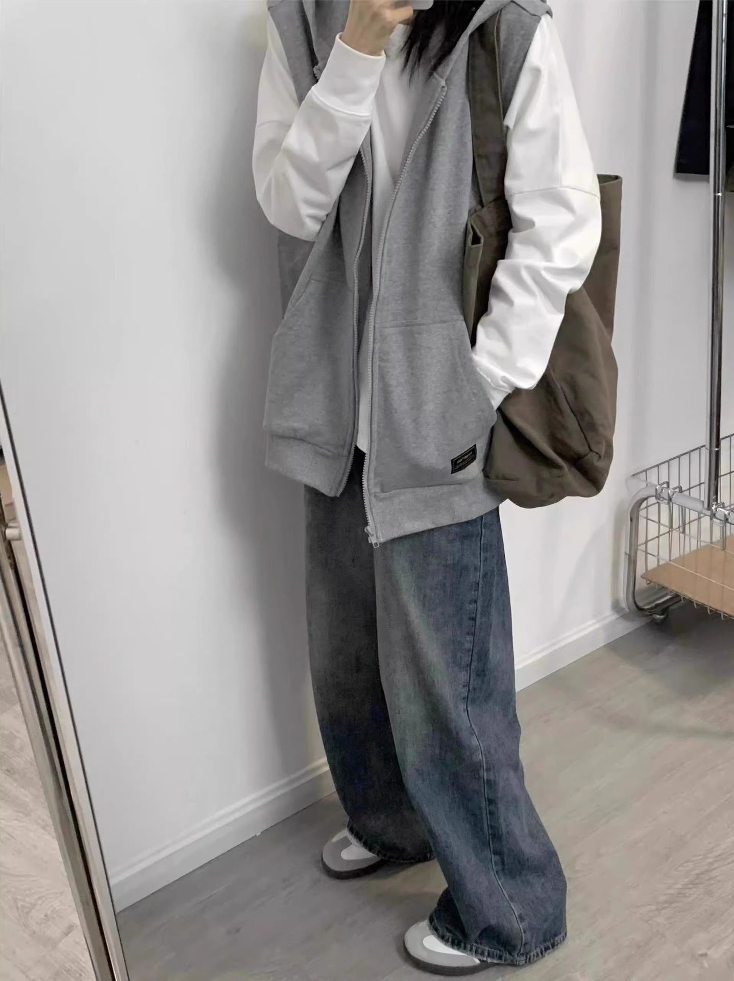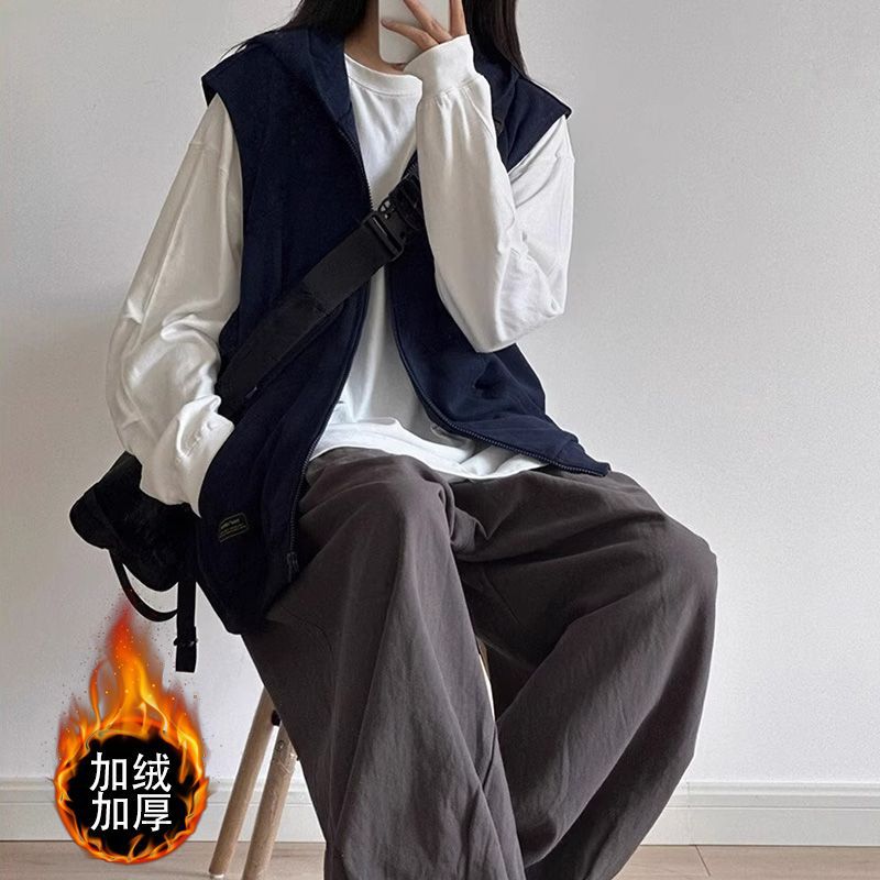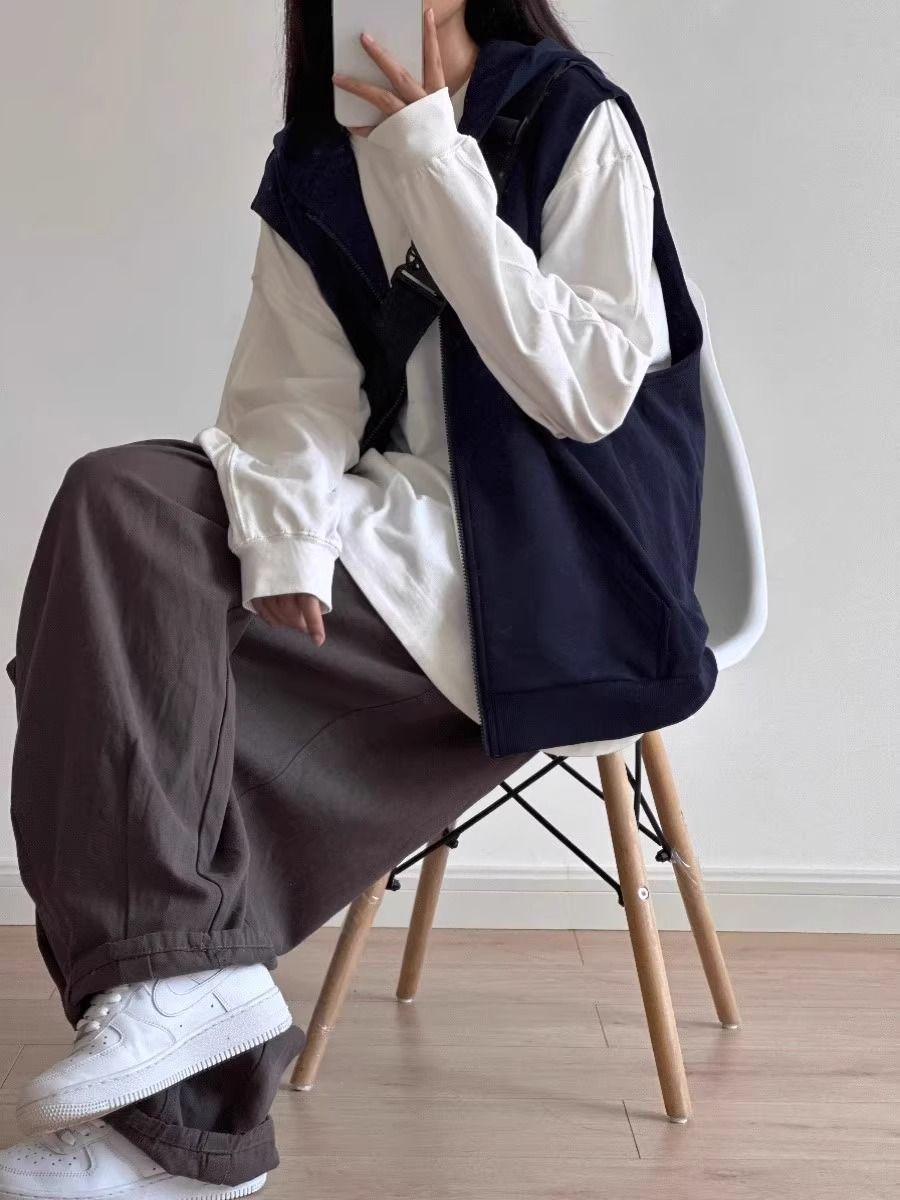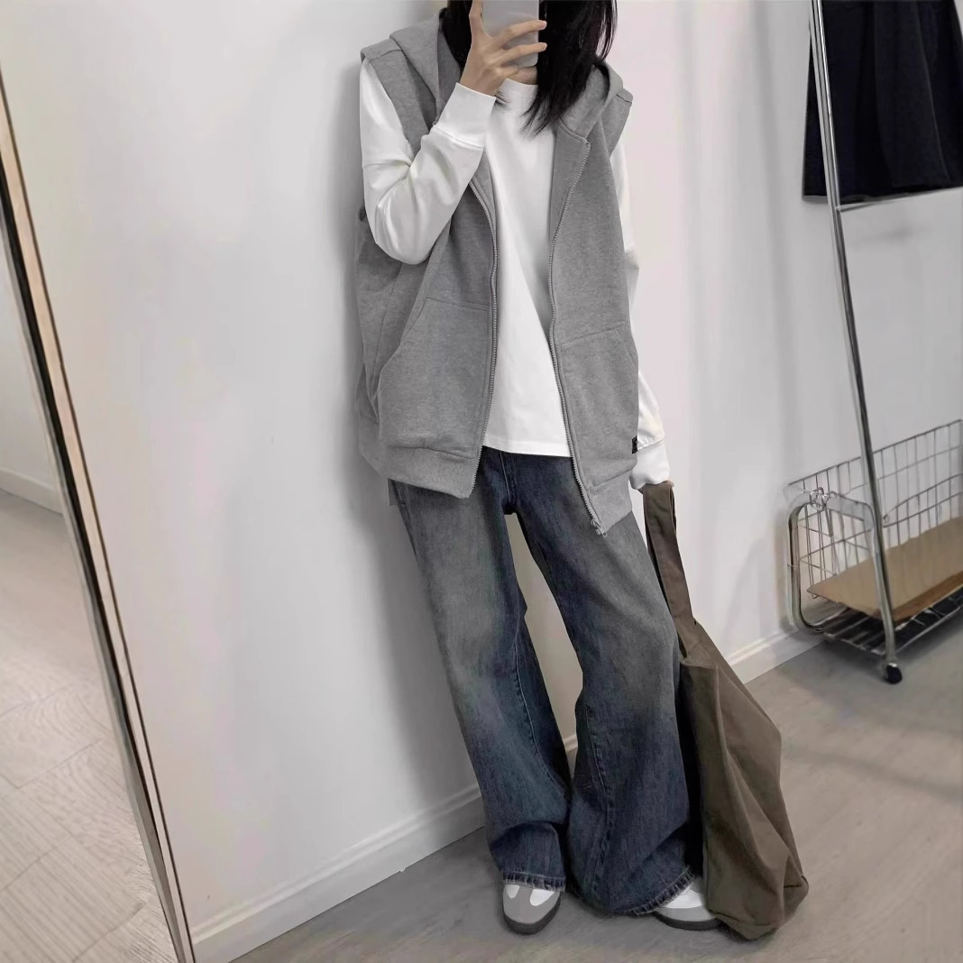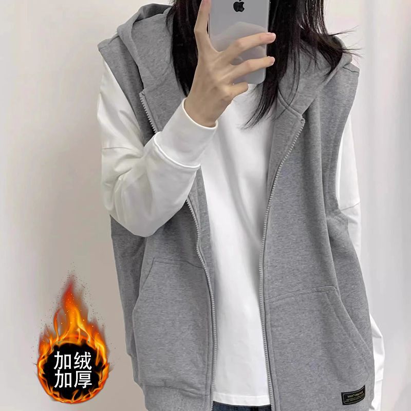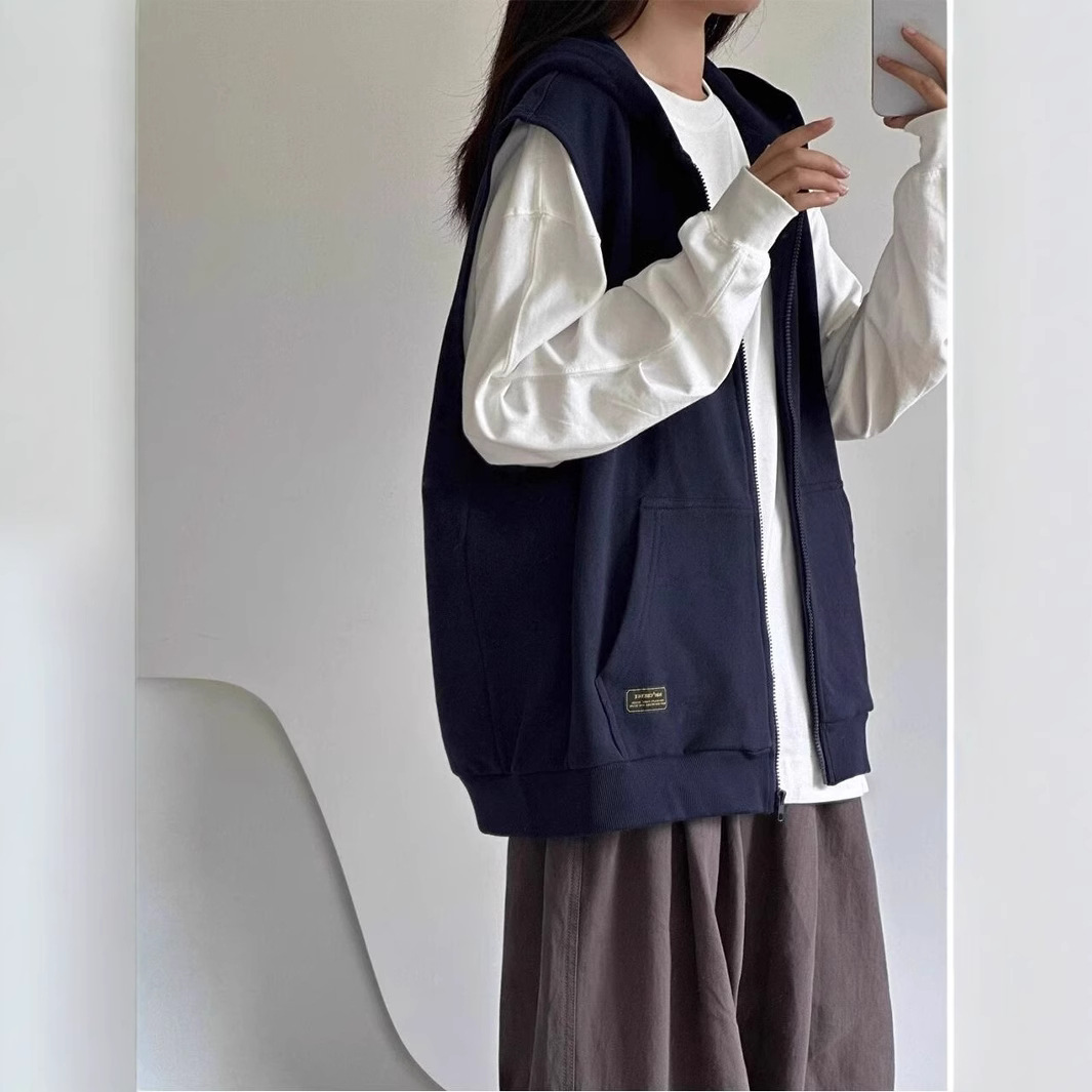 후드 스웨터 조끼 여자 솔리드 컬러 일본 스택 재킷 조끼 일본 루즈 여성 올 매치 탑 가을 아우터웨어스토어 가기